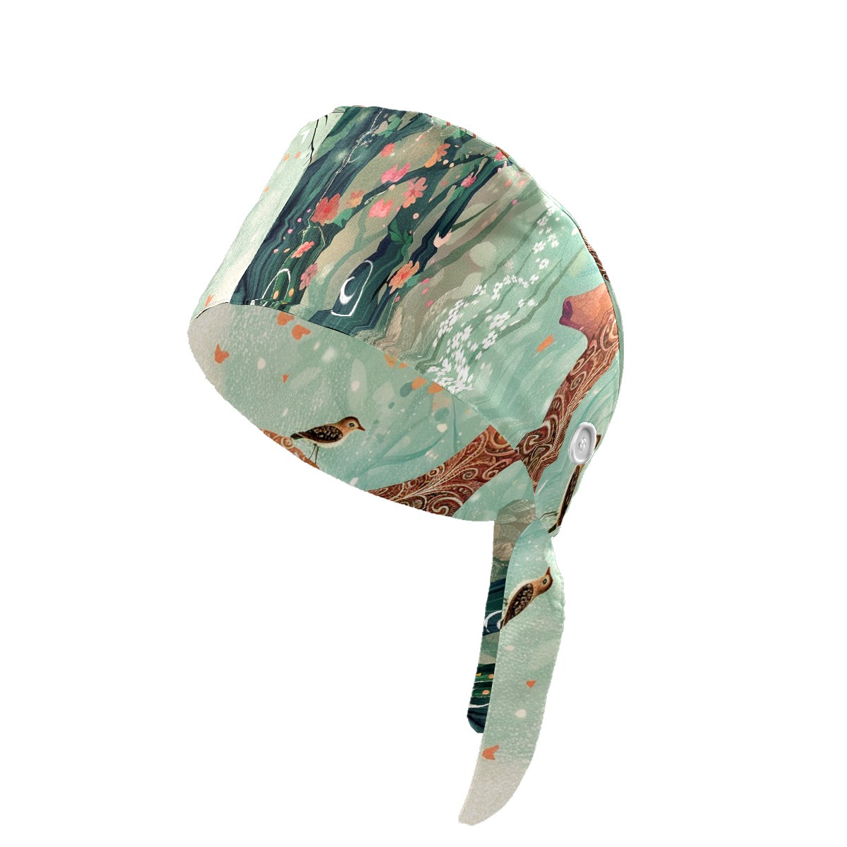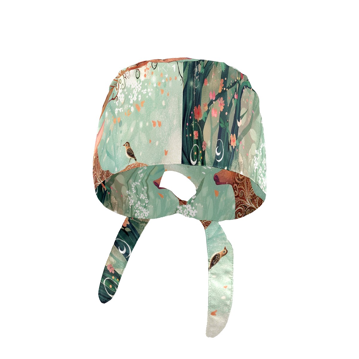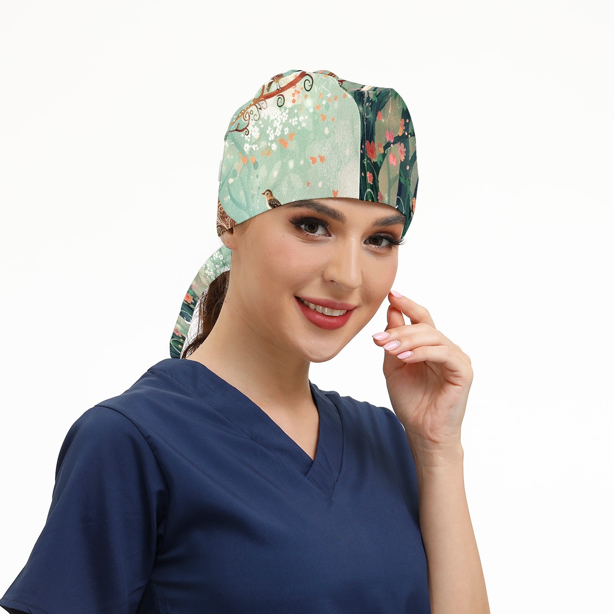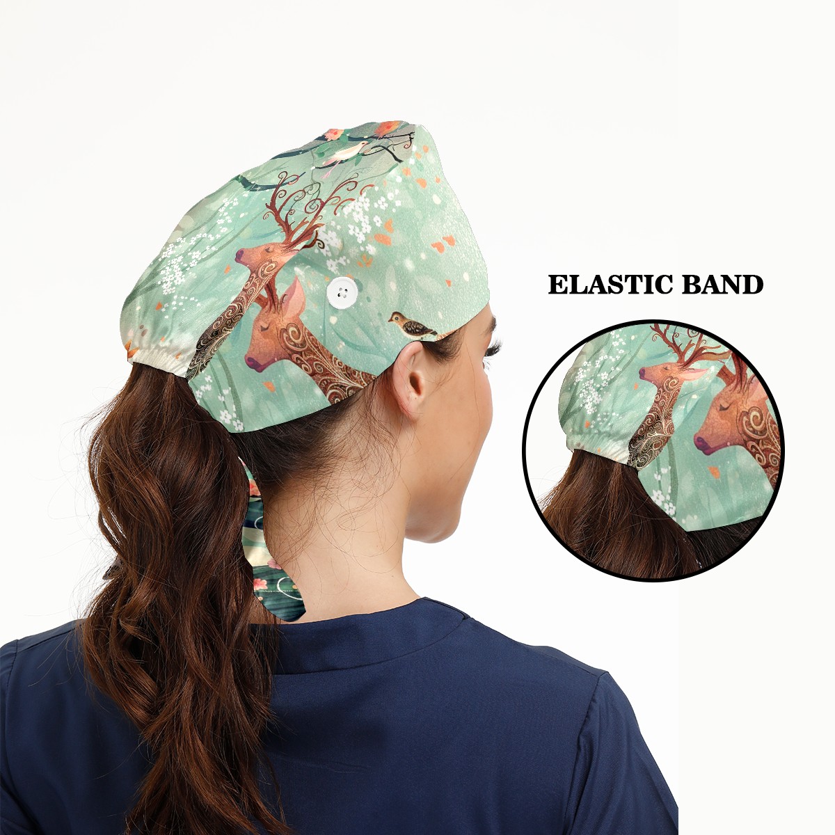 Working Caps with Button & Sweatband Satin Lined Cotton Adjustable Nurse Hats Elastic Band Scrub Cap Surgeon Hat Sika Deer
