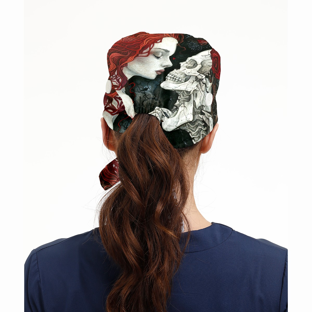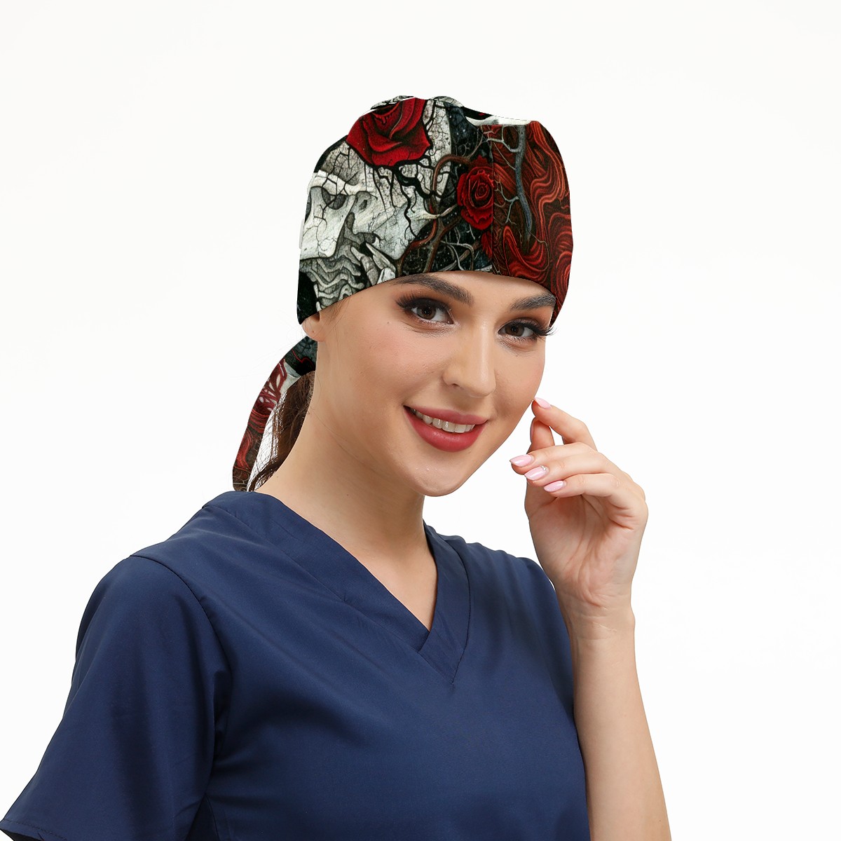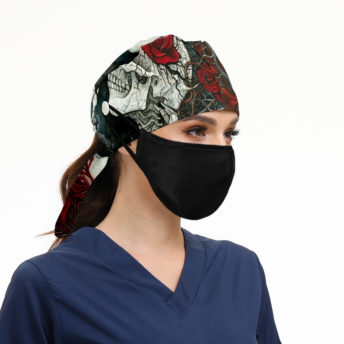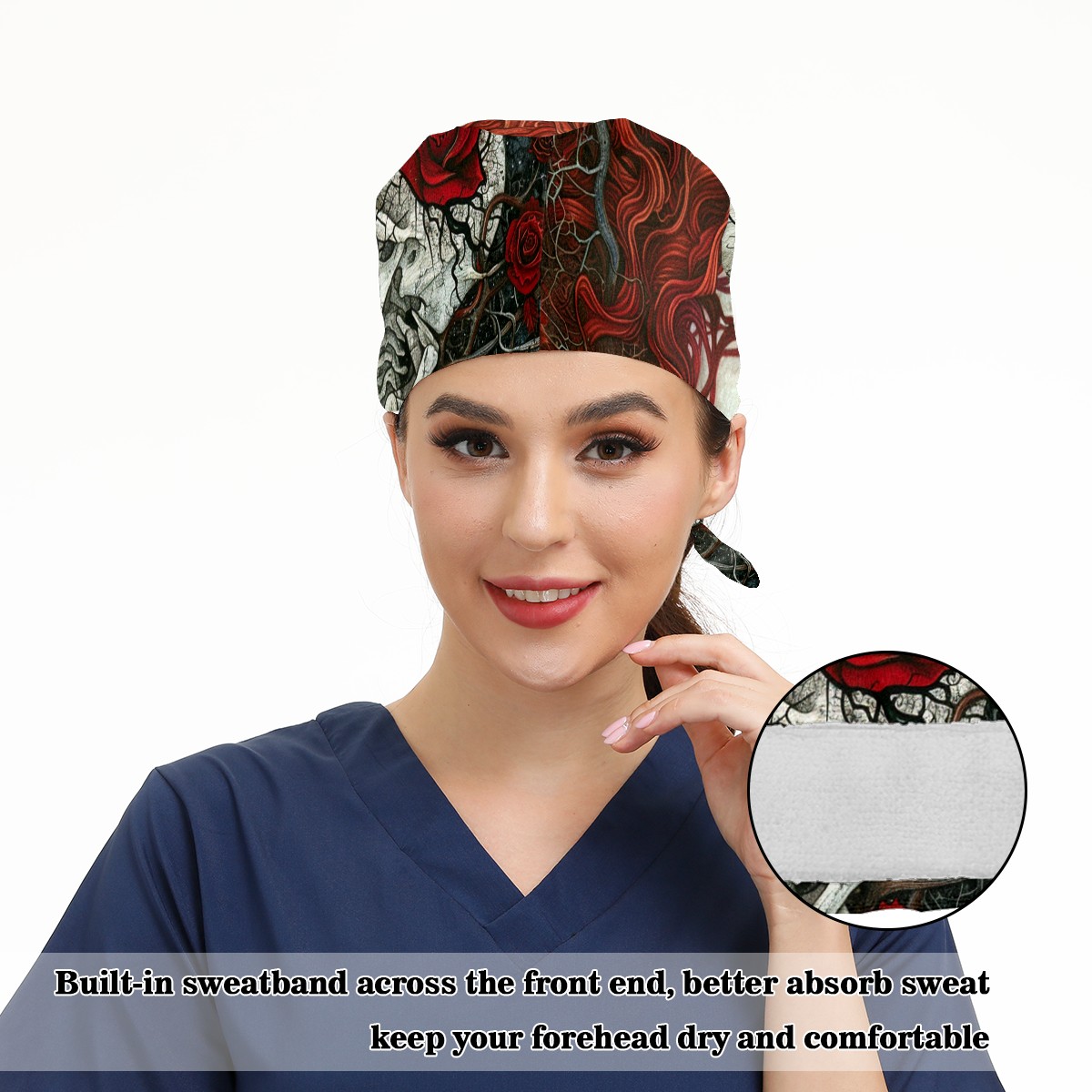 Working Caps with Button & Sweatband Satin Lined Cotton Adjustable Nurse Hats Elastic Band Scrub Cap Surgeon Hat Skull Head