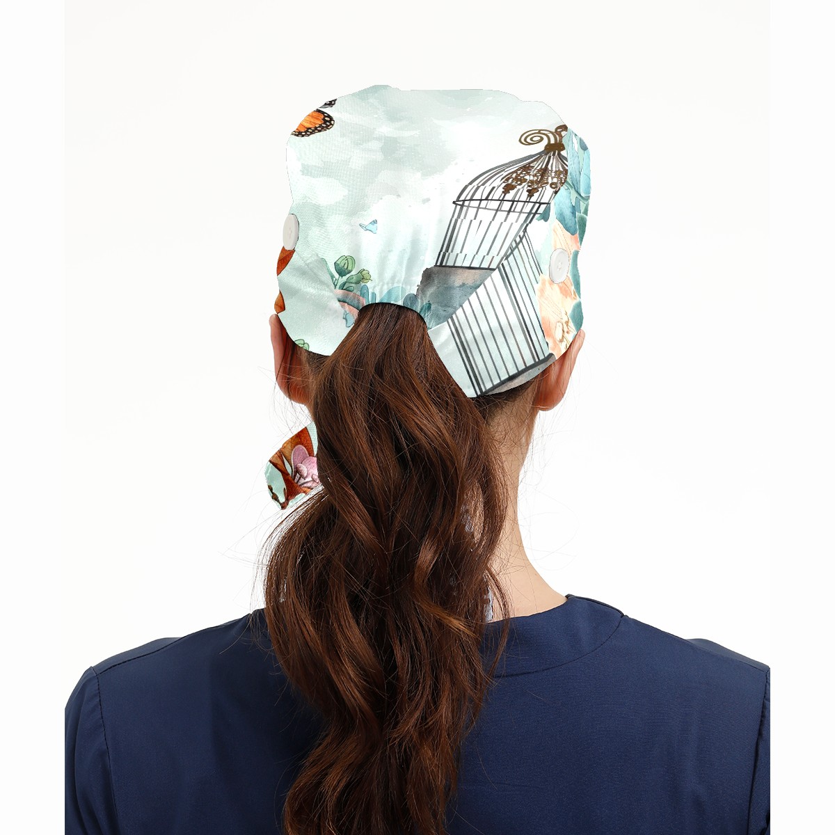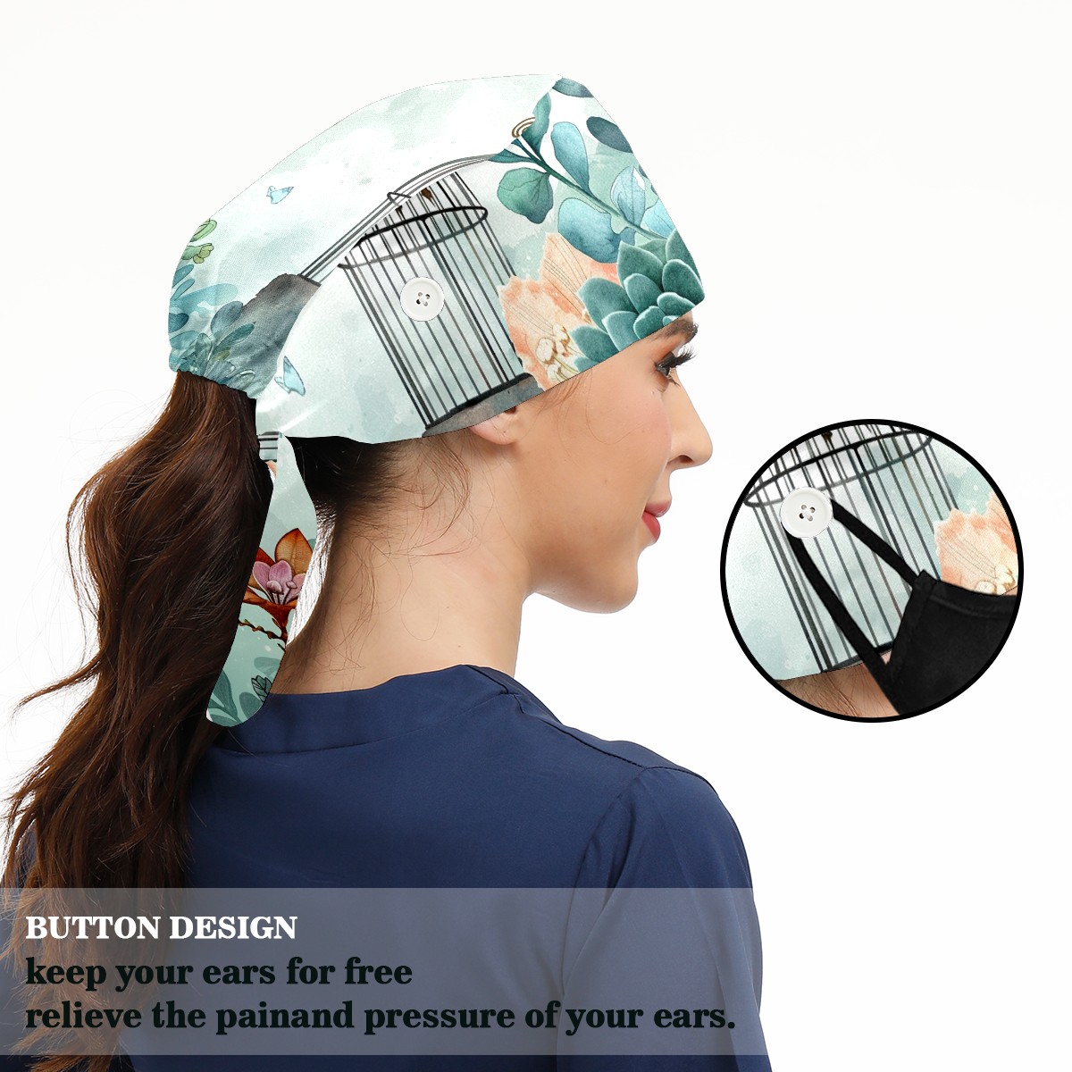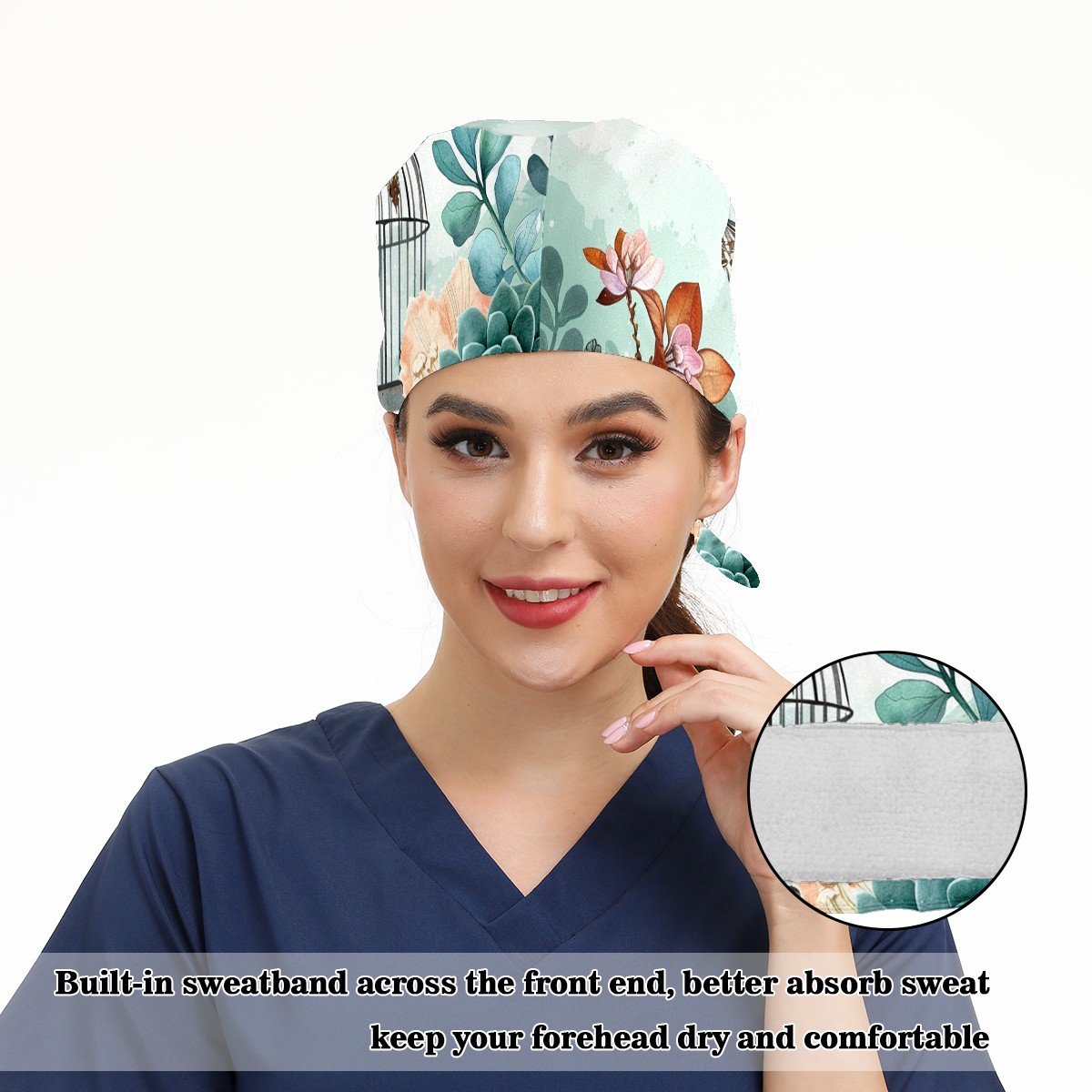 Working Caps with Button & Sweatband Satin Lined Cotton Adjustable Nurse Hats Elastic Band Scrub Cap Surgeon Hat Fleshiness