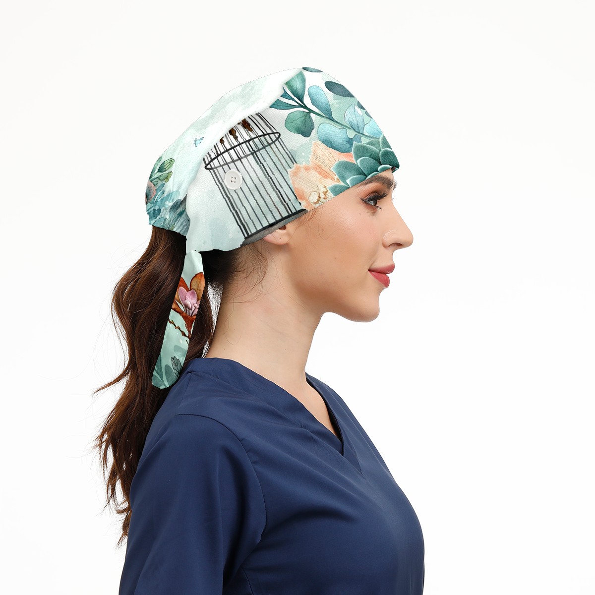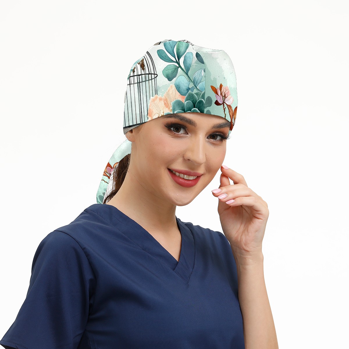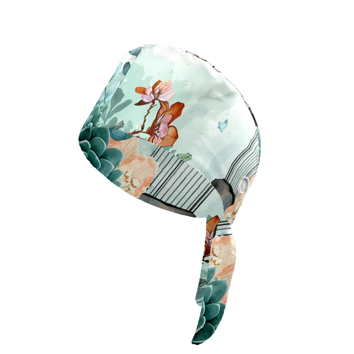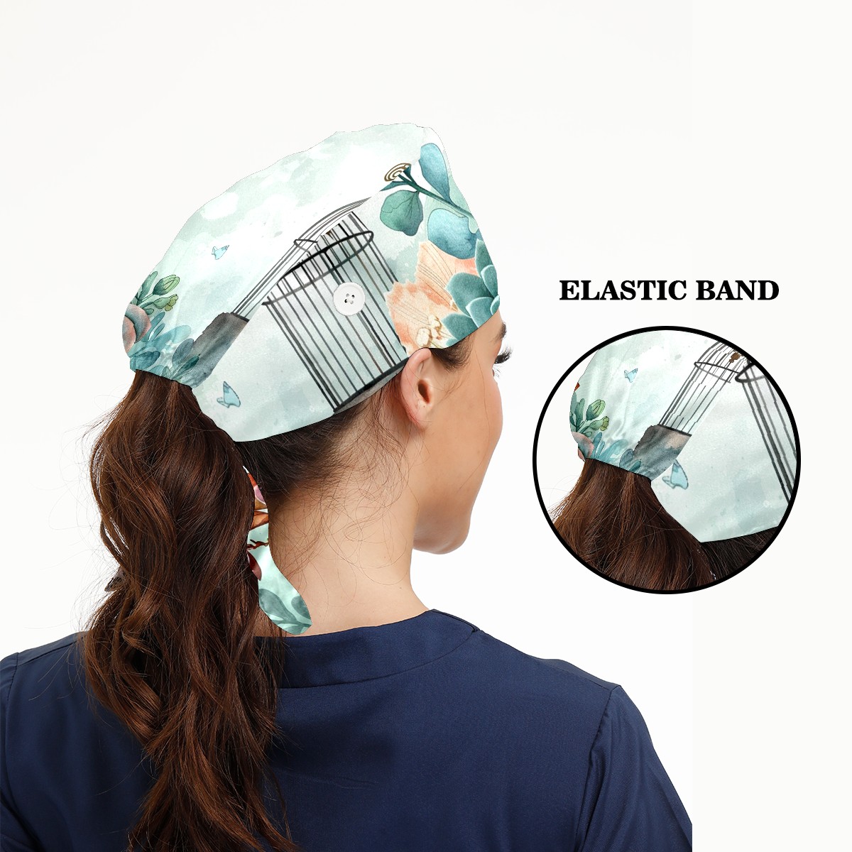Working Caps with Button & Sweatband Satin Lined Cotton Adjustable Nurse Hats Elastic Band Scrub Cap Surgeon Hat Fleshiness