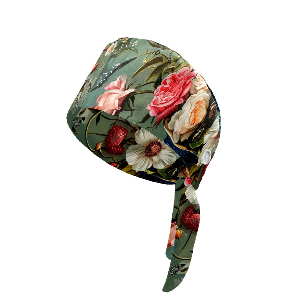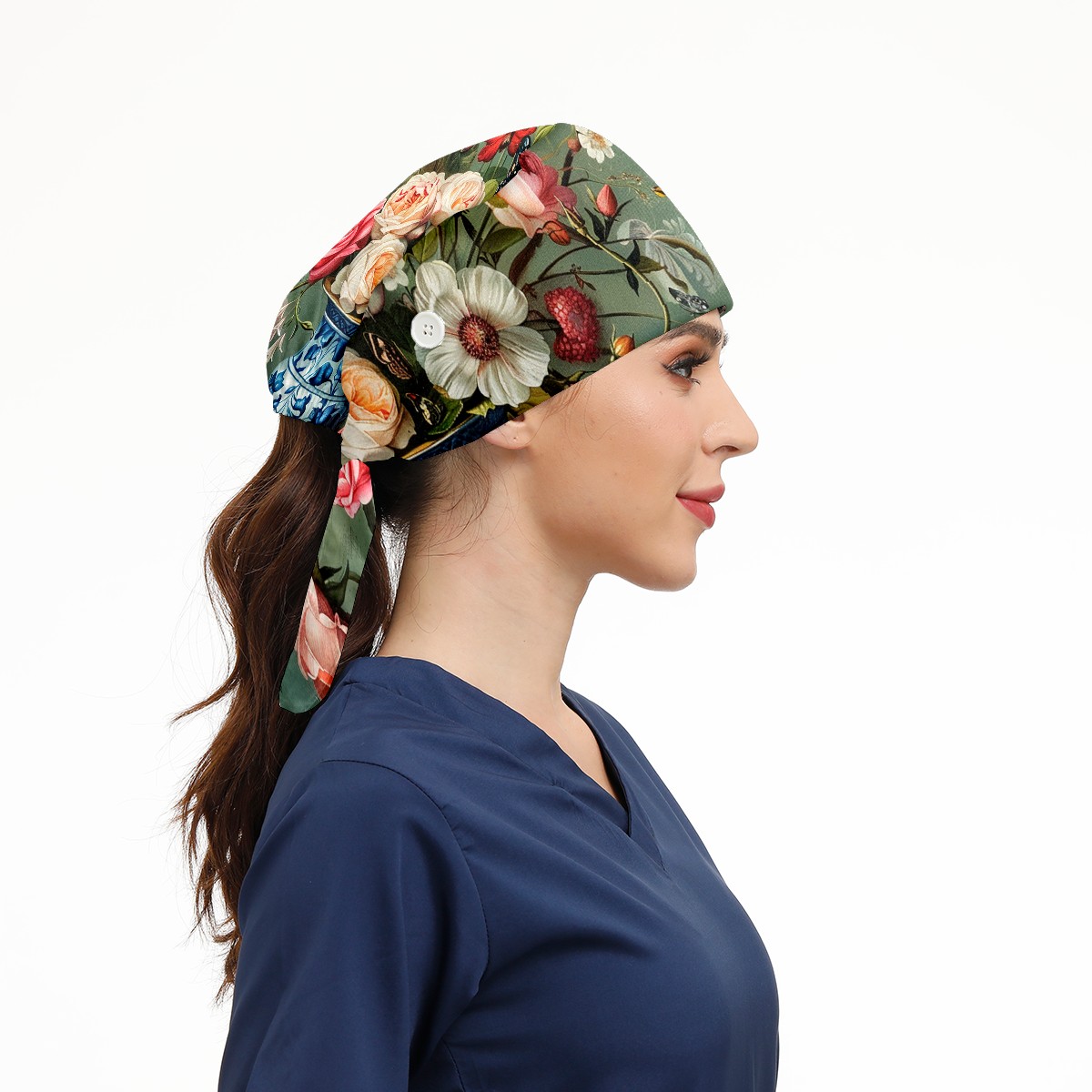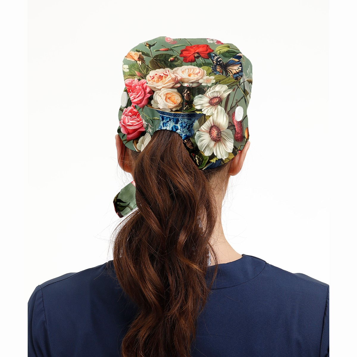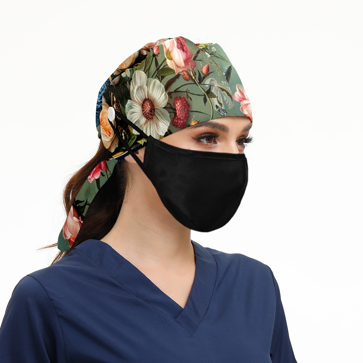 Working Caps with Button & Sweatband Satin Lined Cotton Adjustable Nurse Hats Elastic Band Scrub Cap Surgeon Hat Rose