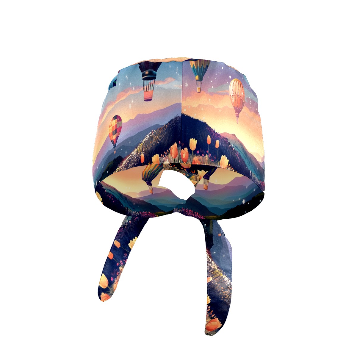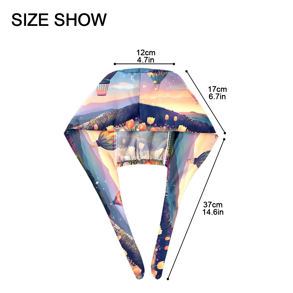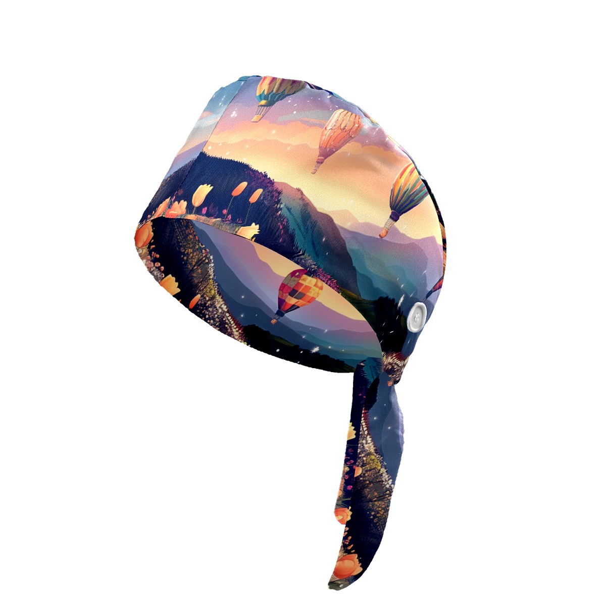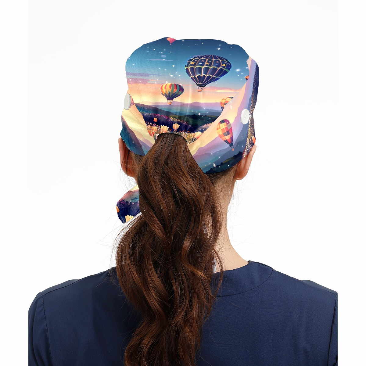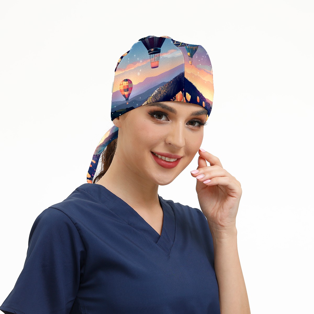 Working Caps with Button & Sweatband Satin Lined Cotton Adjustable Nurse Hats Elastic Band Scrub Cap Surgeon Hat Hydrogen Balloon