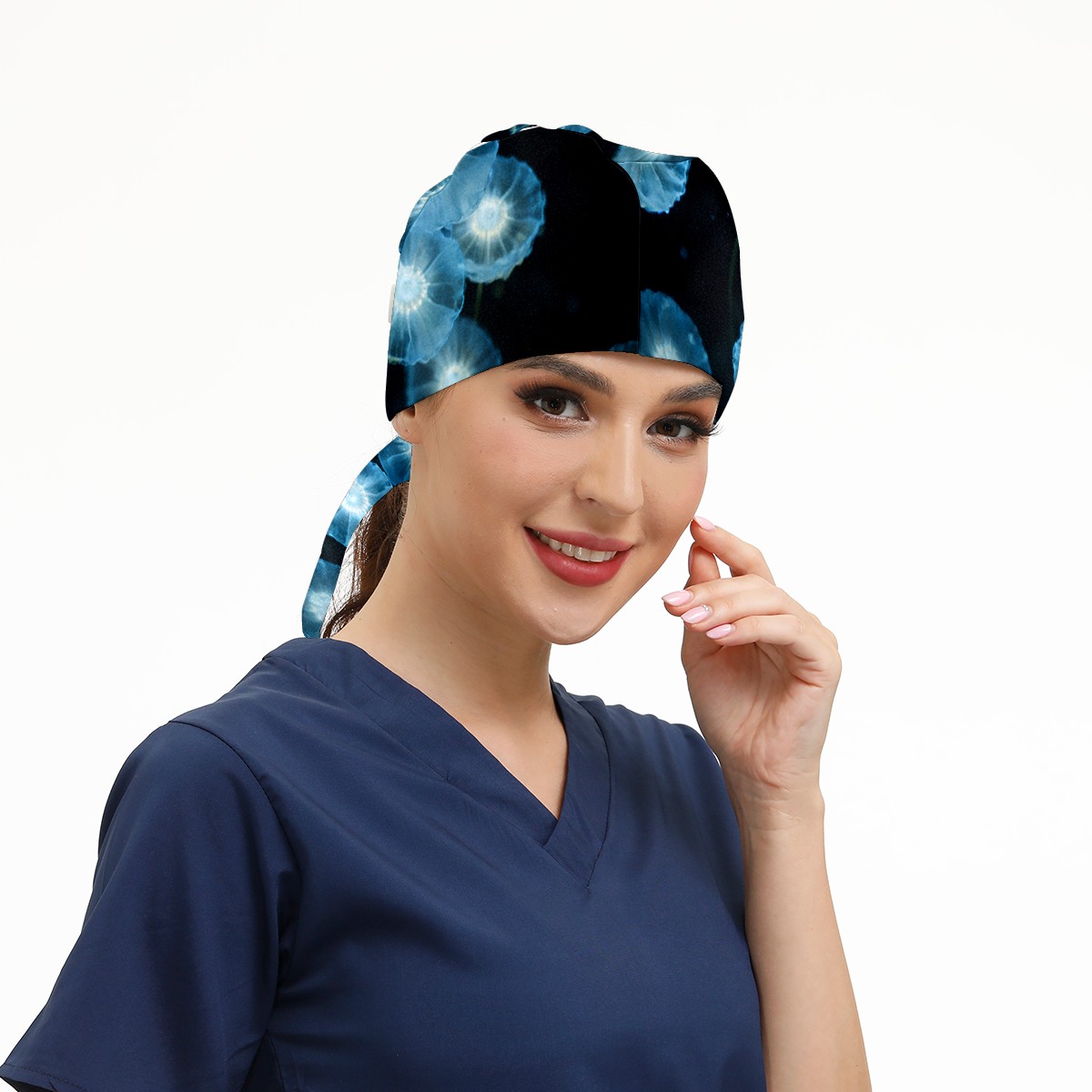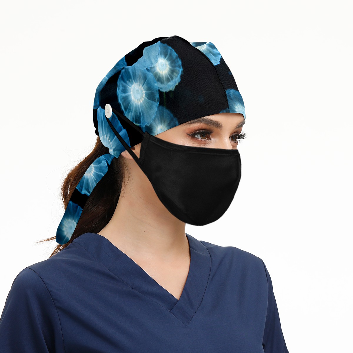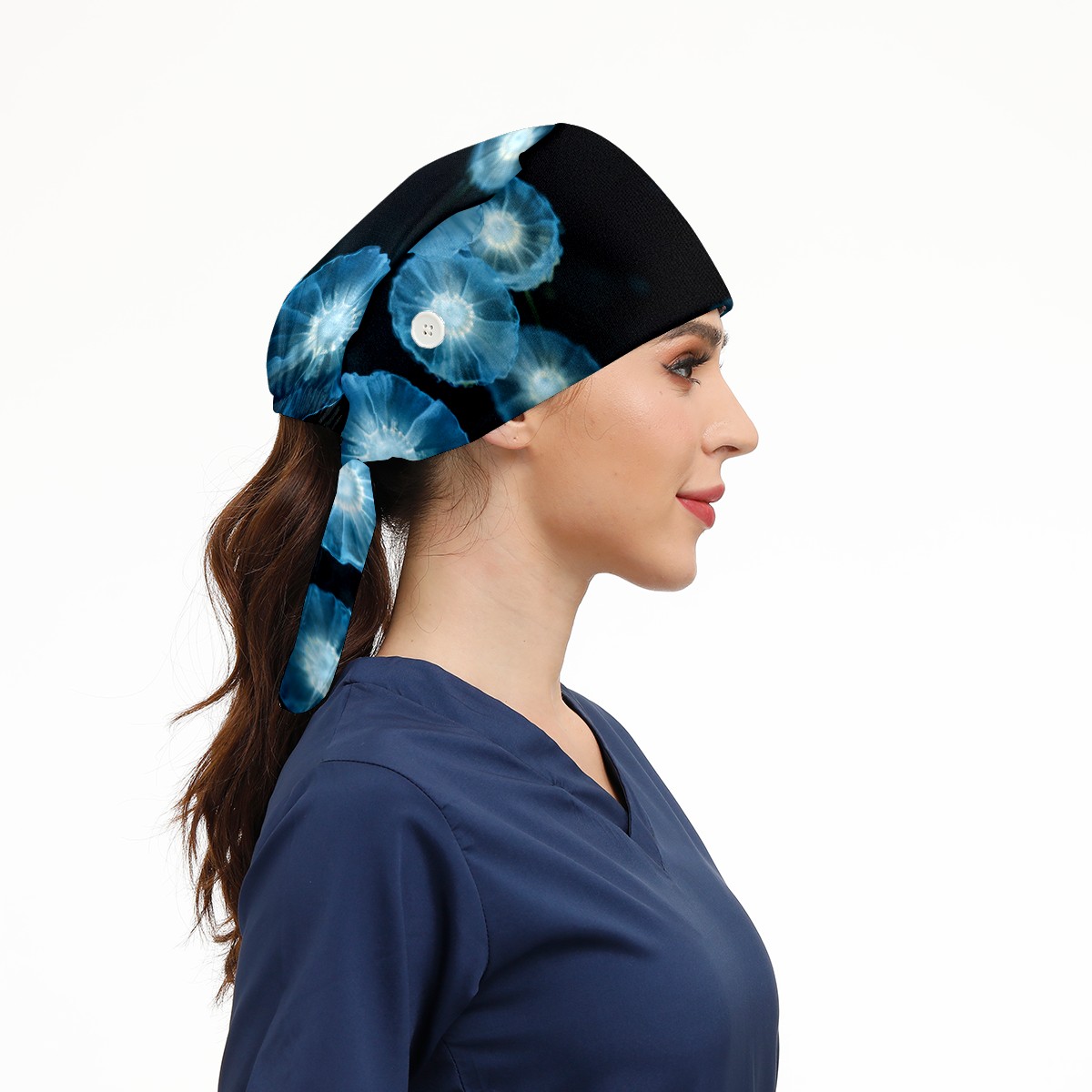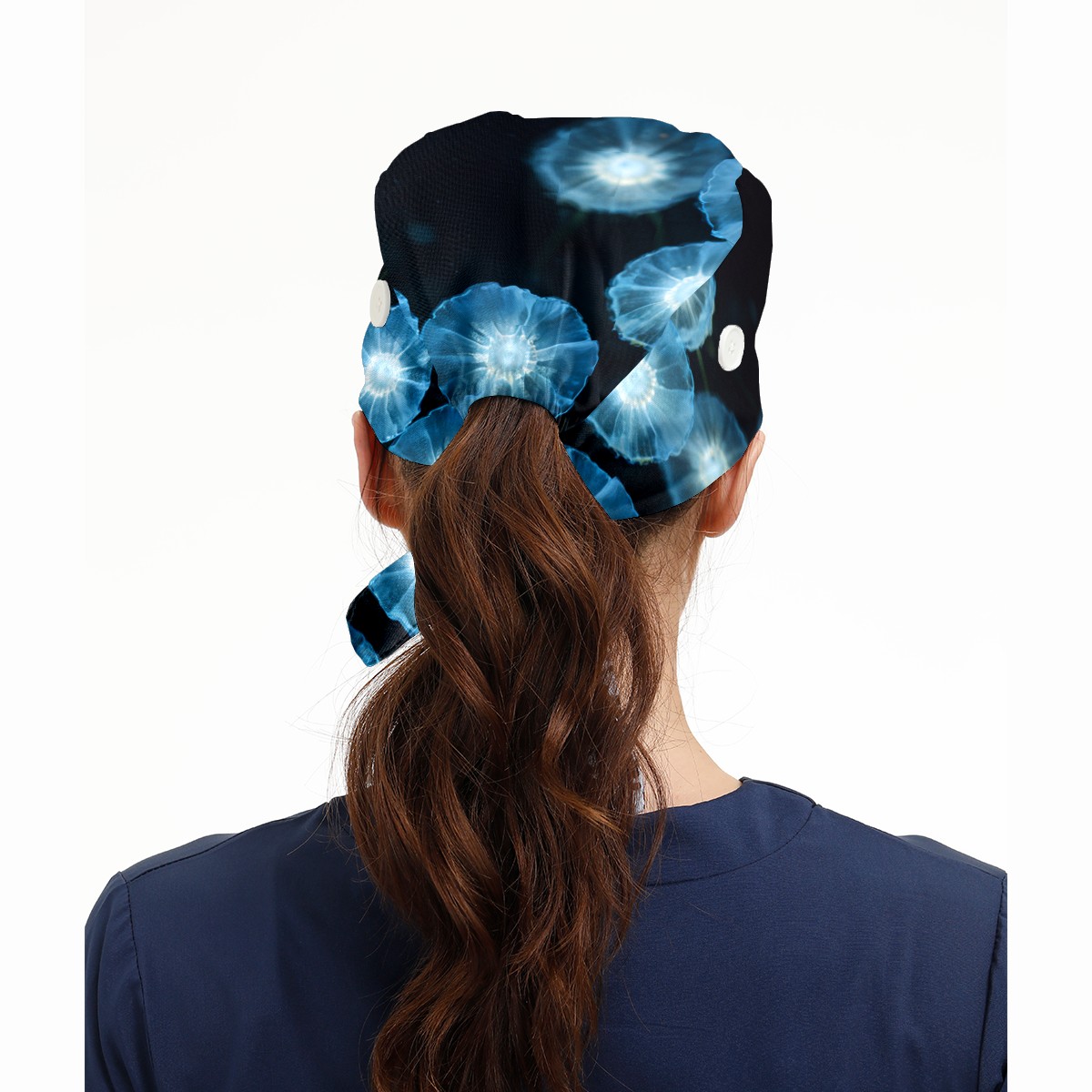 Working Caps with Button & Sweatband Satin Lined Cotton Adjustable Nurse Hats Elastic Band Scrub Cap Surgeon Hat Jellyfish (4)