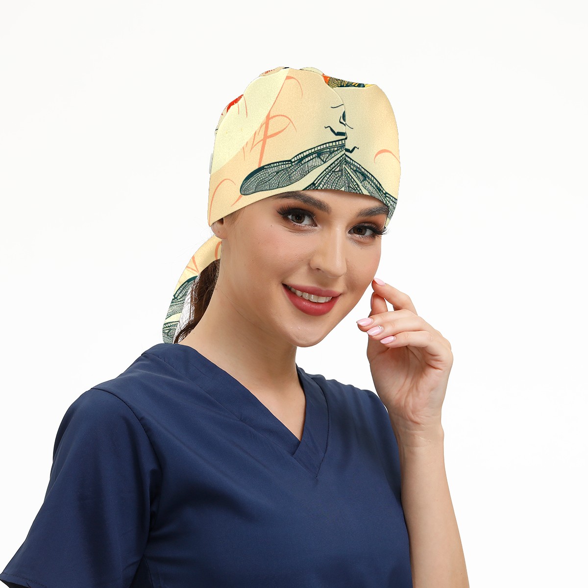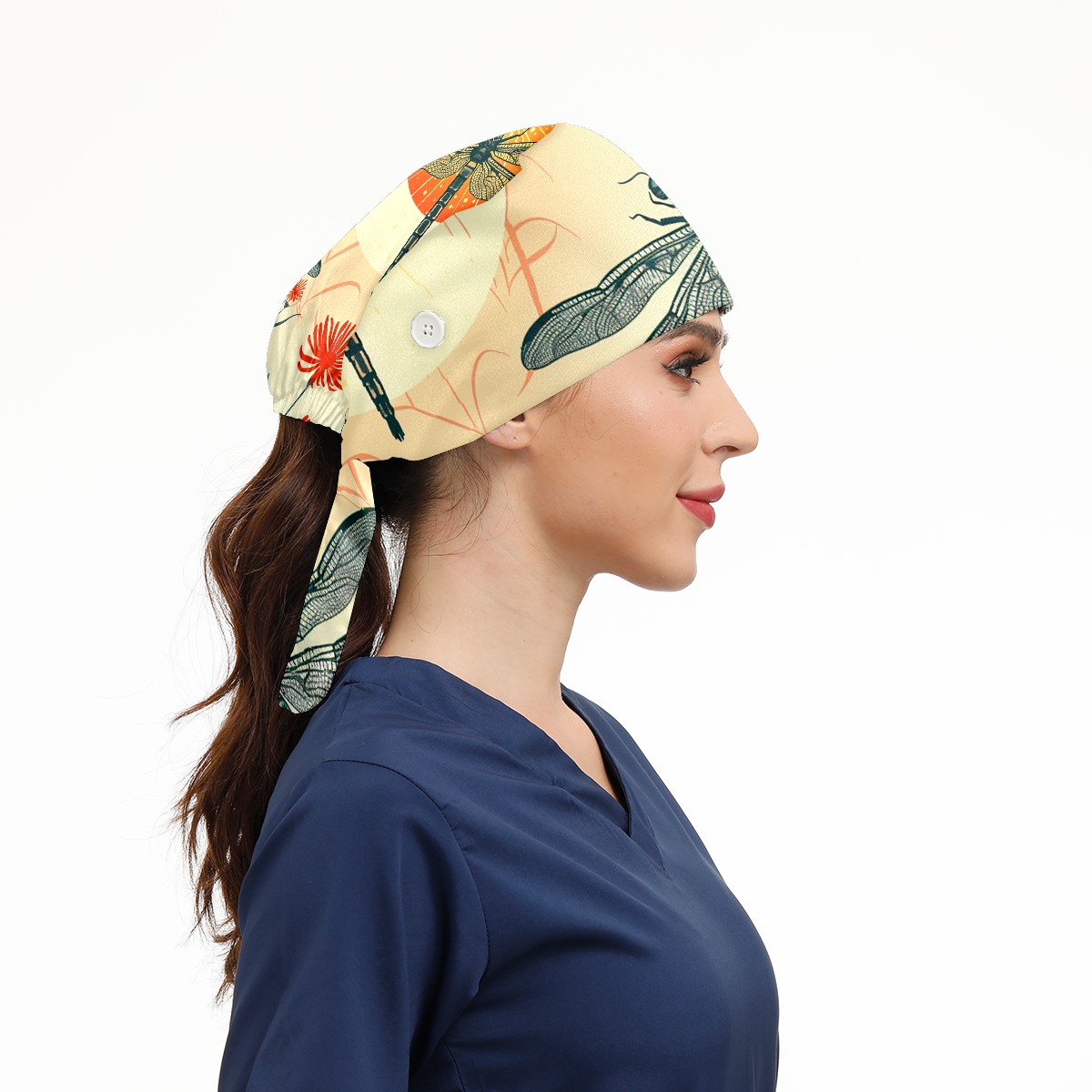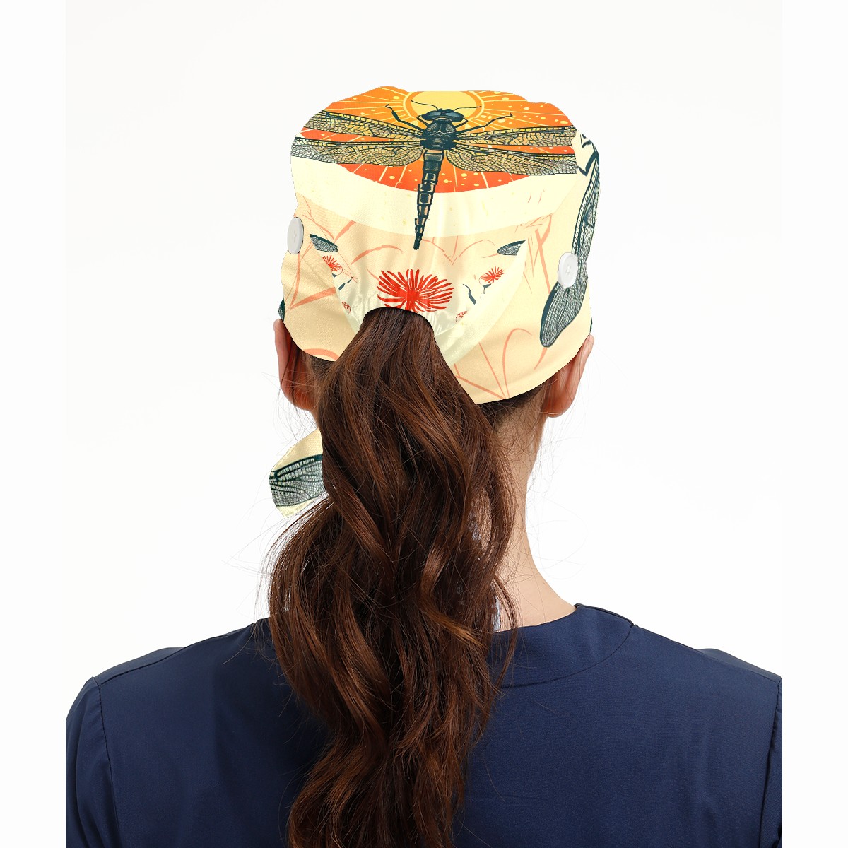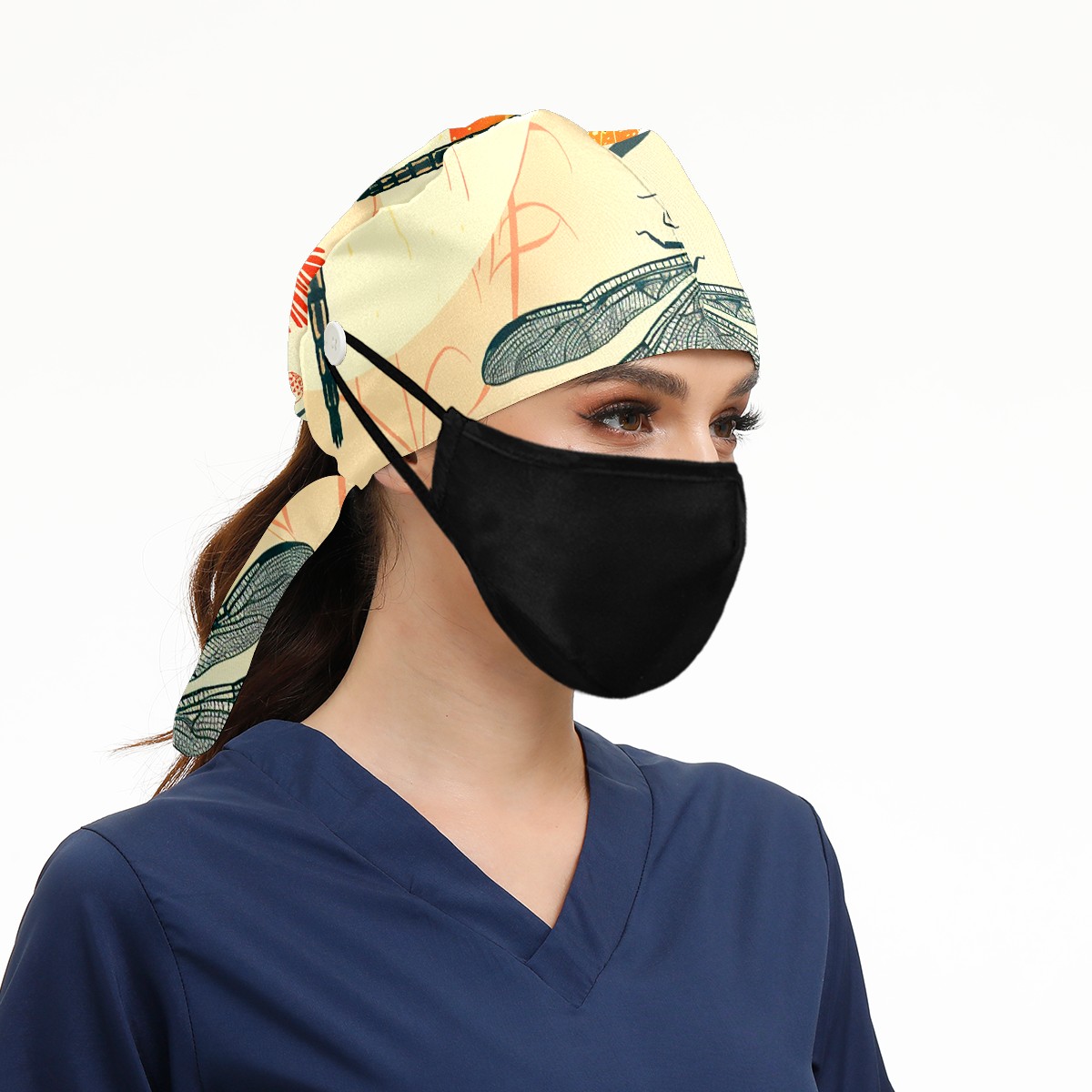 Working Caps with Button & Sweatband Satin Lined Cotton Adjustable Nurse Hats Elastic Band Scrub Cap Surgeon Hat Dragonfly (38)
