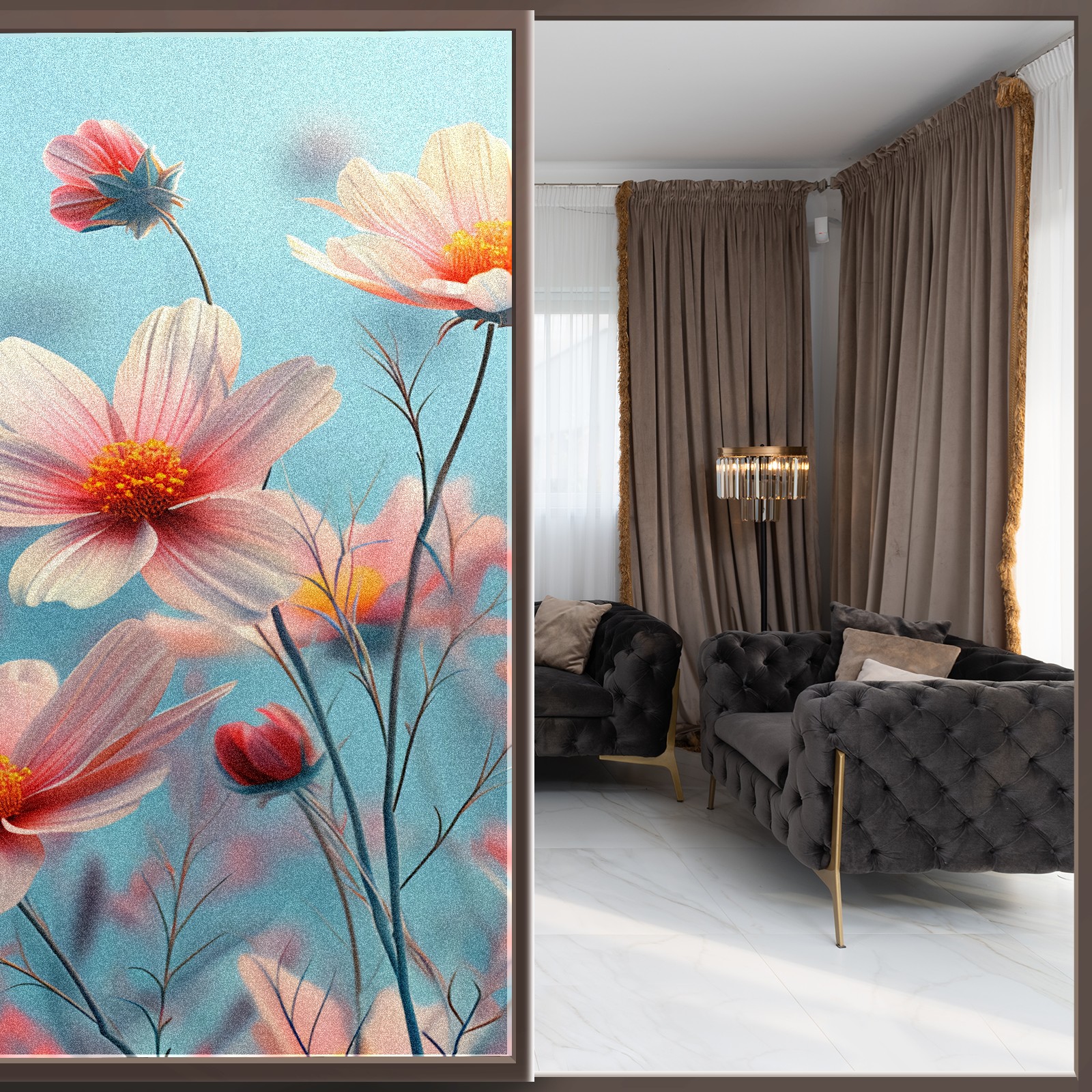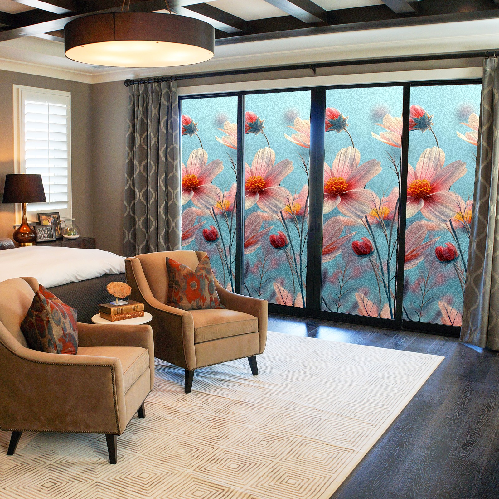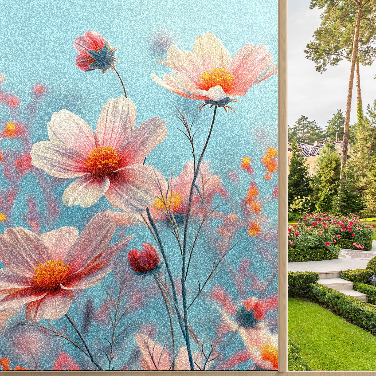 Static Cling Decorative Window Film Frosted Privacy Film Window Clings for Glass Windows No Glue Window Sticker for Bathroom Bedroom Office Myriad Petals
