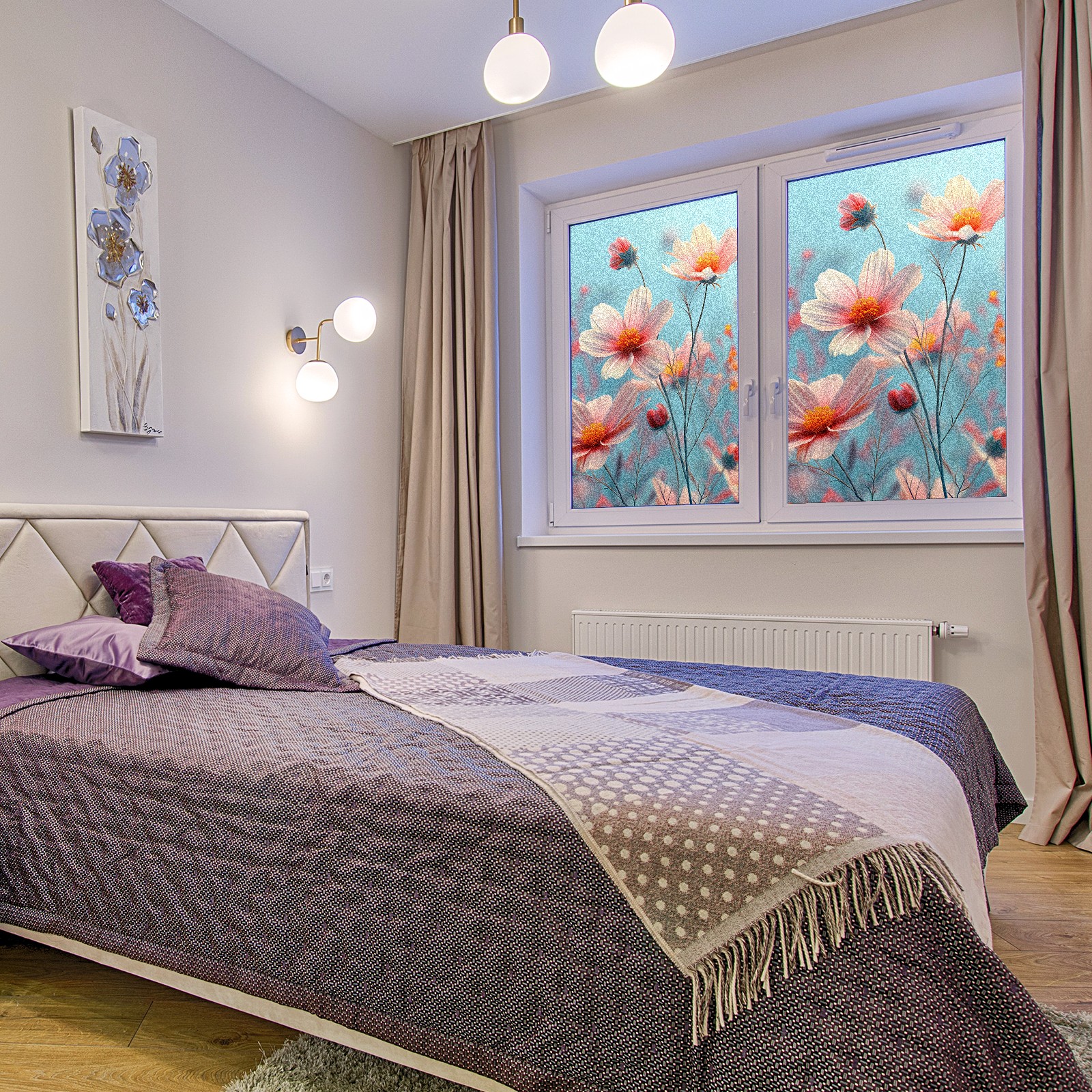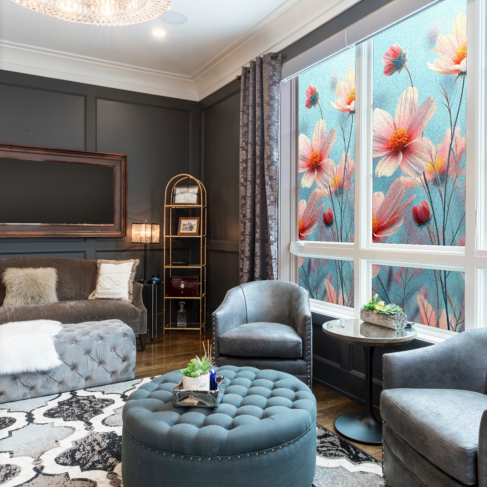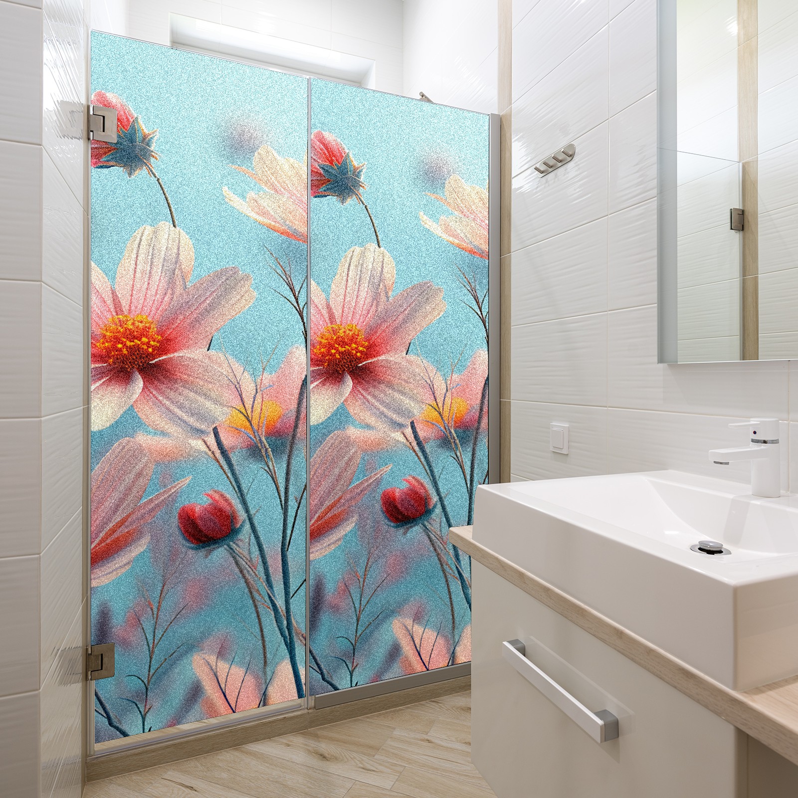 Static Cling Decorative Window Film Frosted Privacy Film Window Clings for Glass Windows No Glue Window Sticker for Bathroom Bedroom Office Myriad Petals