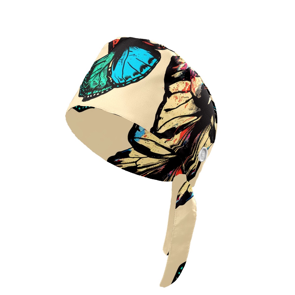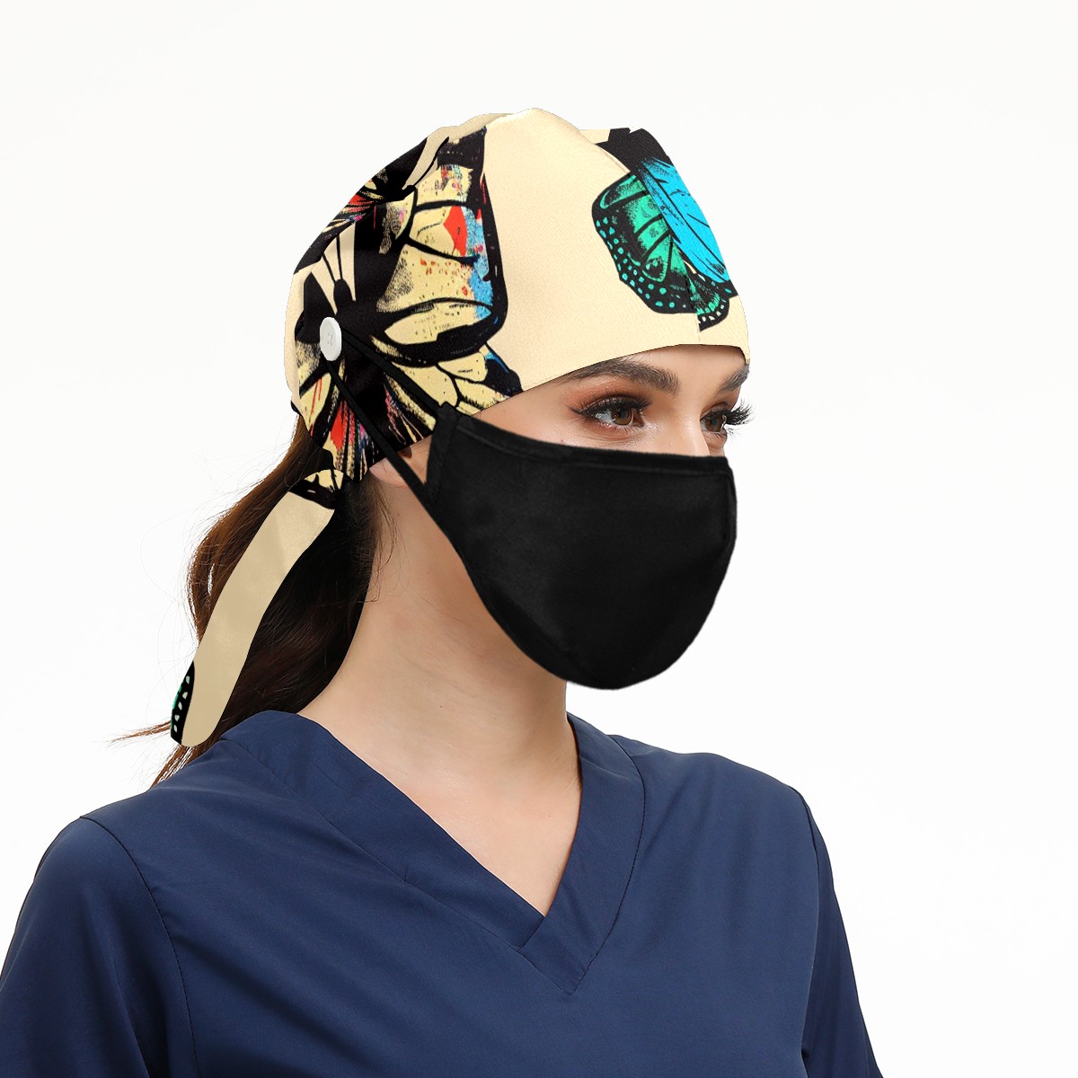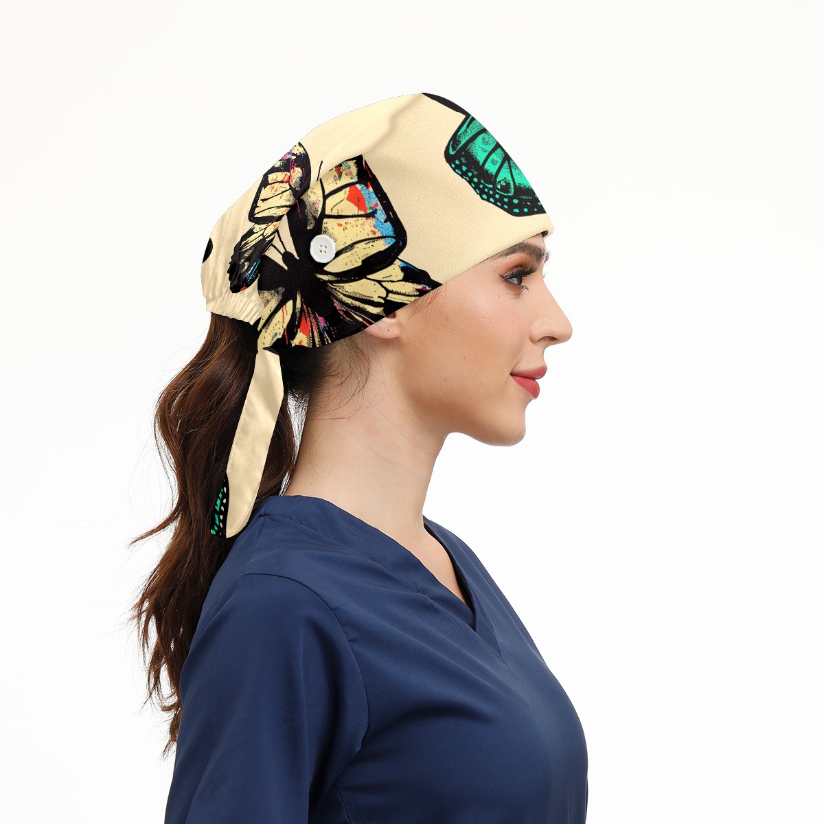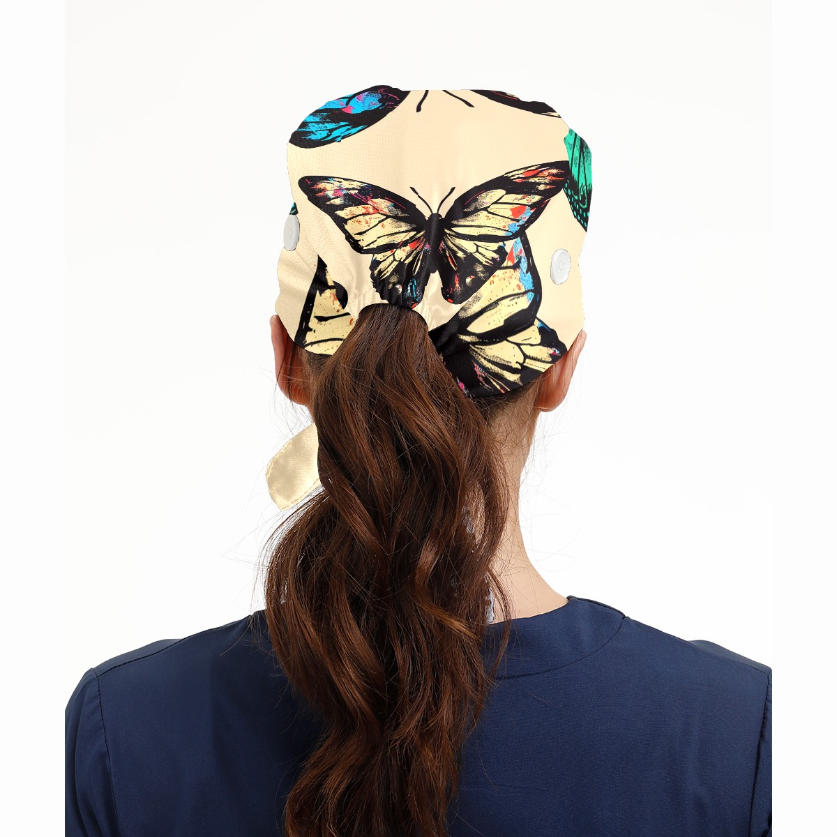 Working Caps with Button & Sweatband Satin Lined Cotton Adjustable Nurse Hats Elastic Band Scrub Cap Surgeon Hat Butterfly (7)