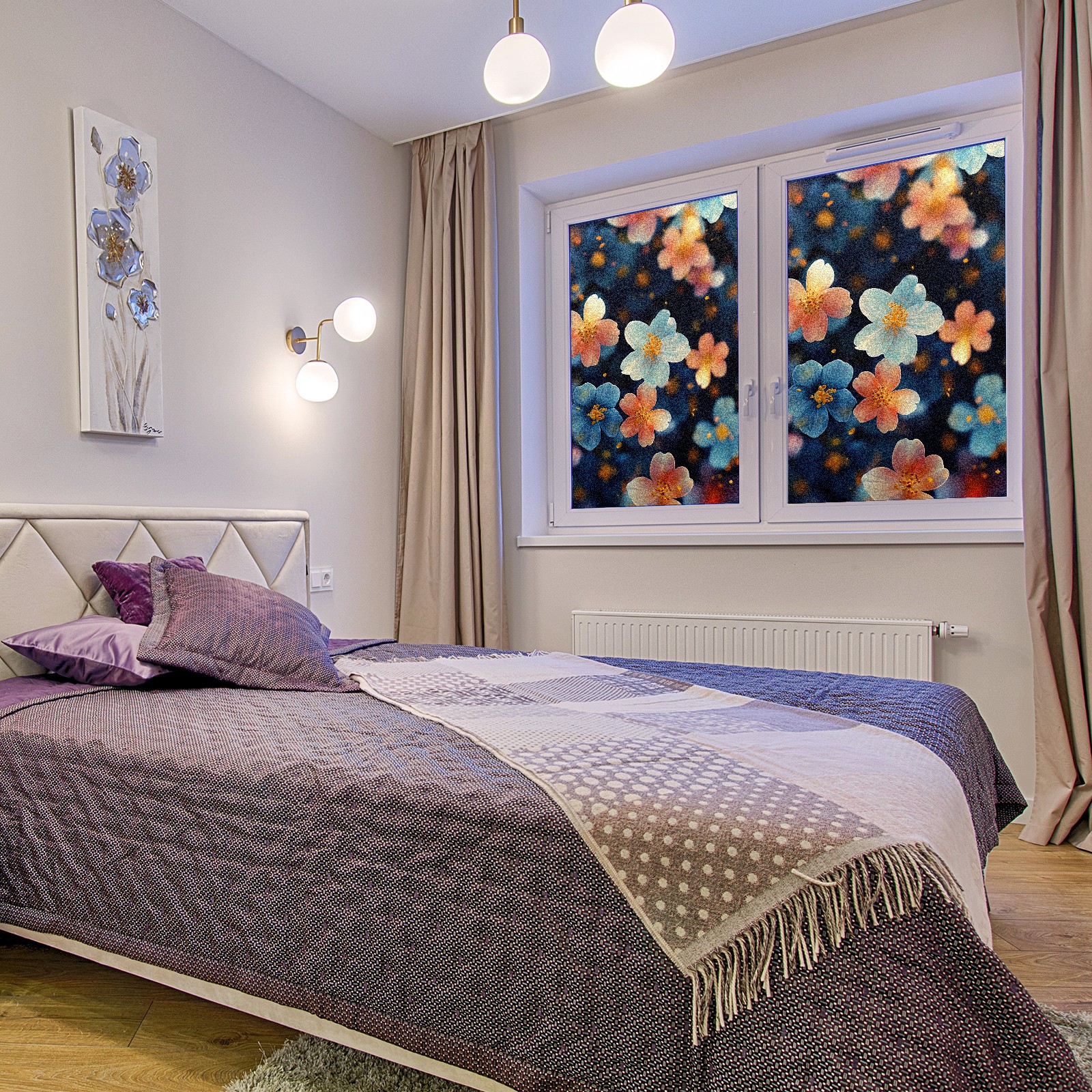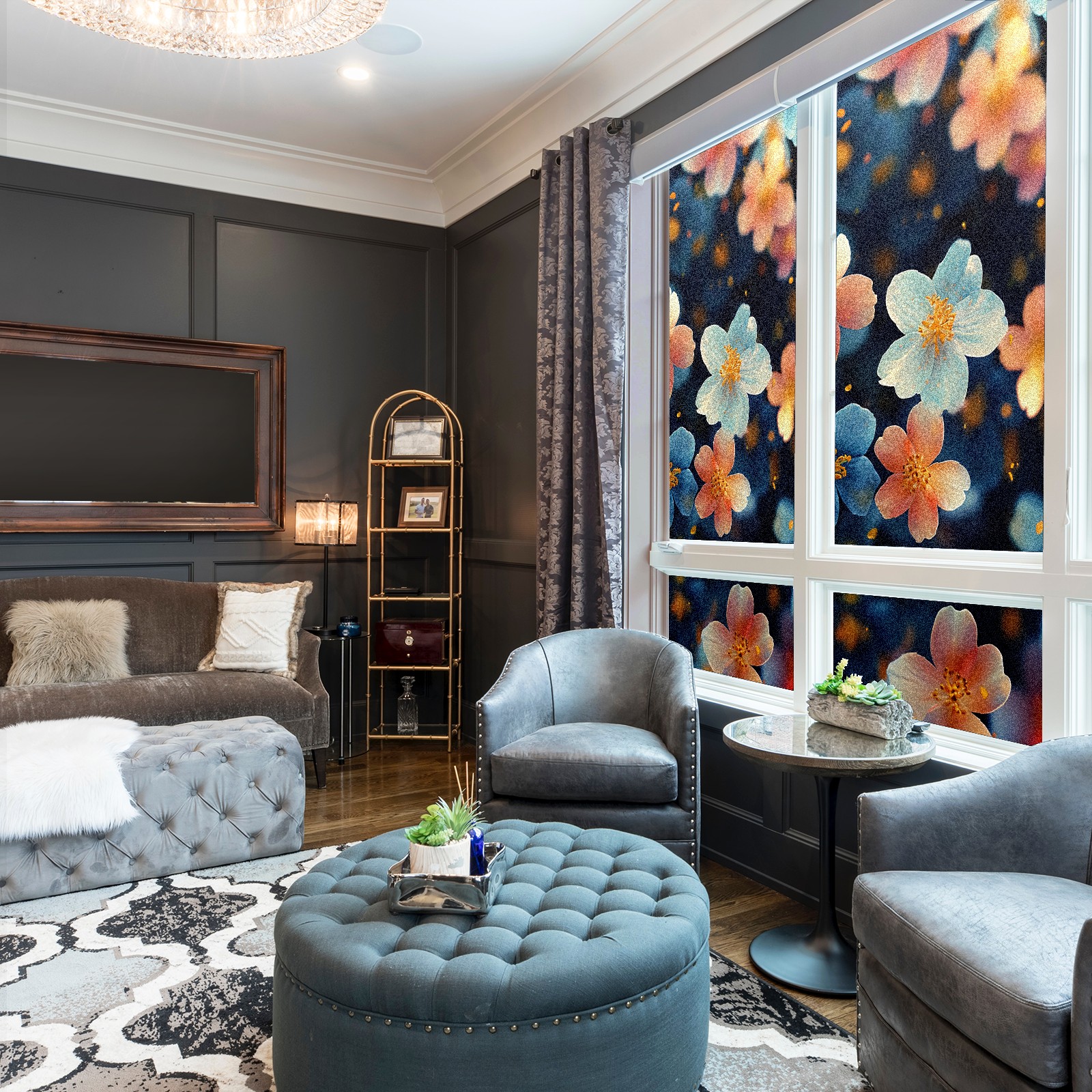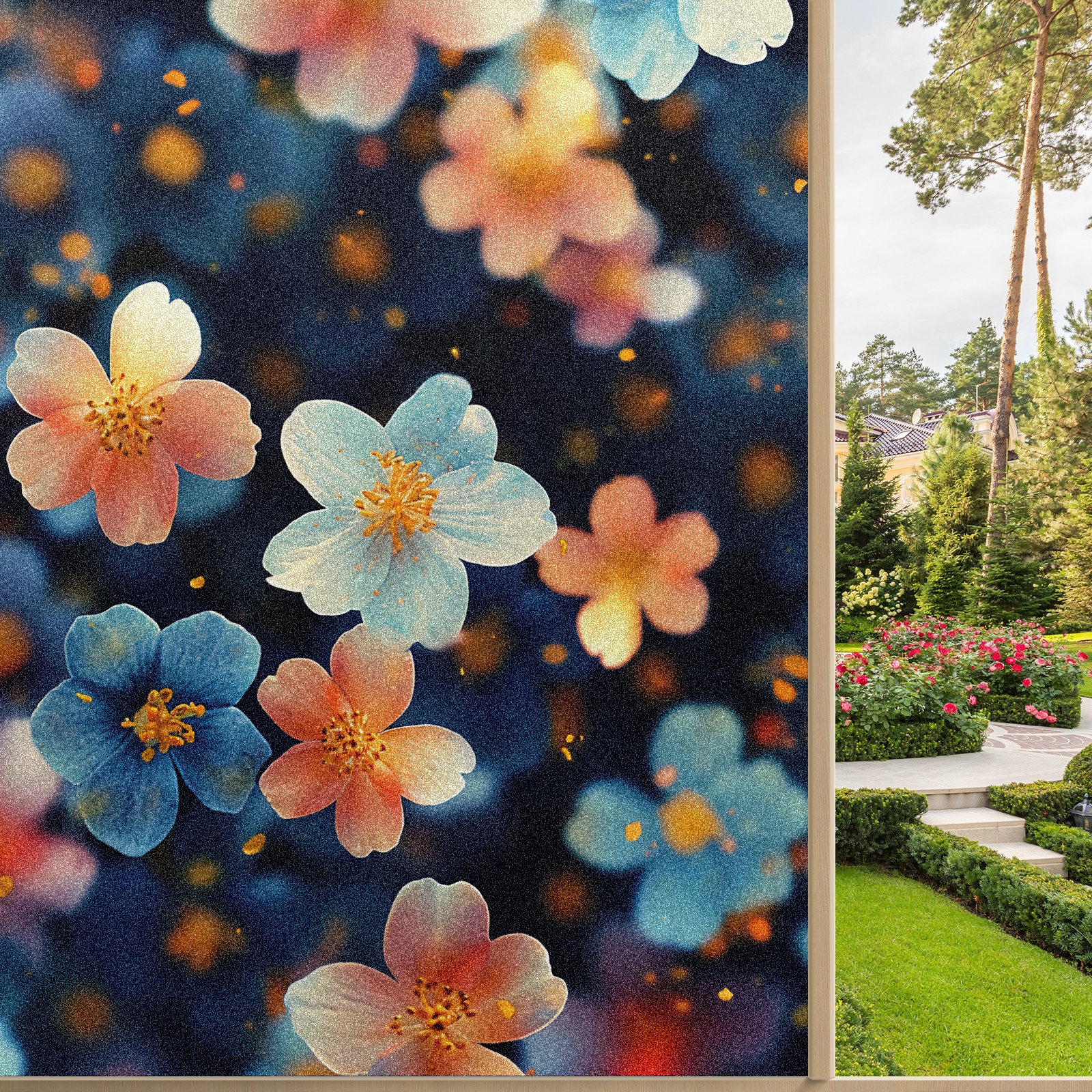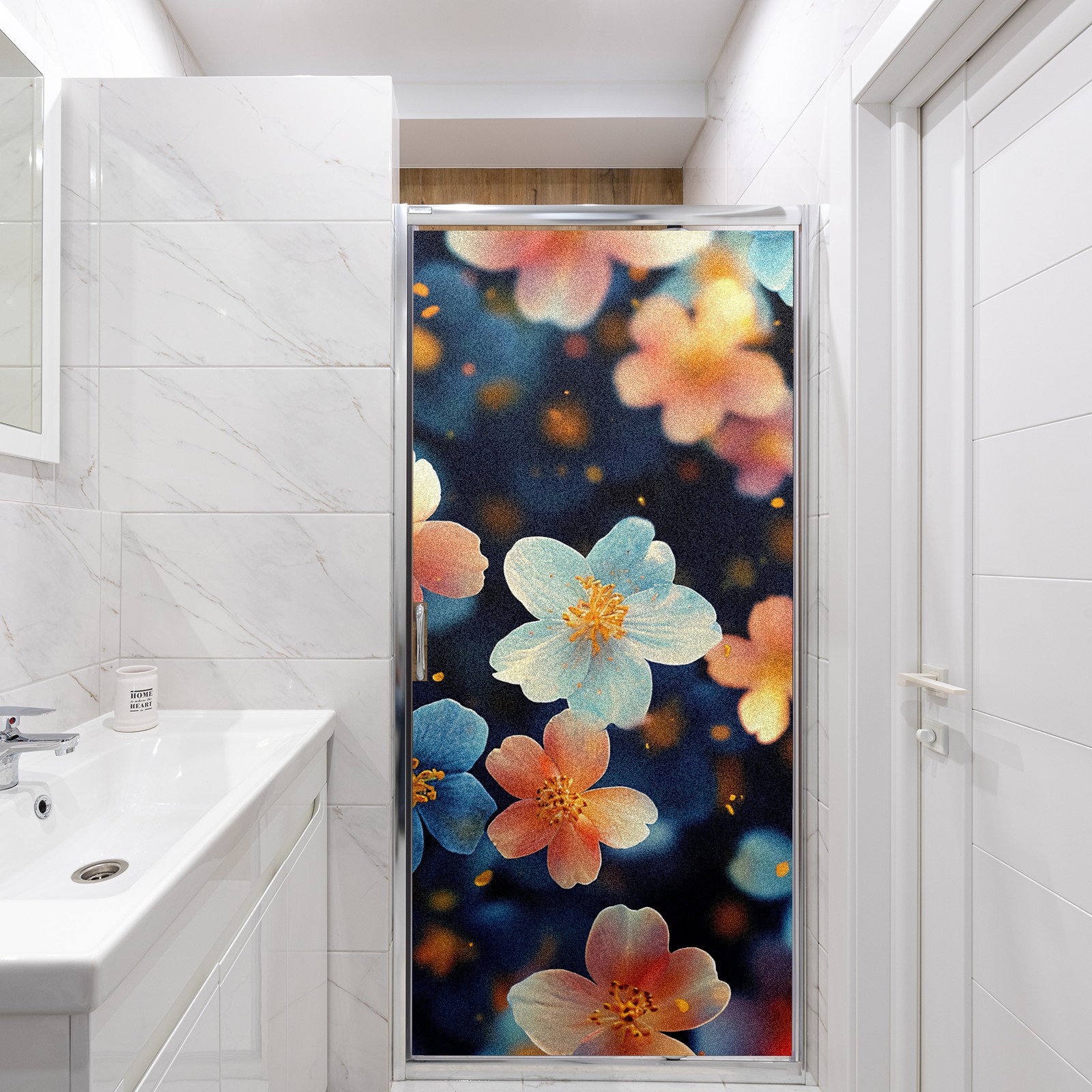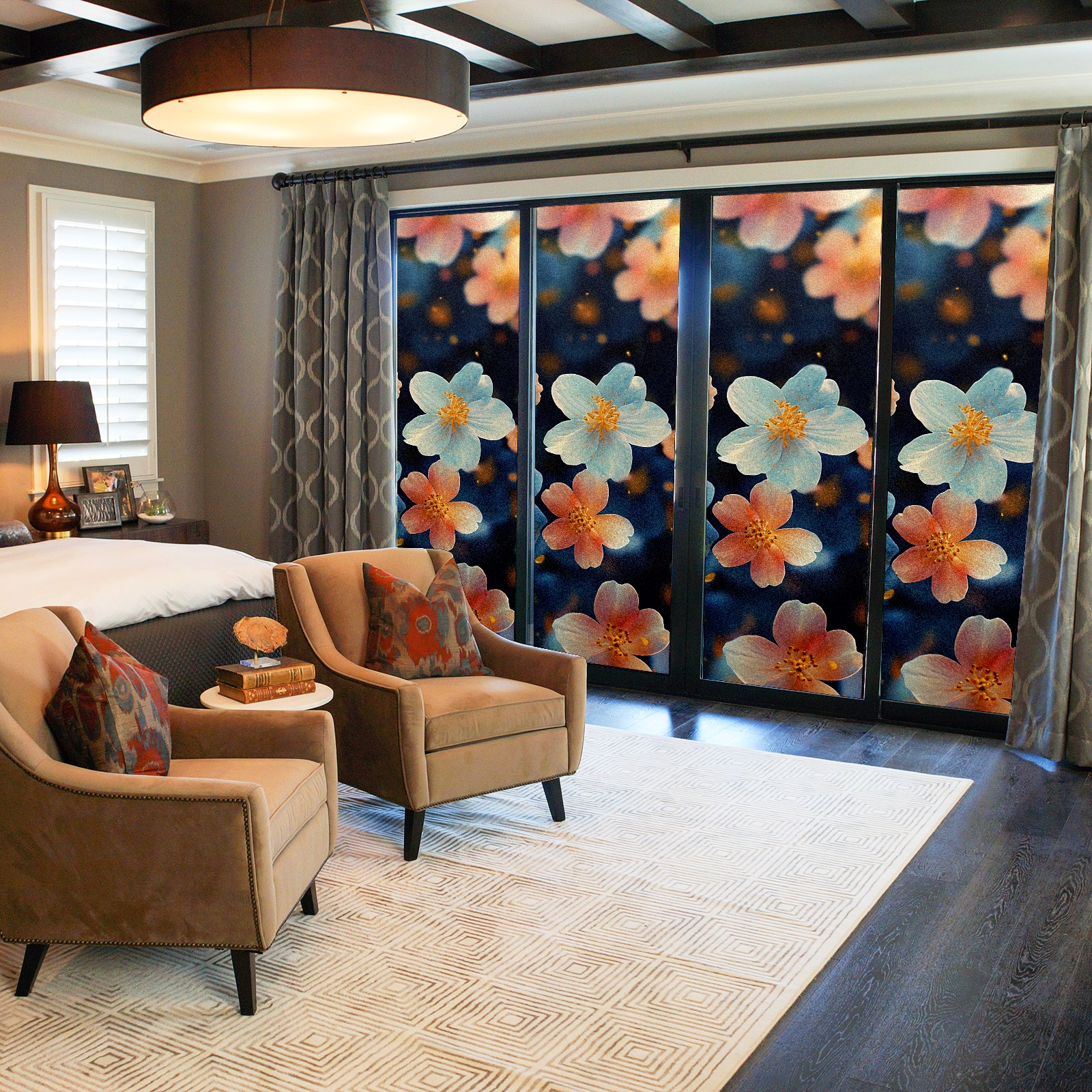 Static Cling Decorative Window Film Frosted Privacy Film Window Clings for Glass Windows No Glue Window Sticker for Bathroom Bedroom Office Myriad Flowers B