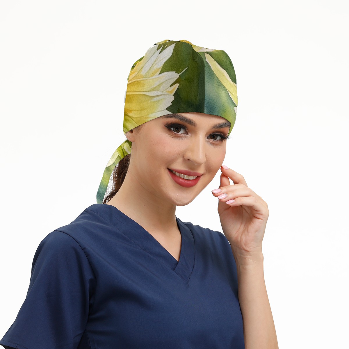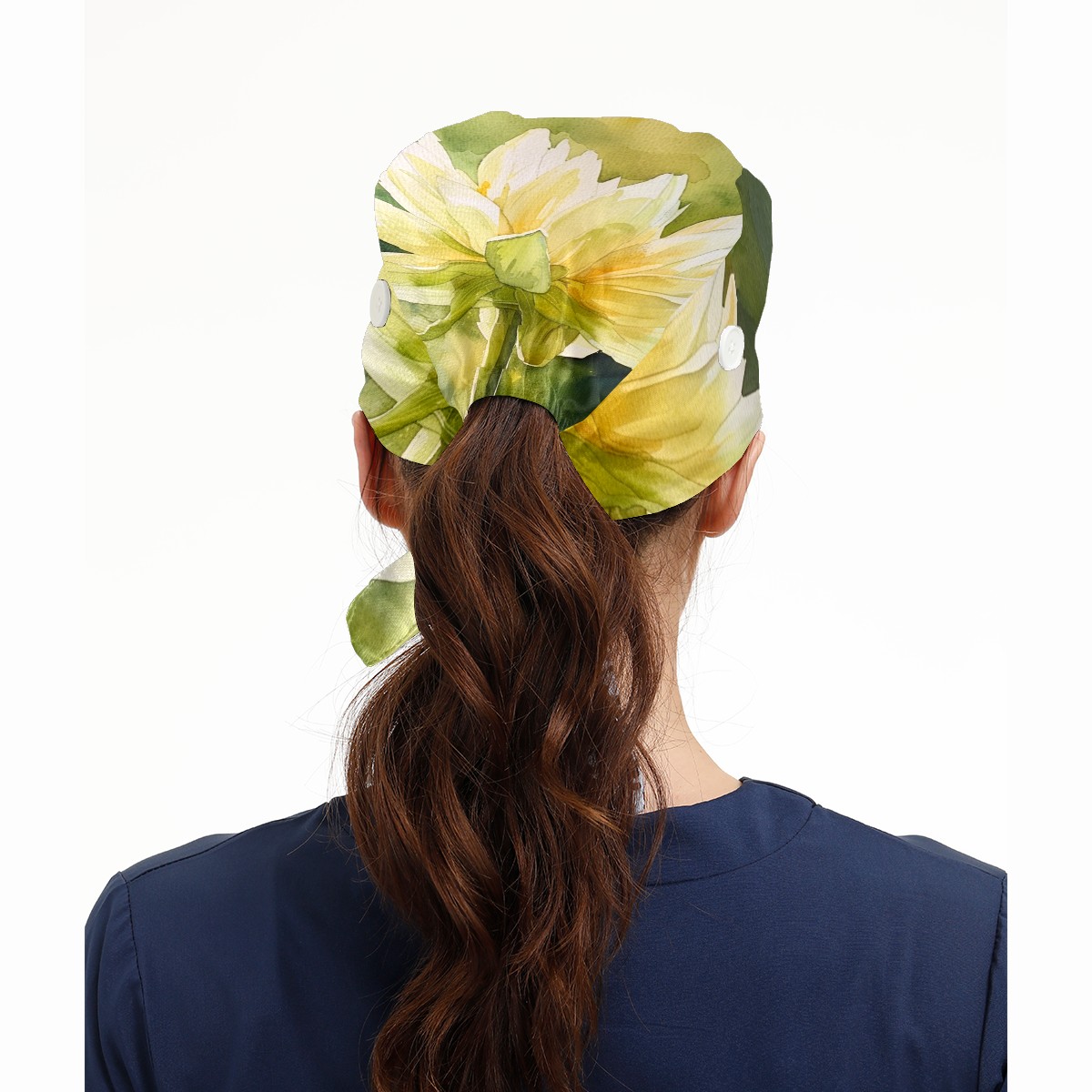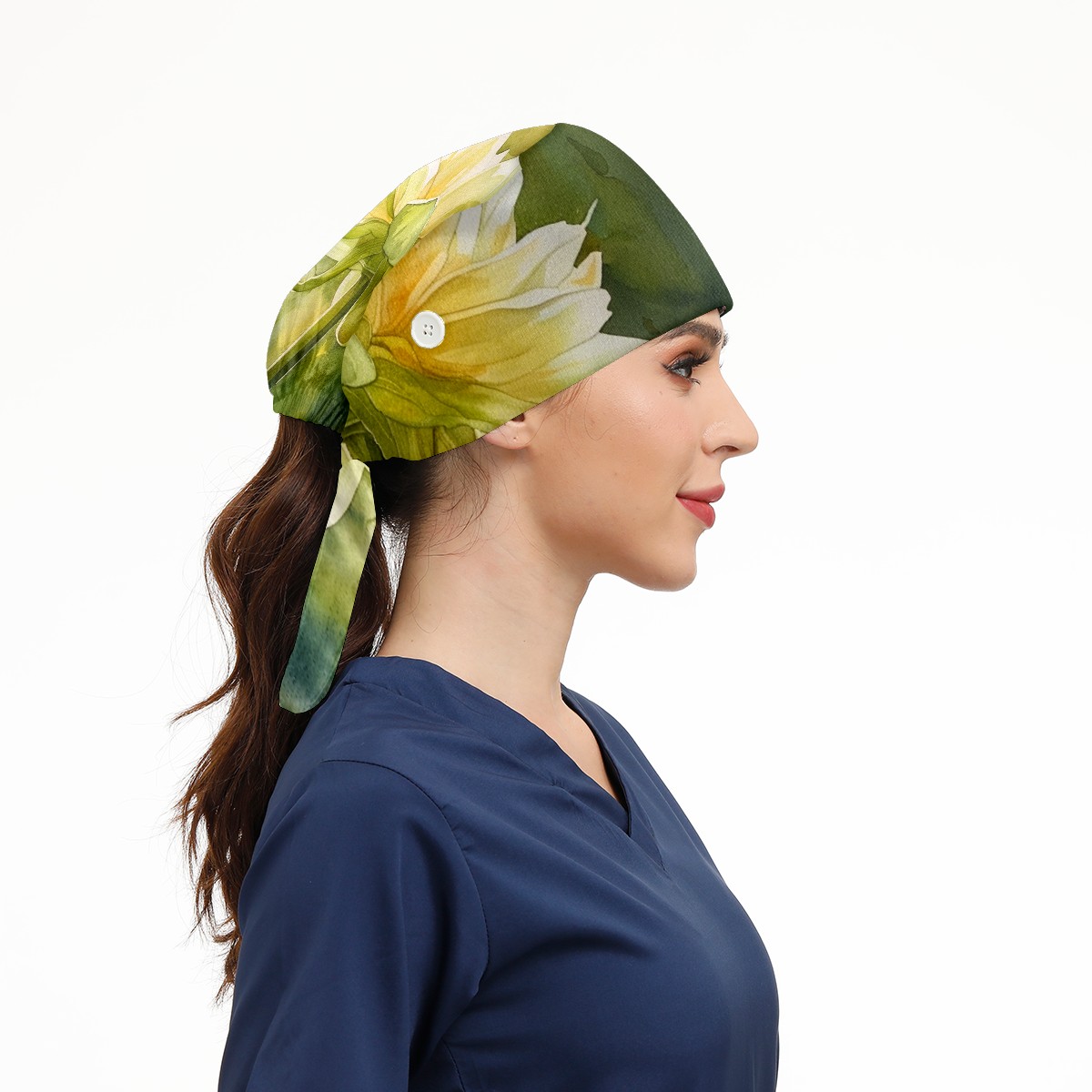 Working Caps with Button & Sweatband Satin Lined Cotton Adjustable Nurse Hats Elastic Band Scrub Cap Surgeon Hat Flower (14)