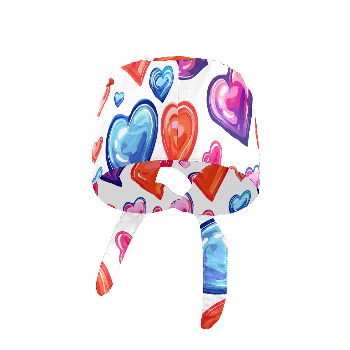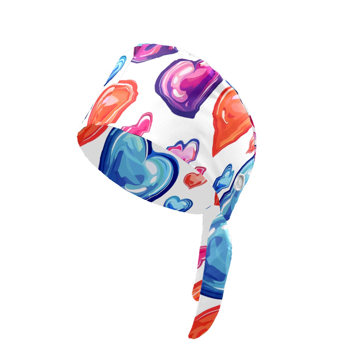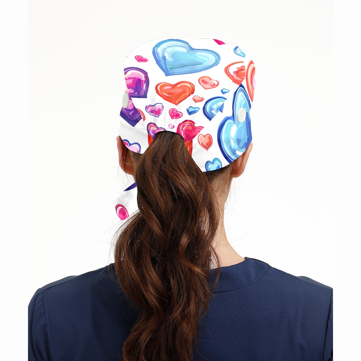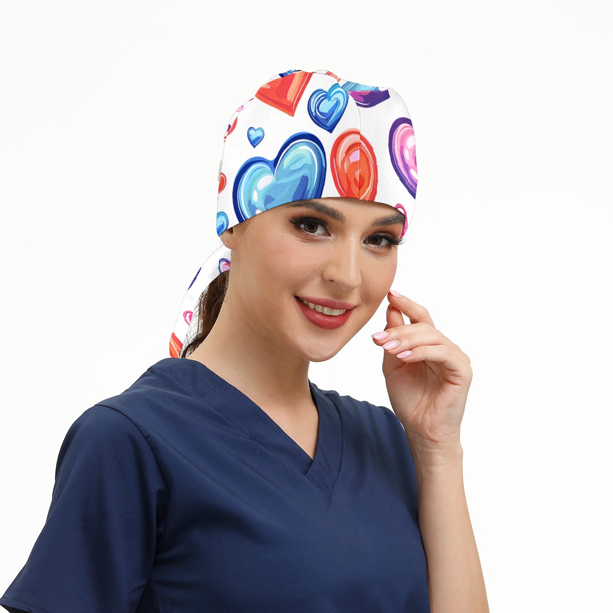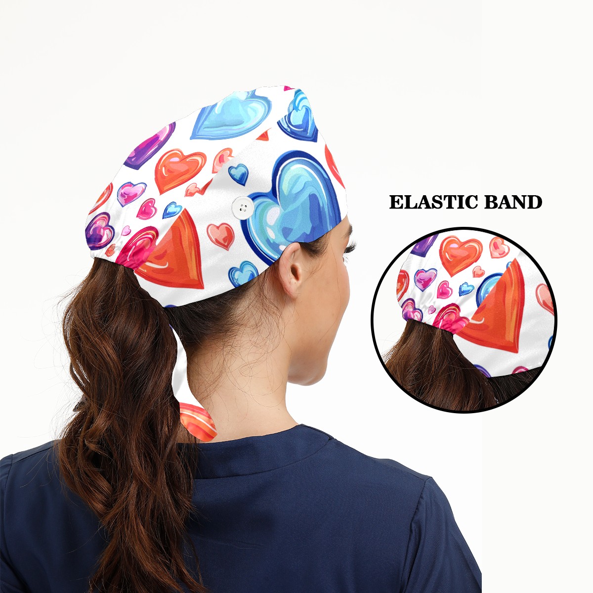 Working Caps with Button & Sweatband Satin Lined Cotton Adjustable Nurse Hats Elastic Band Scrub Cap Surgeon Hat Heart (21)