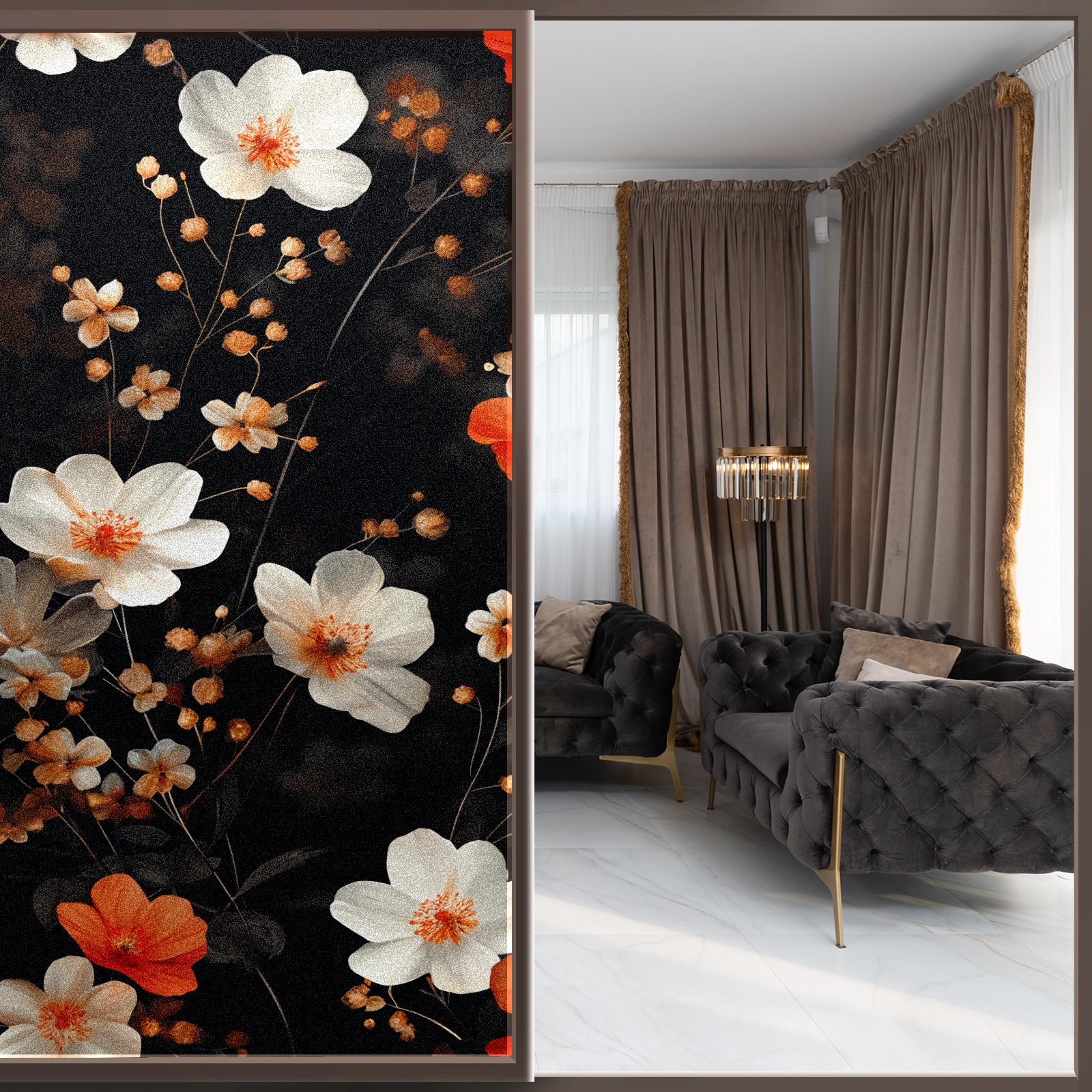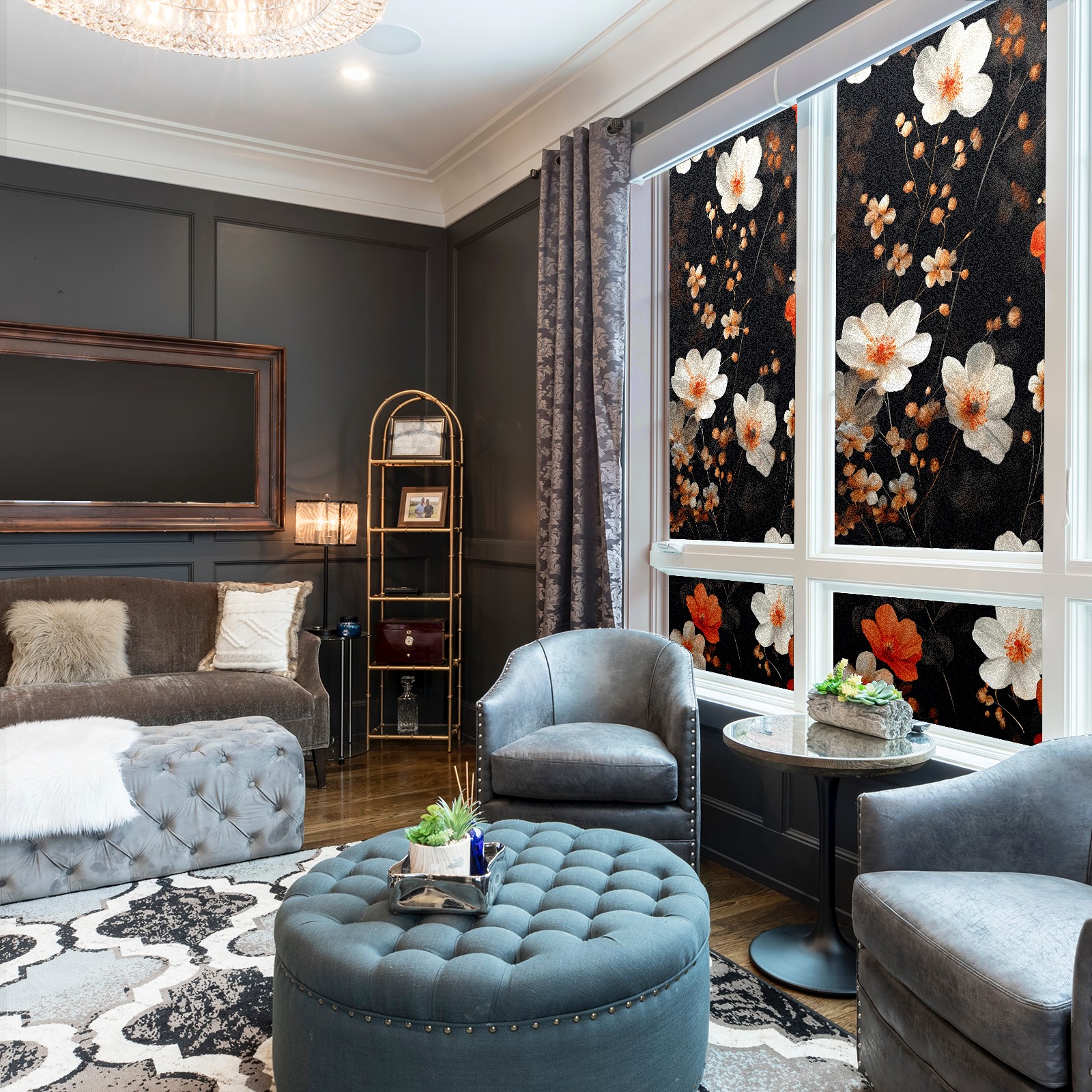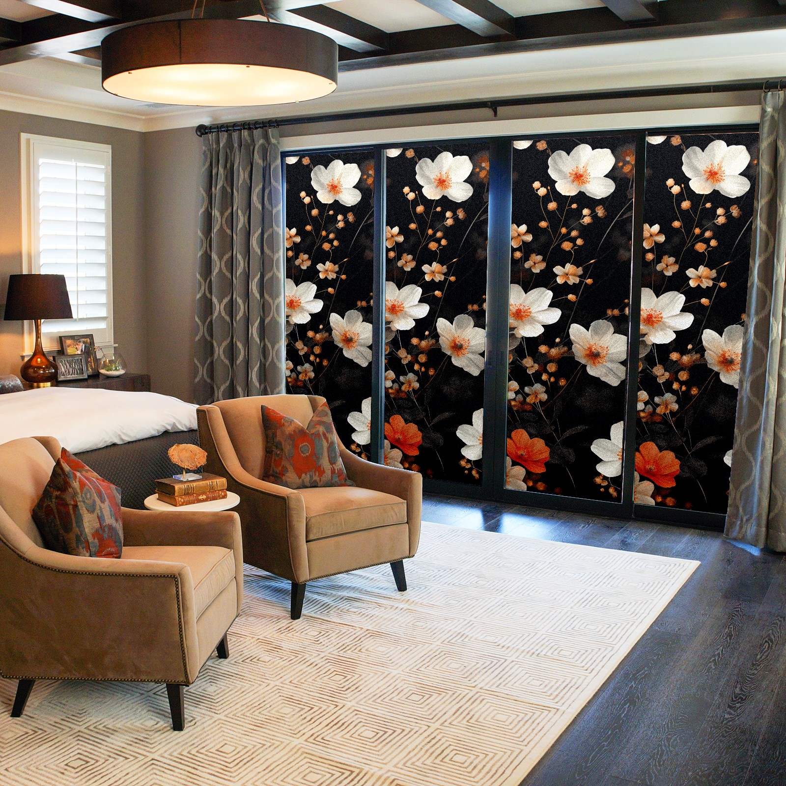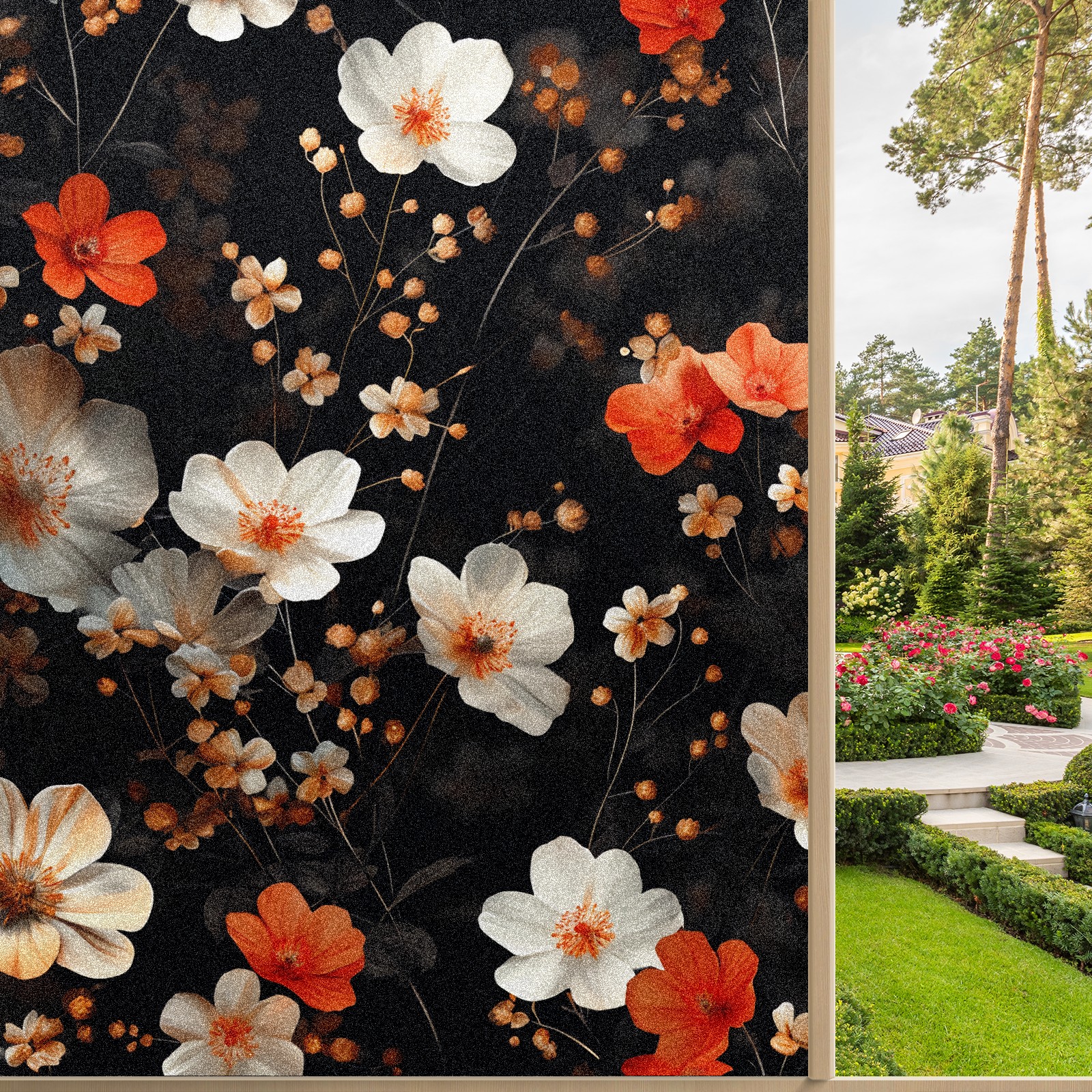 Static Cling Decorative Window Film Frosted Privacy Film Window Clings for Glass Windows No Glue Window Sticker for Bathroom Bedroom Office Myriad Flowers E