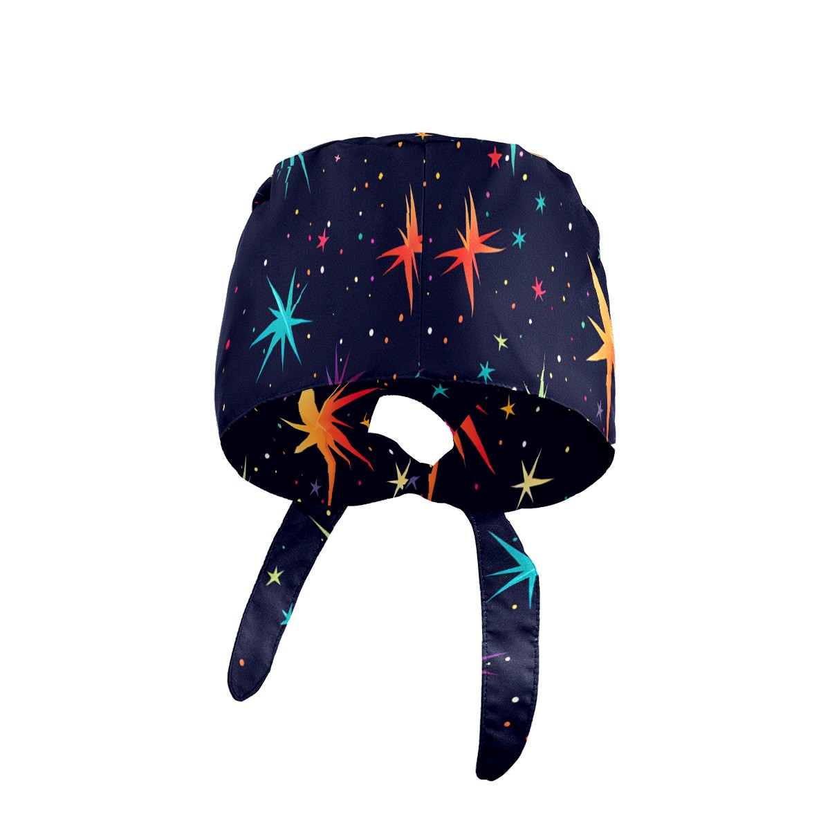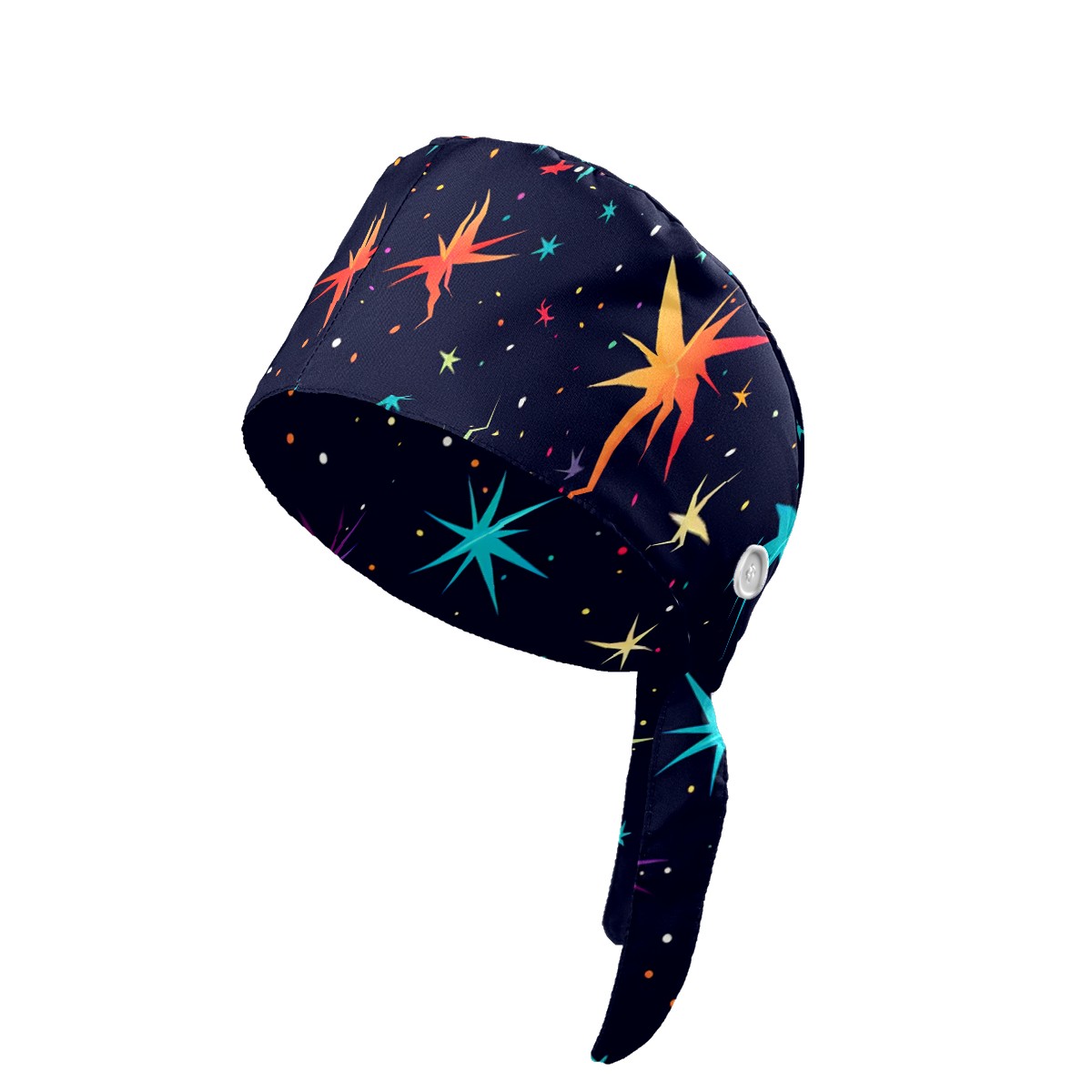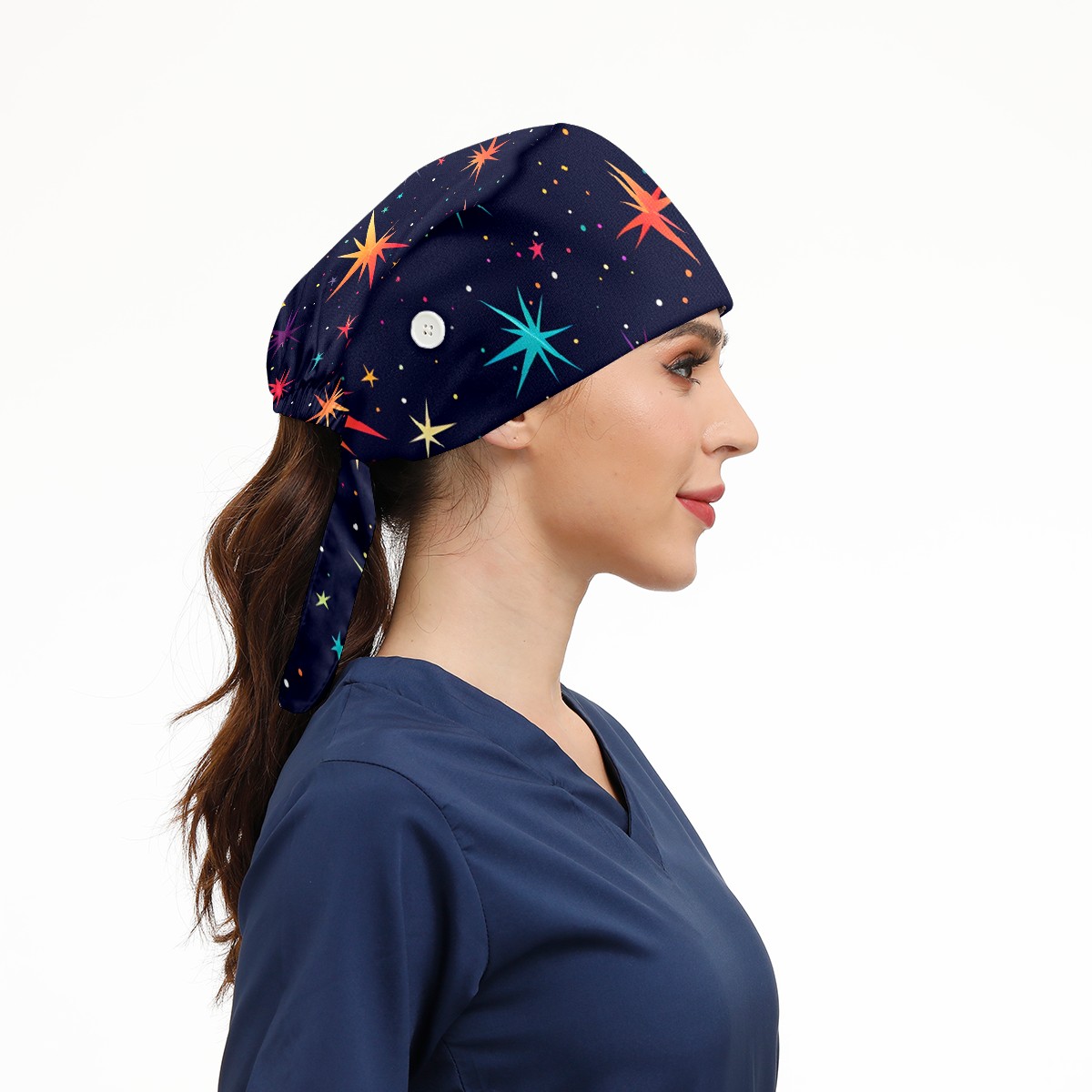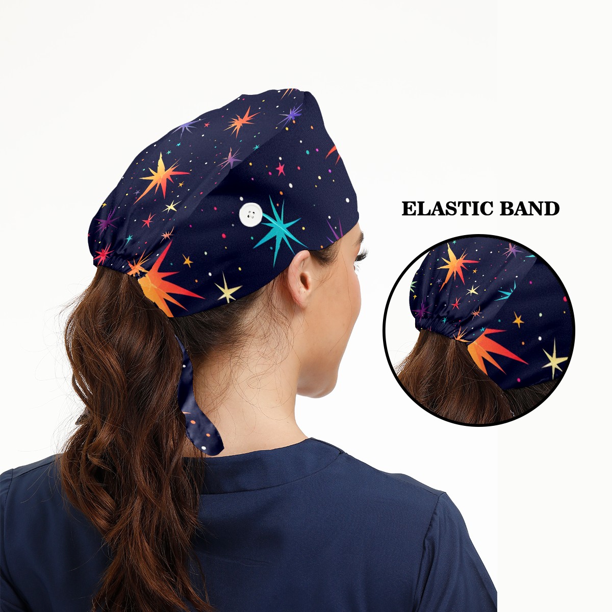 Working Caps with Button & Sweatband Satin Lined Cotton Adjustable Nurse Hats Elastic Band Scrub Cap Surgeon Hat Starry Sky Universe (127)