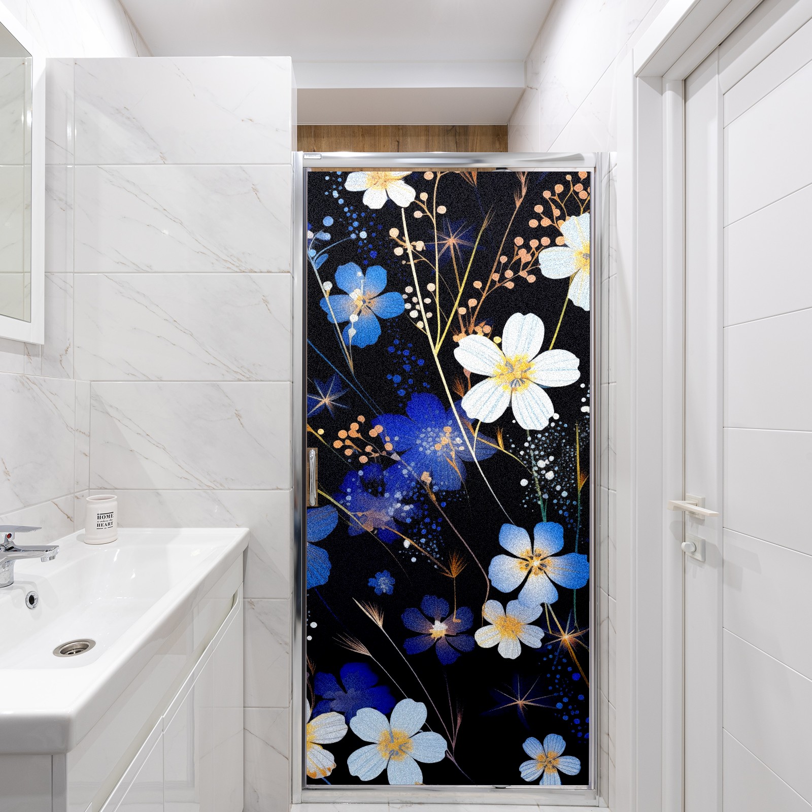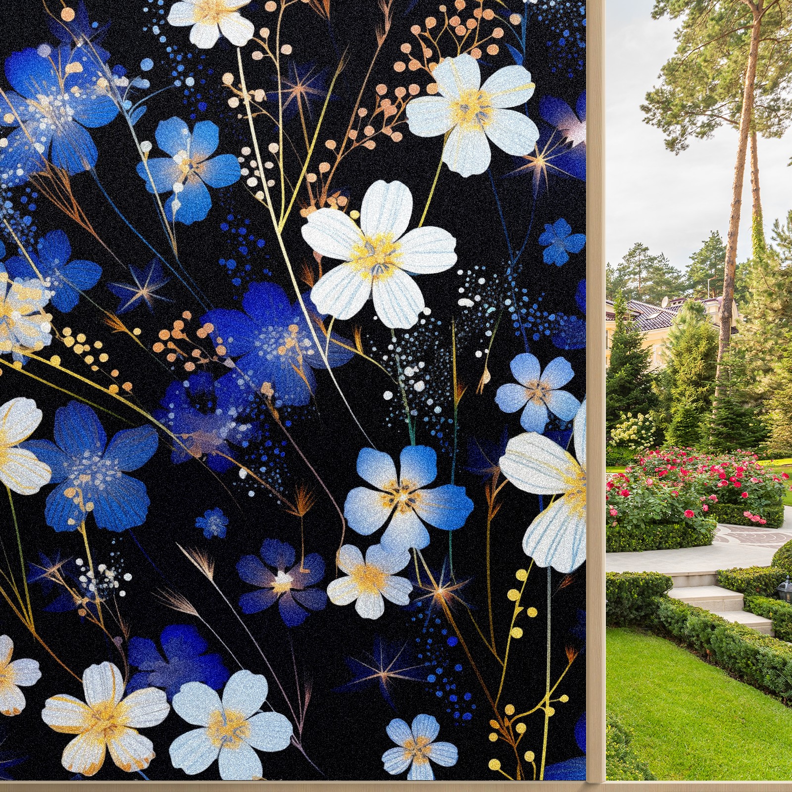 Static Cling Decorative Window Film Frosted Privacy Film Window Clings for Glass Windows No Glue Window Sticker for Bathroom Bedroom Office Flowers
