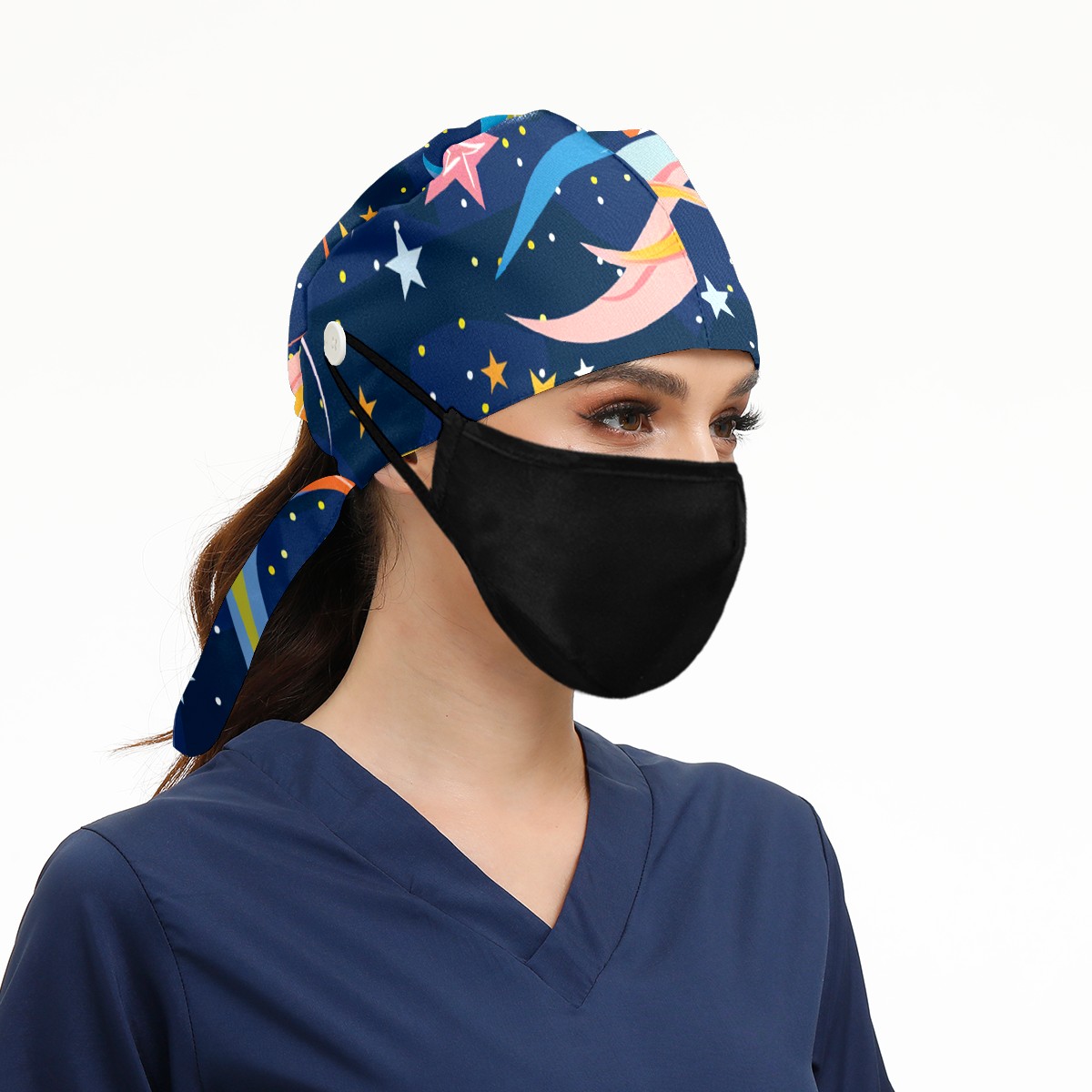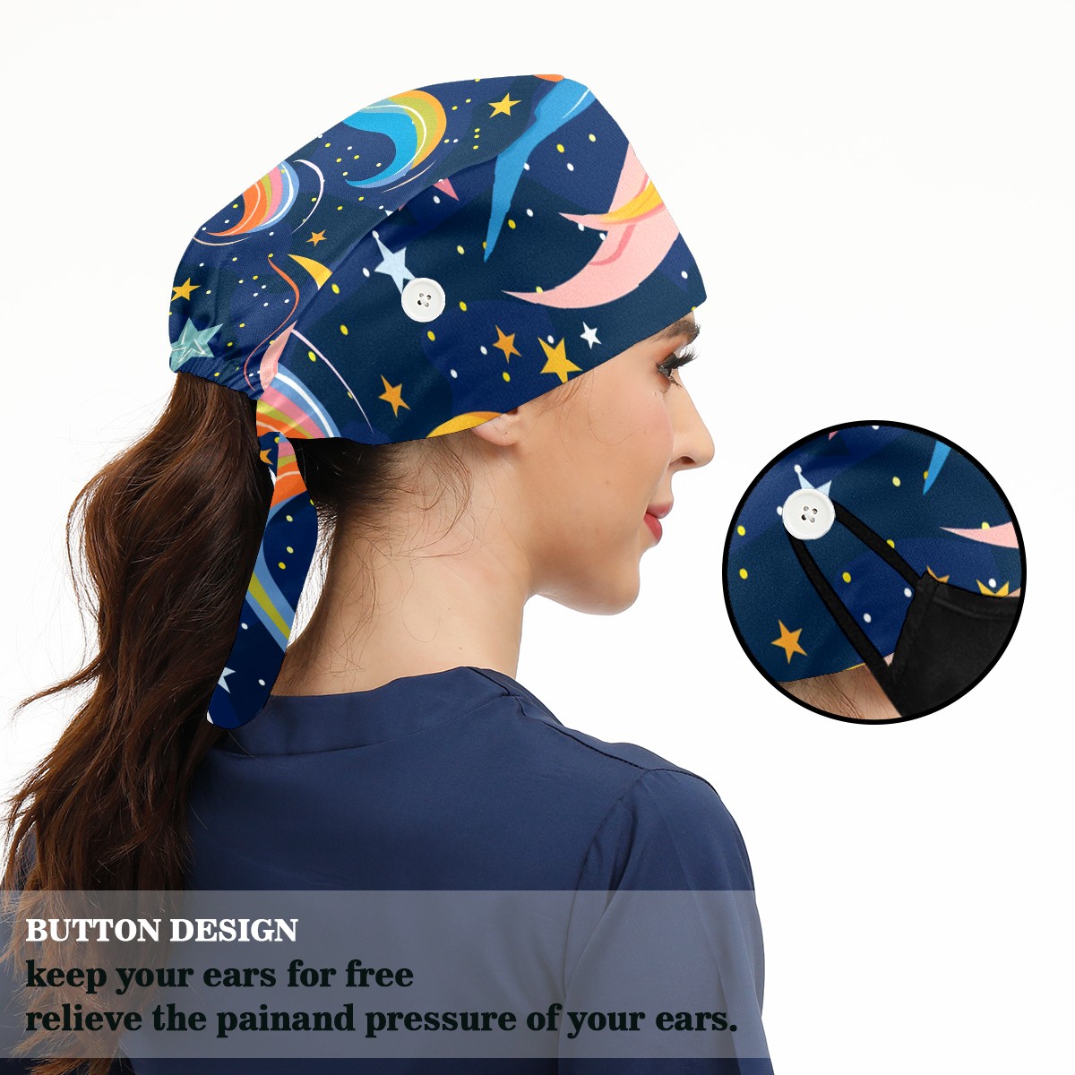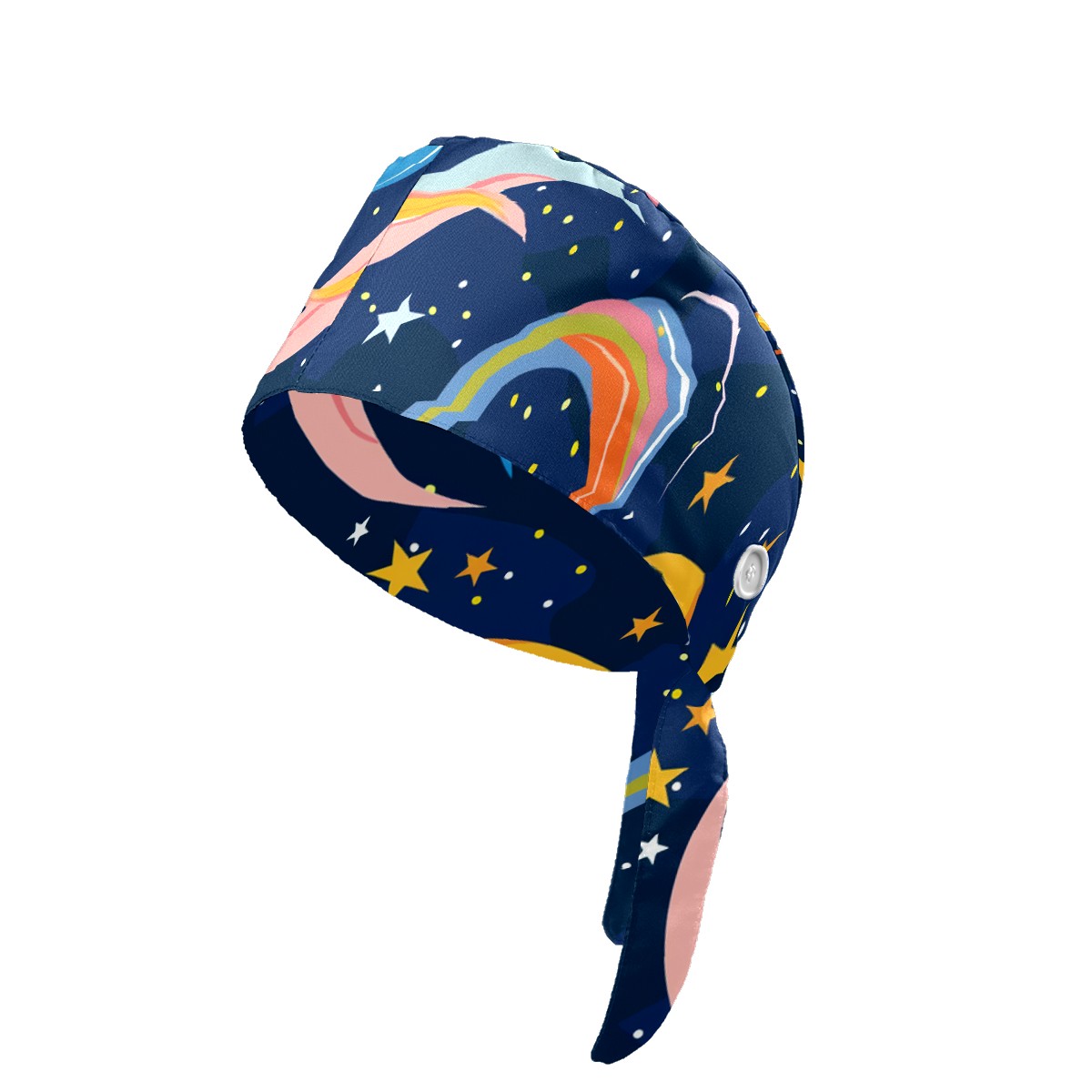 Working Caps with Button & Sweatband Satin Lined Cotton Adjustable Nurse Hats Elastic Band Scrub Cap Surgeon Hat Starry Sky Universe (135)