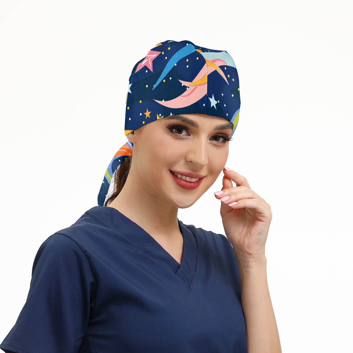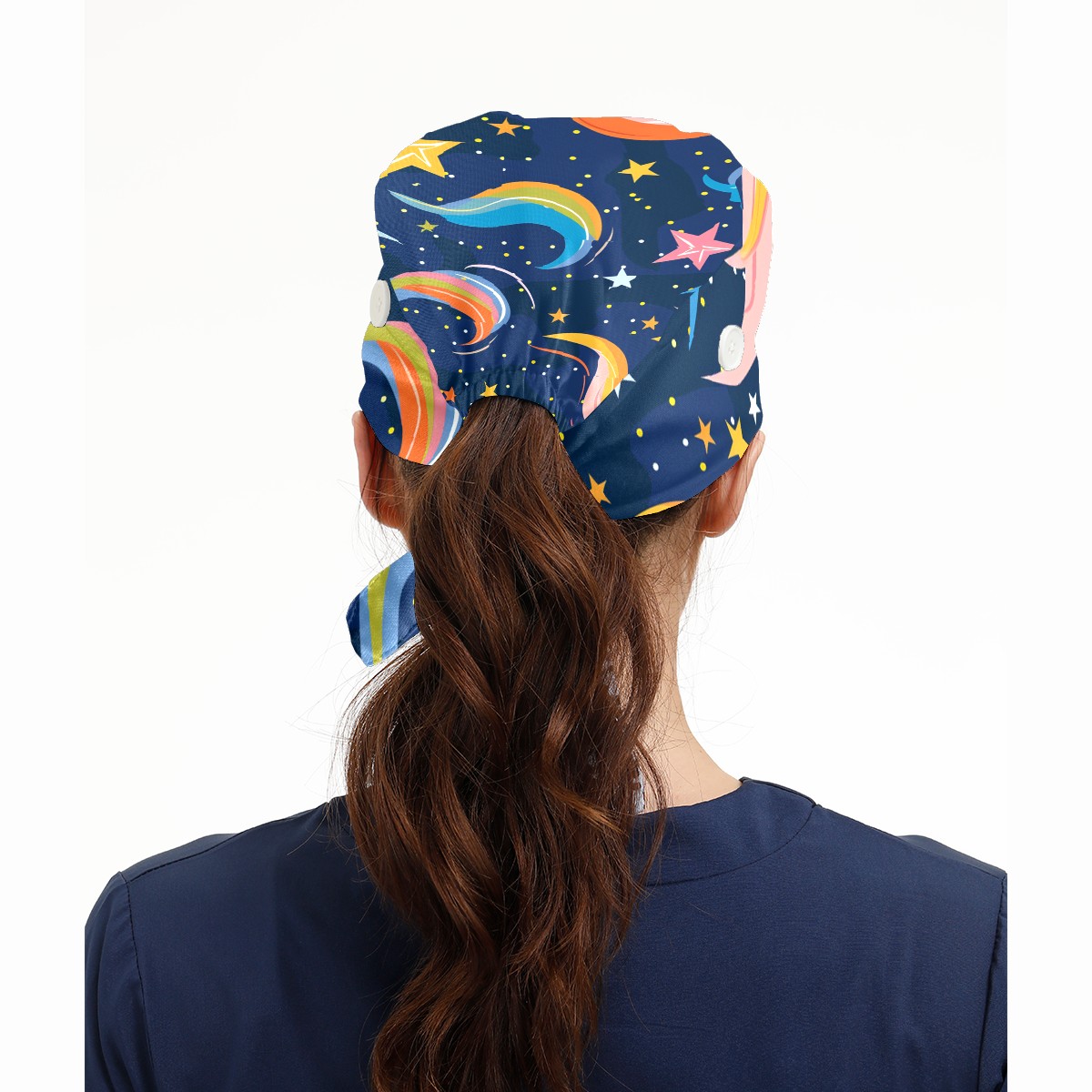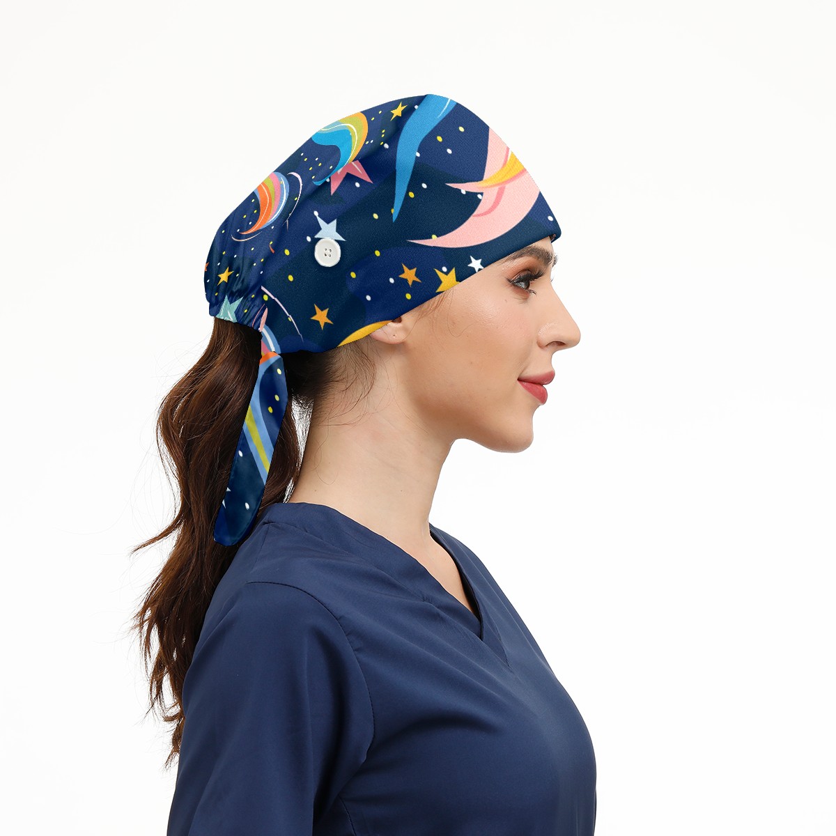 Working Caps with Button & Sweatband Satin Lined Cotton Adjustable Nurse Hats Elastic Band Scrub Cap Surgeon Hat Starry Sky Universe (135)