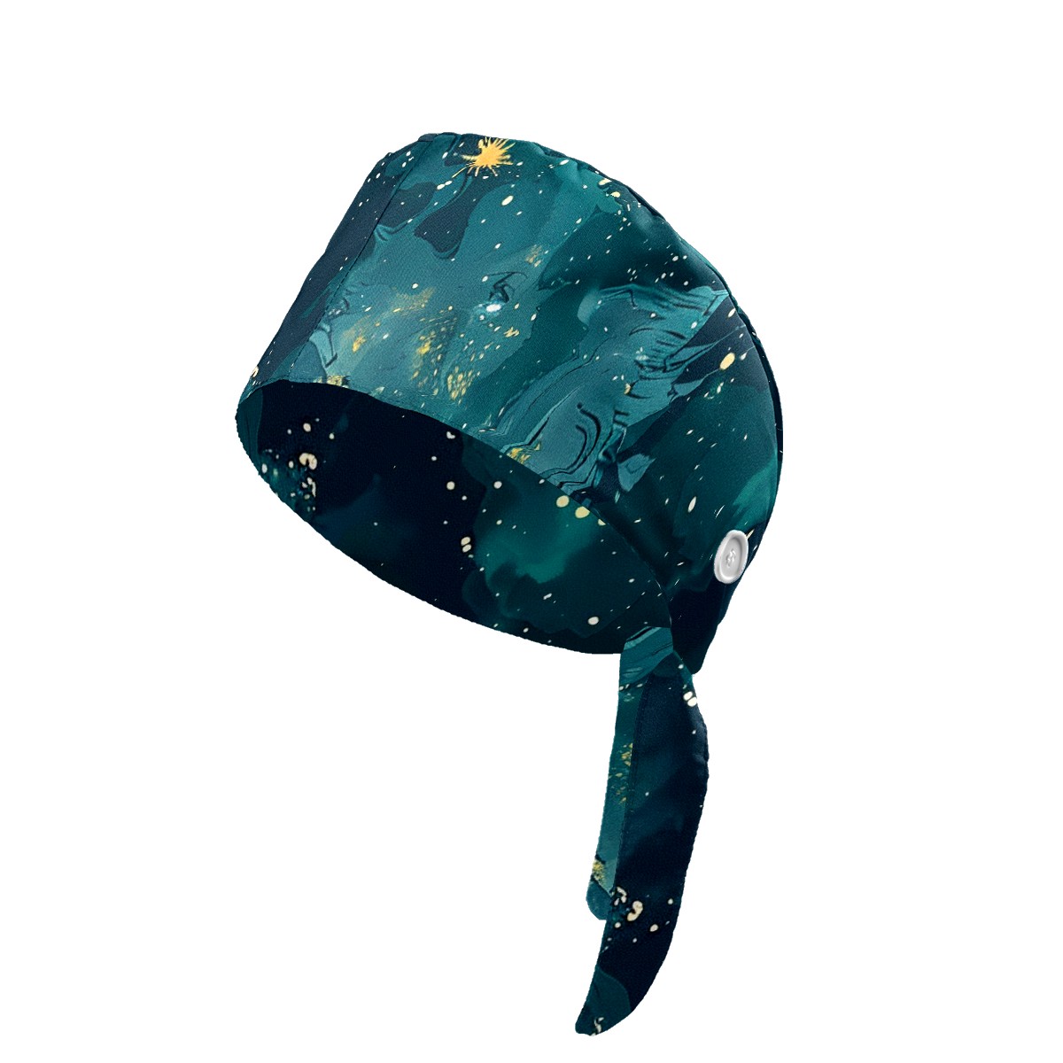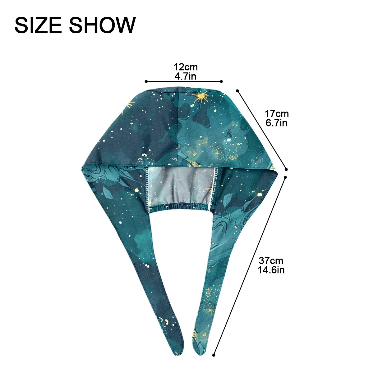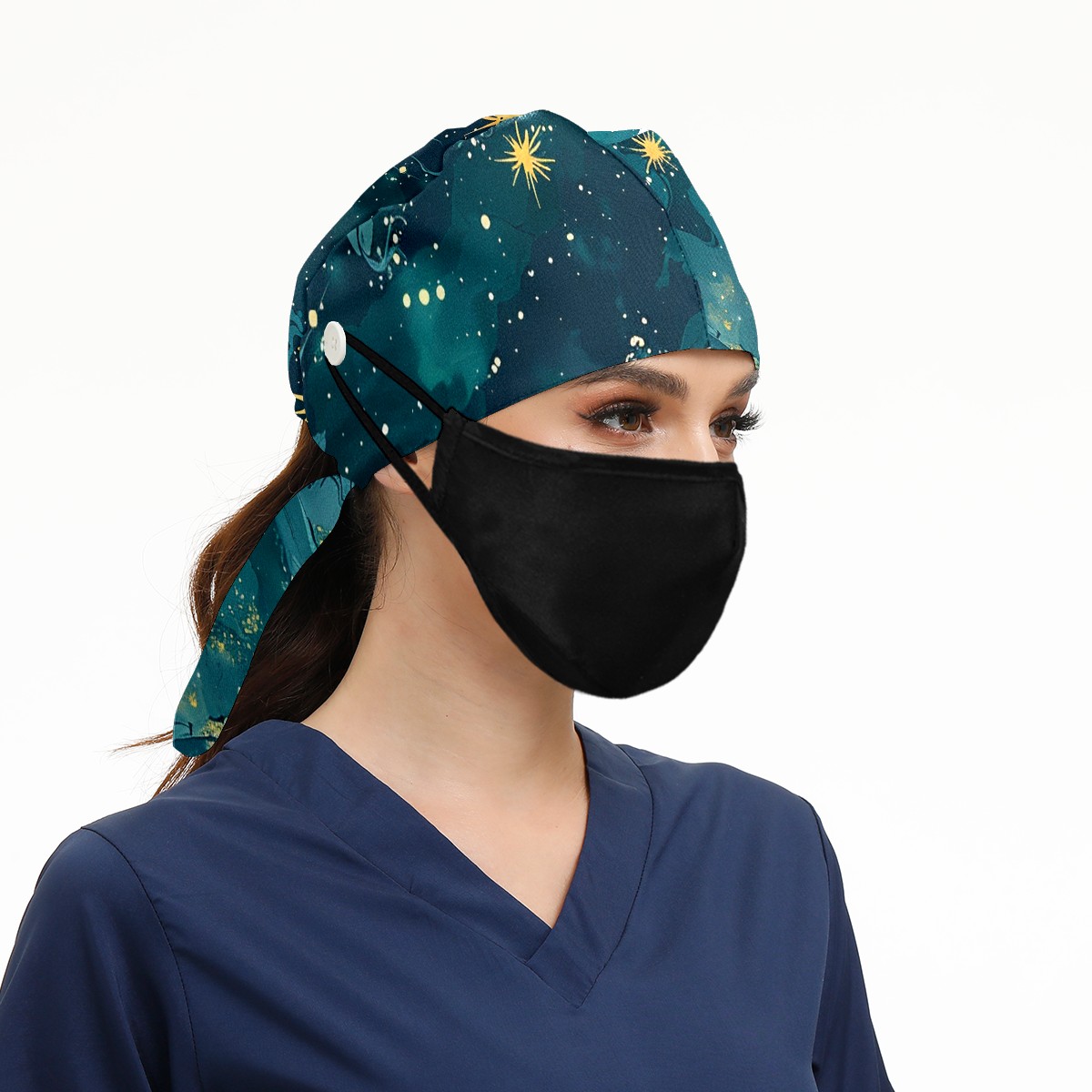 Working Caps with Button & Sweatband Satin Lined Cotton Adjustable Nurse Hats Elastic Band Scrub Cap Surgeon Hat Starry Sky Universe (71)