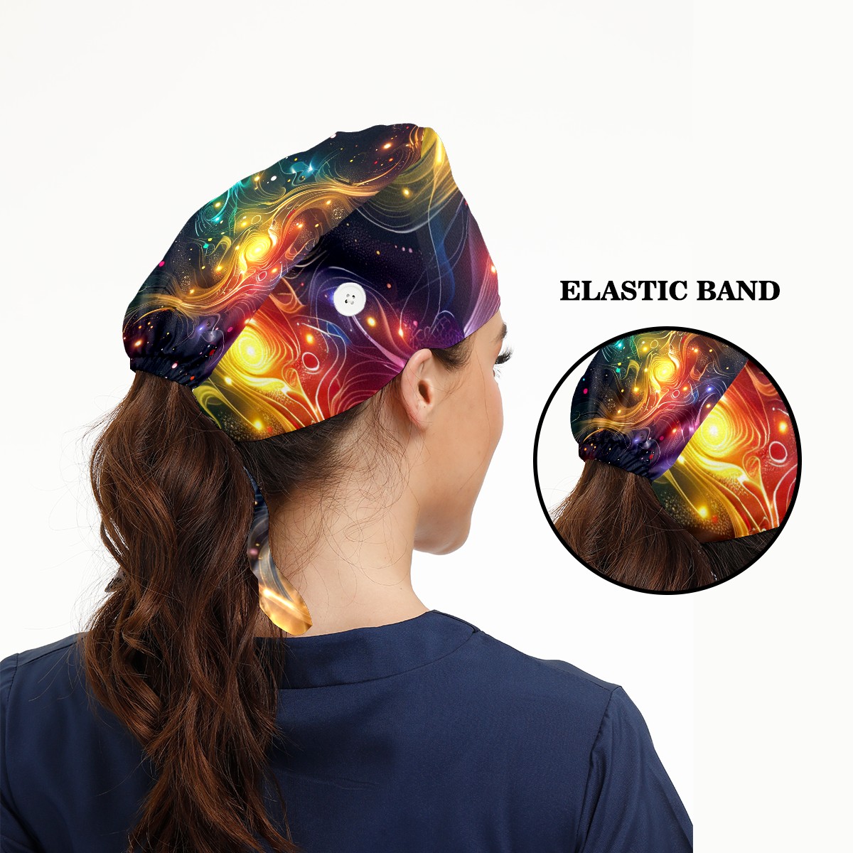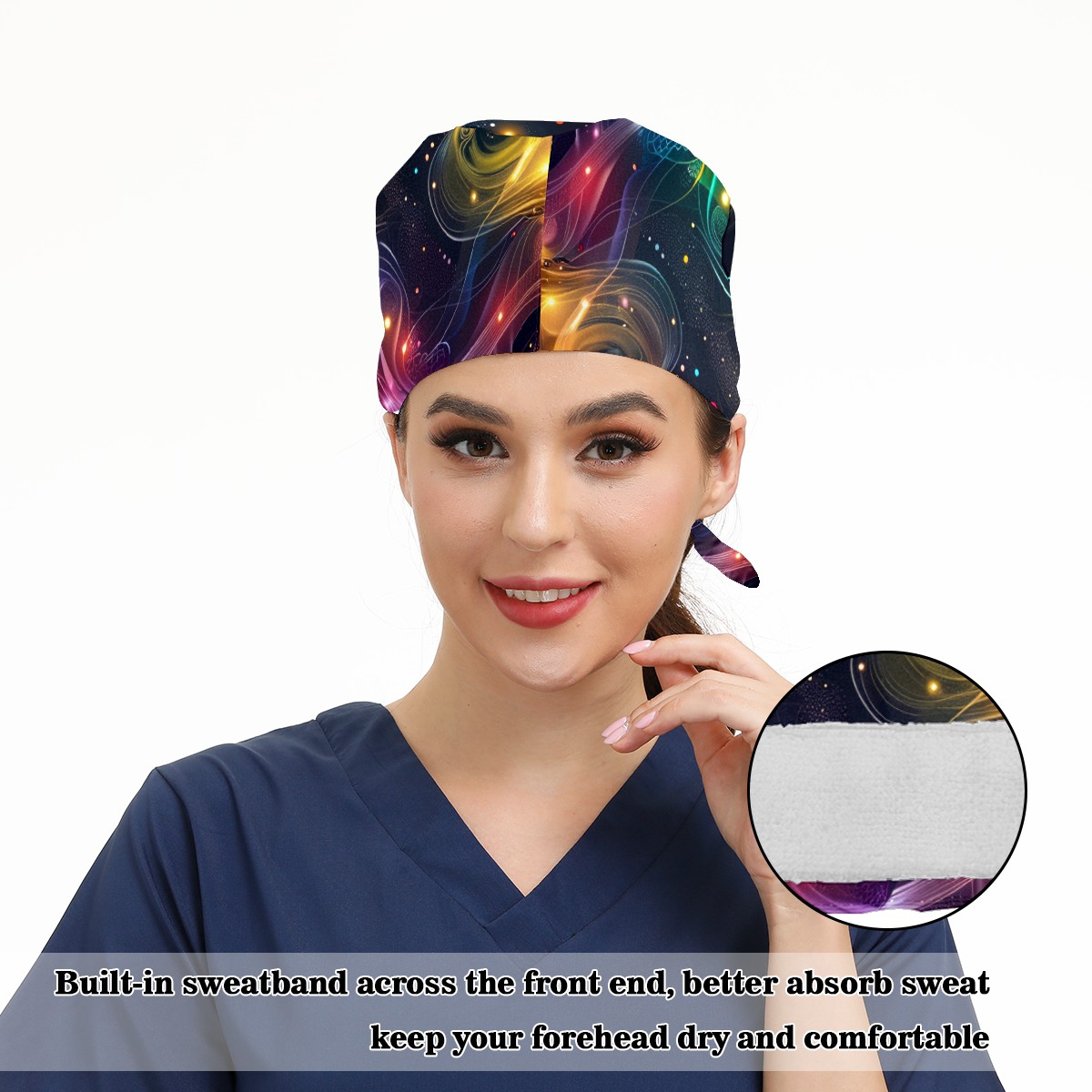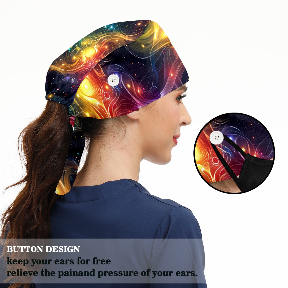 Working Caps with Button & Sweatband Satin Lined Cotton Adjustable Nurse Hats Elastic Band Scrub Cap Surgeon Hat Starry Sky Universe (69)