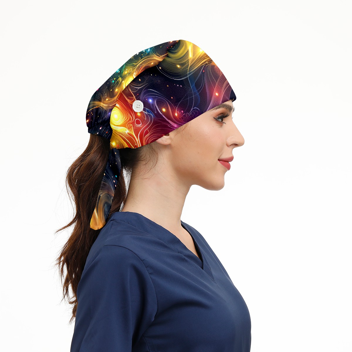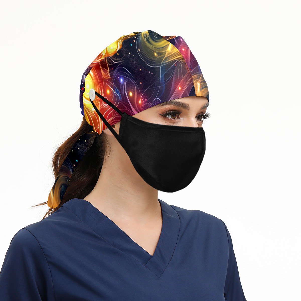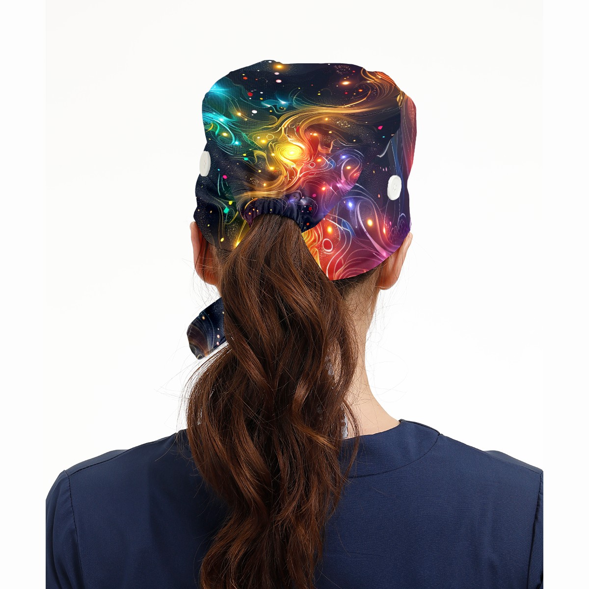 Working Caps with Button & Sweatband Satin Lined Cotton Adjustable Nurse Hats Elastic Band Scrub Cap Surgeon Hat Starry Sky Universe (69)