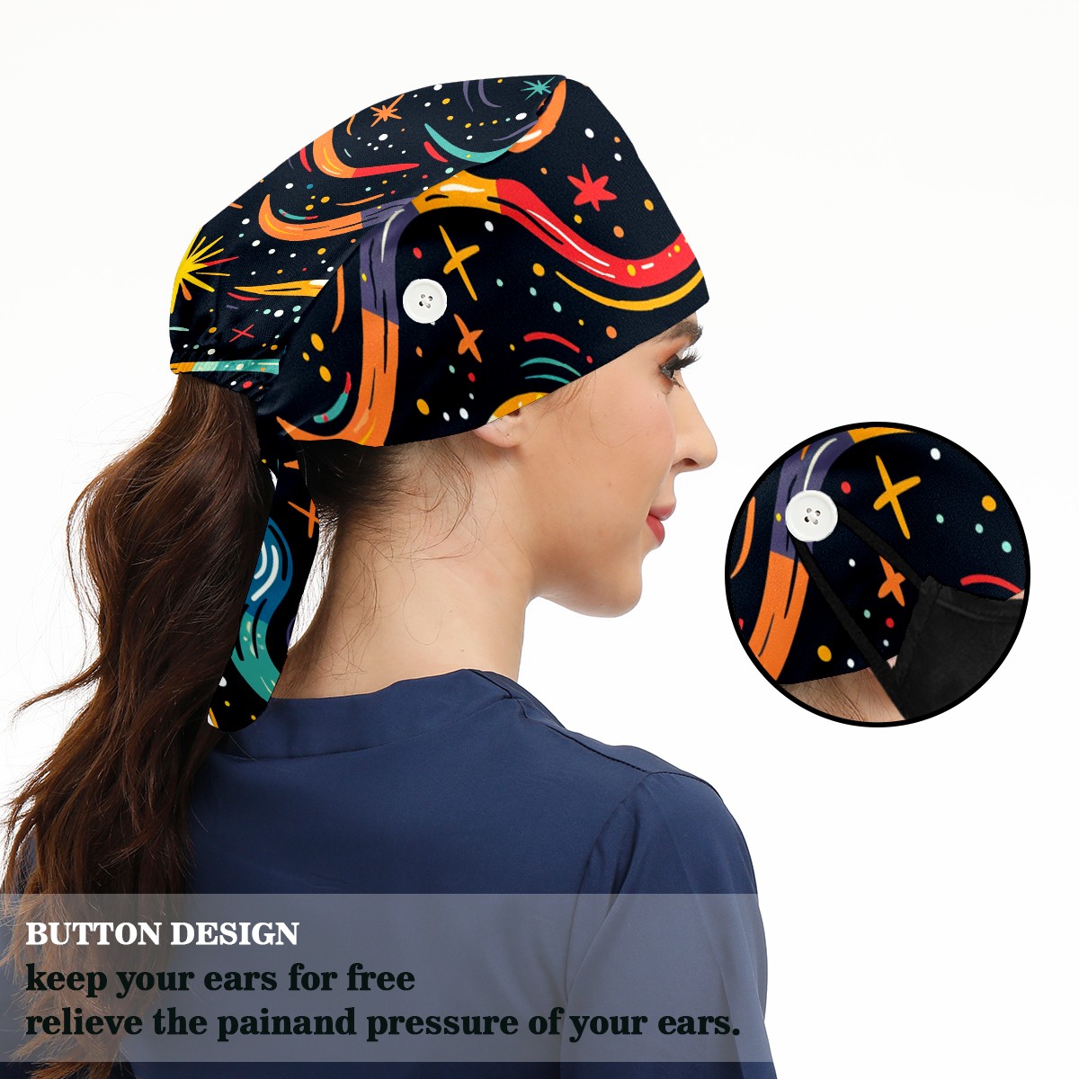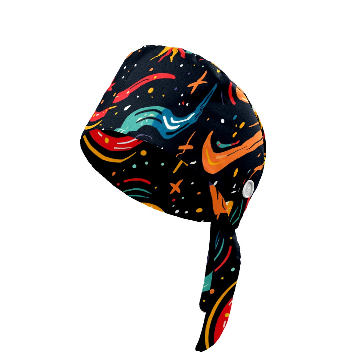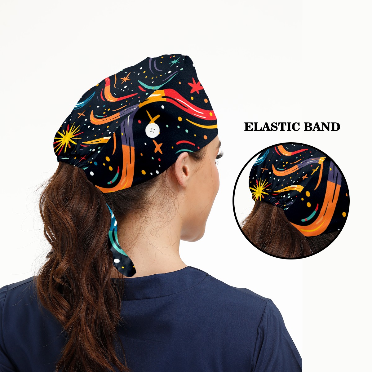 Working Caps with Button & Sweatband Satin Lined Cotton Adjustable Nurse Hats Elastic Band Scrub Cap Surgeon Hat Starry Sky Universe (88)