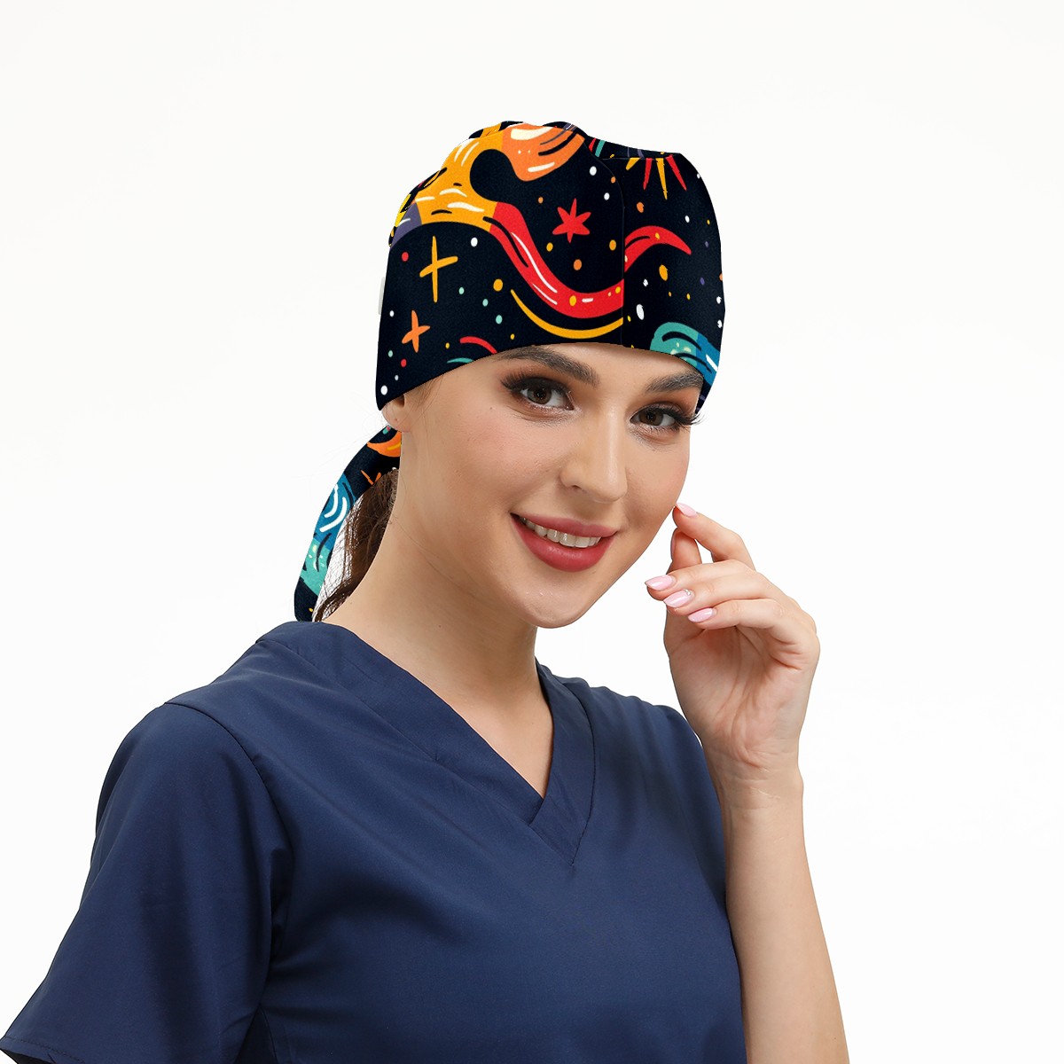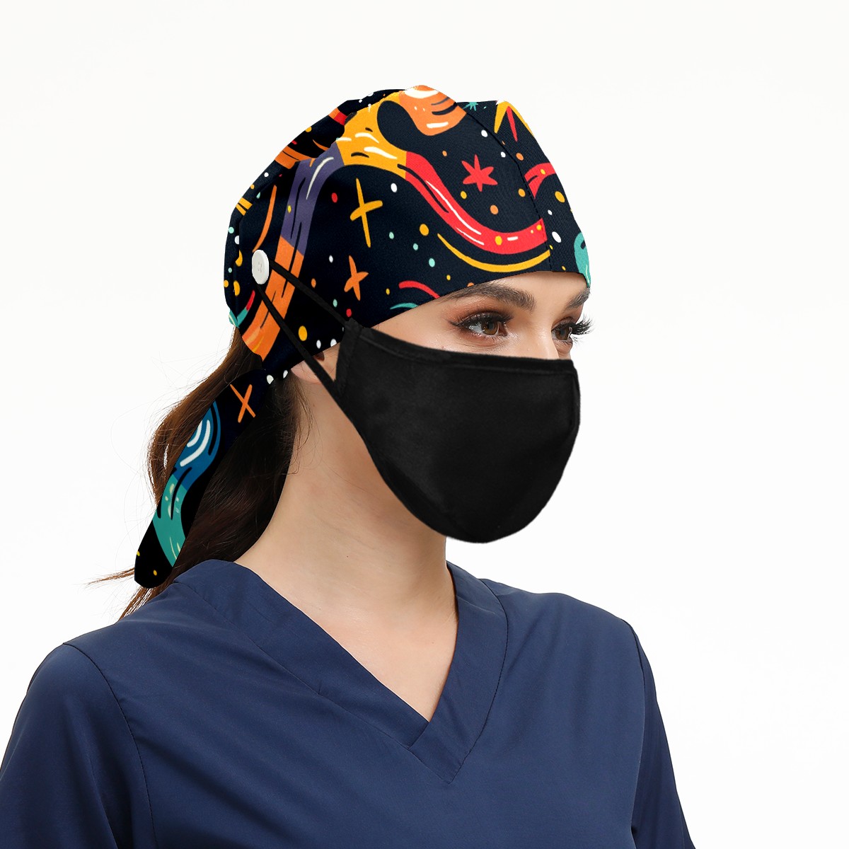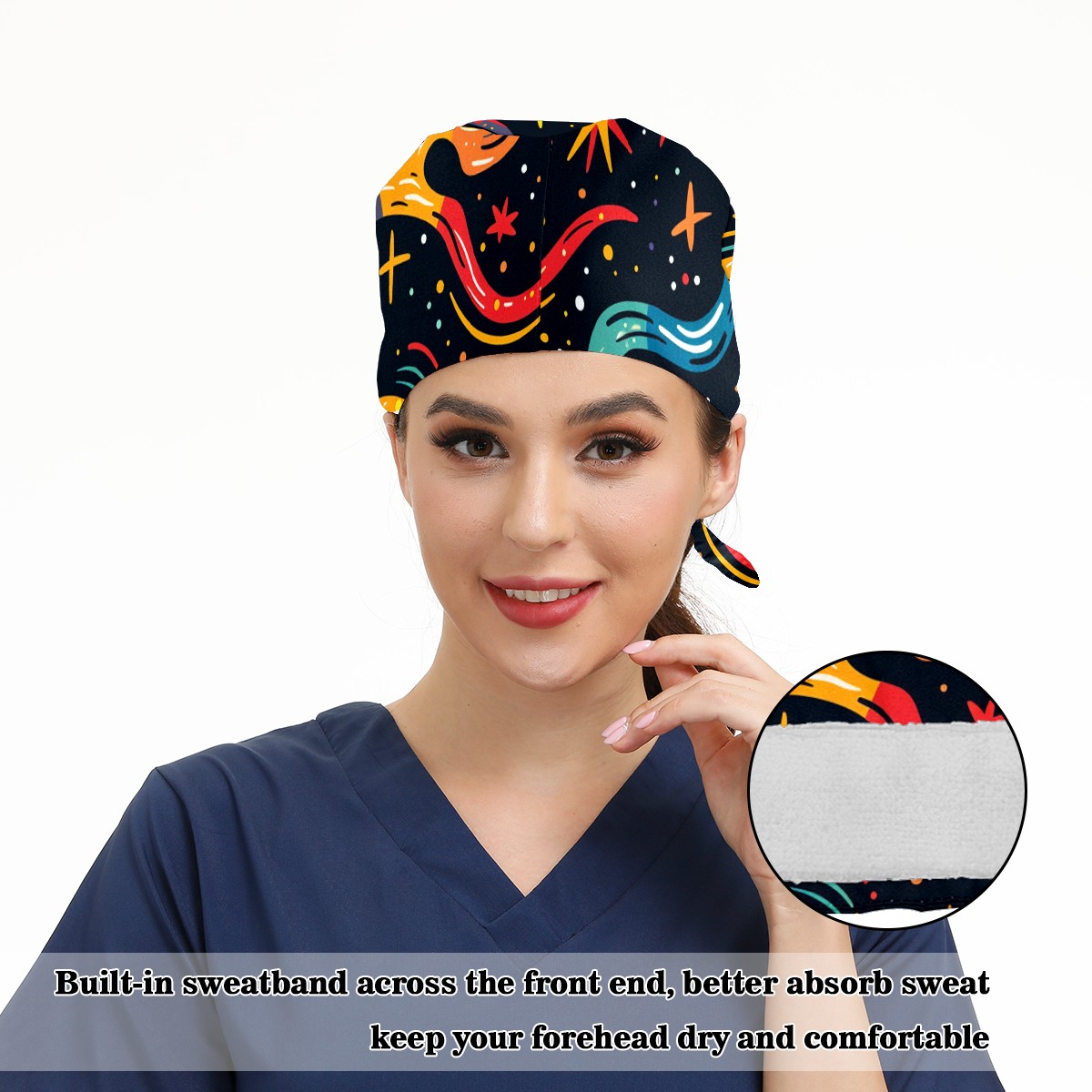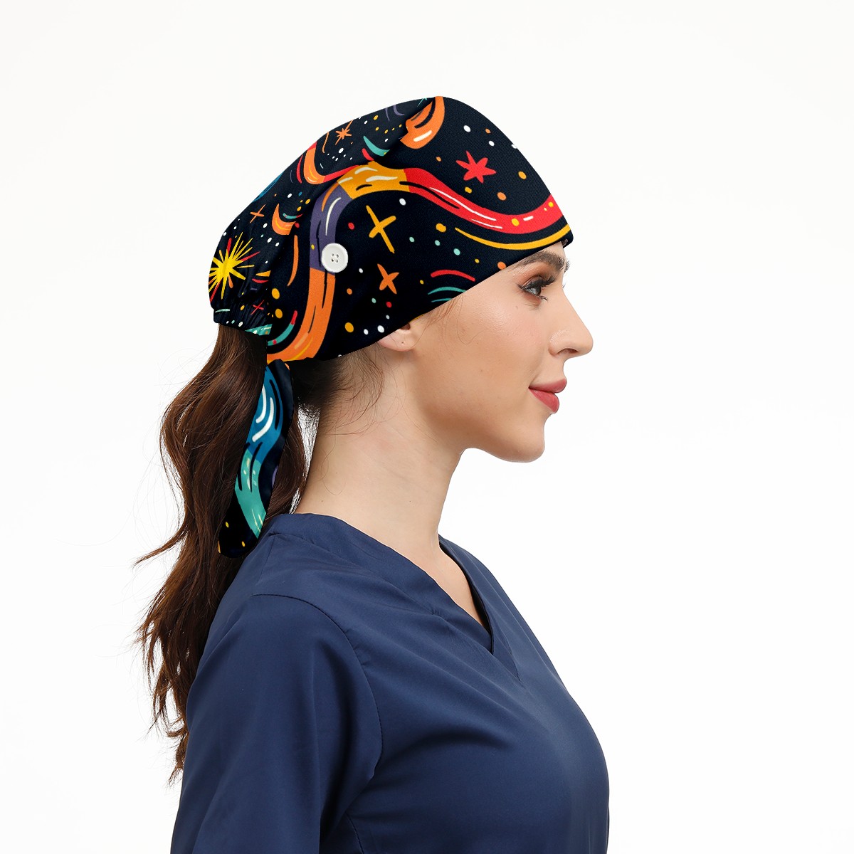 Working Caps with Button & Sweatband Satin Lined Cotton Adjustable Nurse Hats Elastic Band Scrub Cap Surgeon Hat Starry Sky Universe (88)