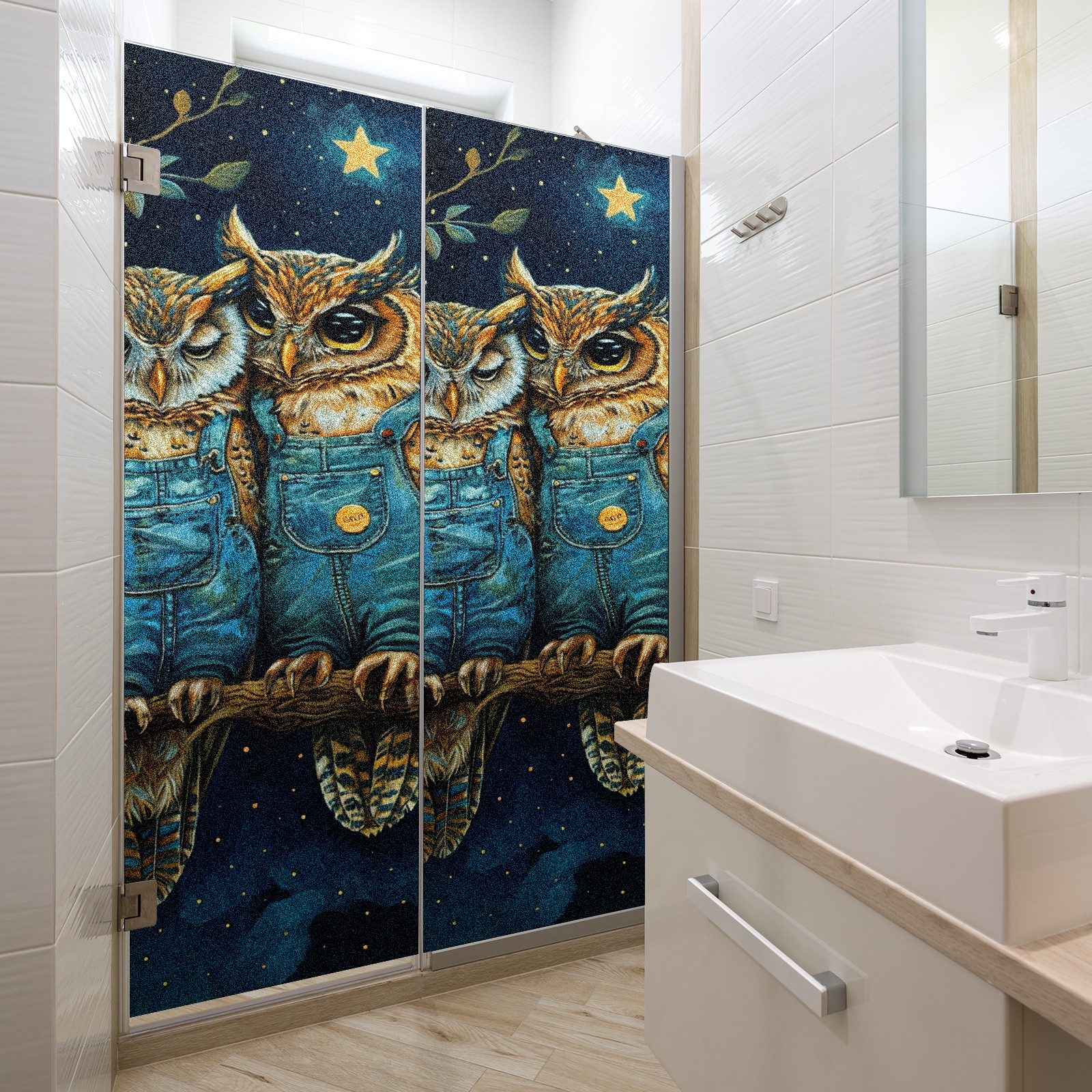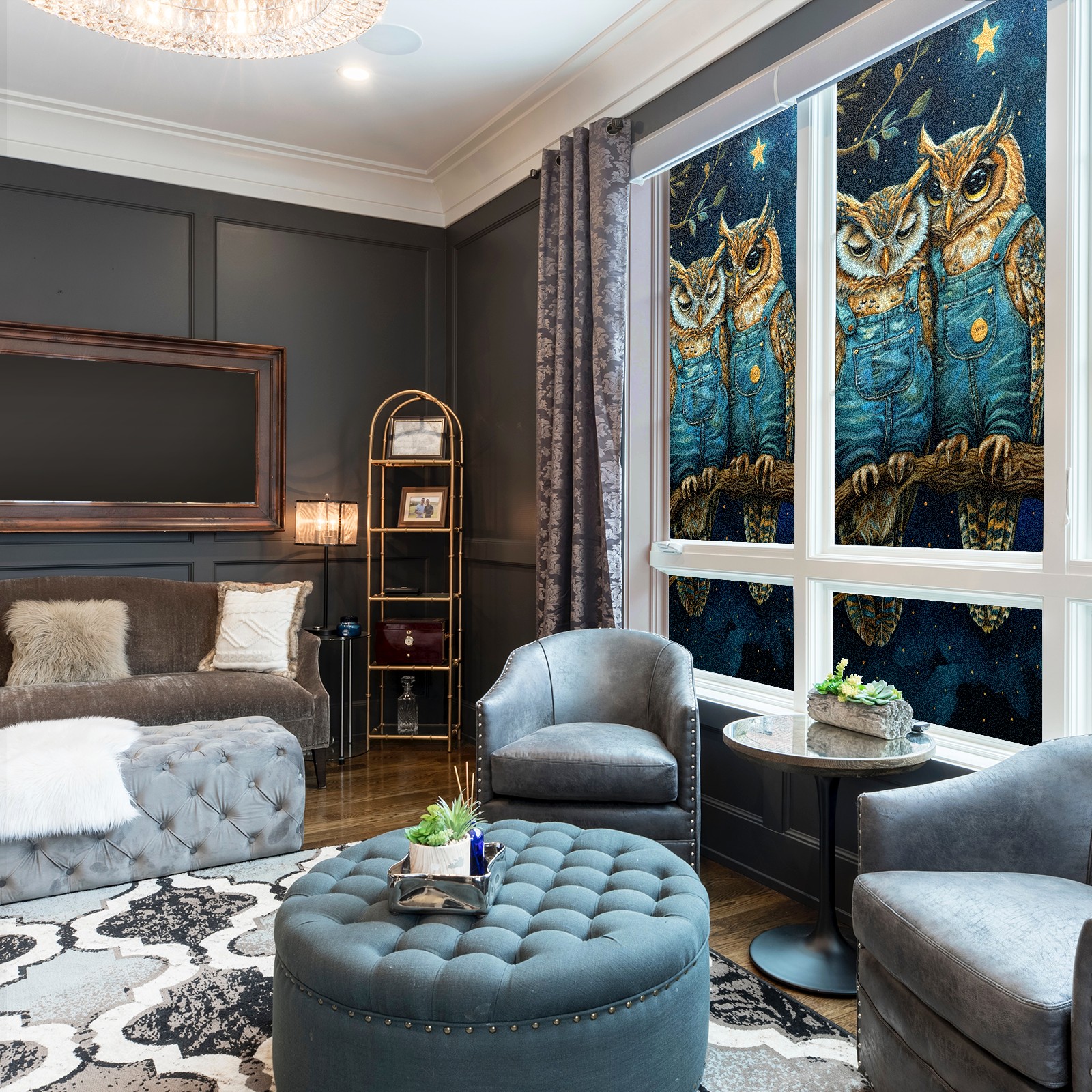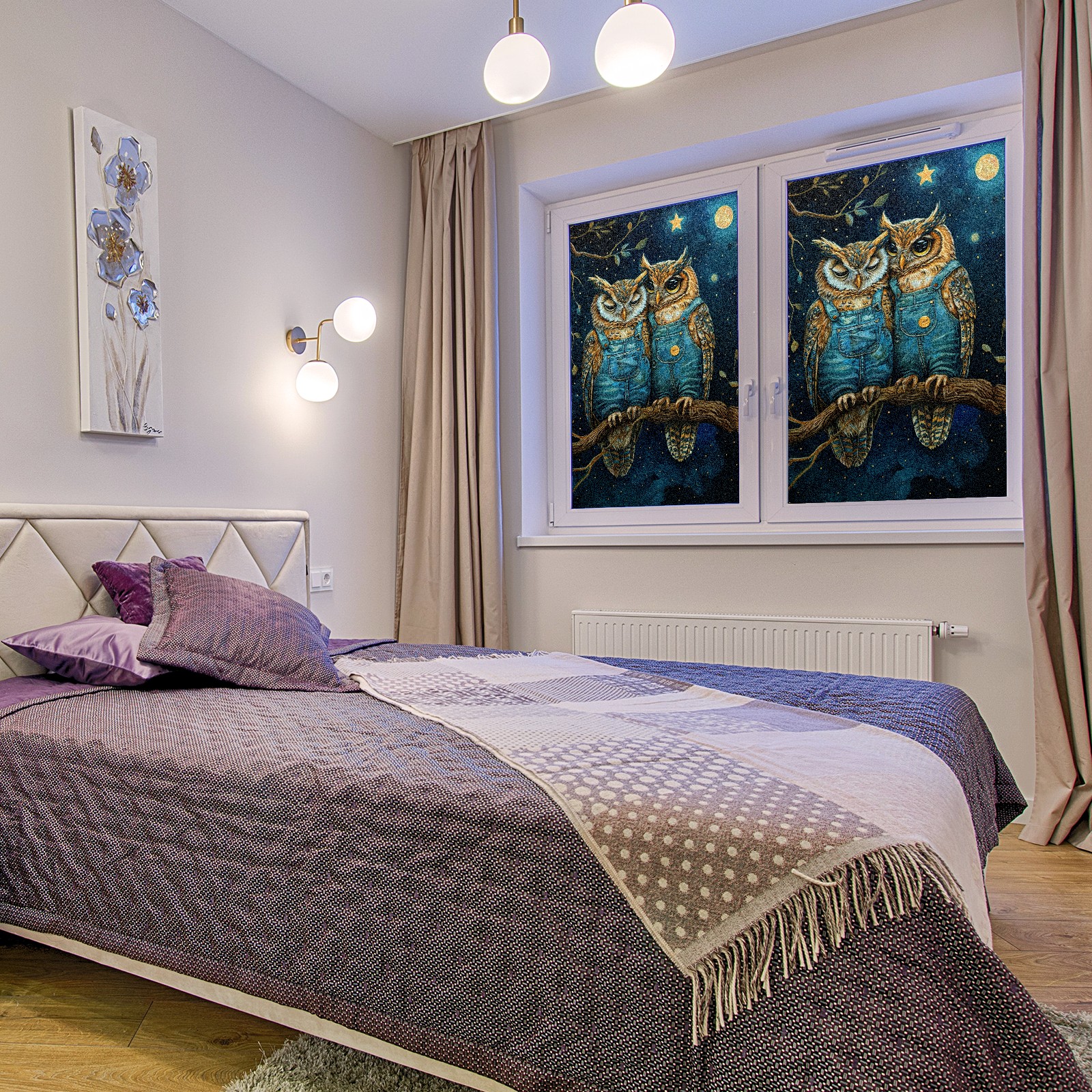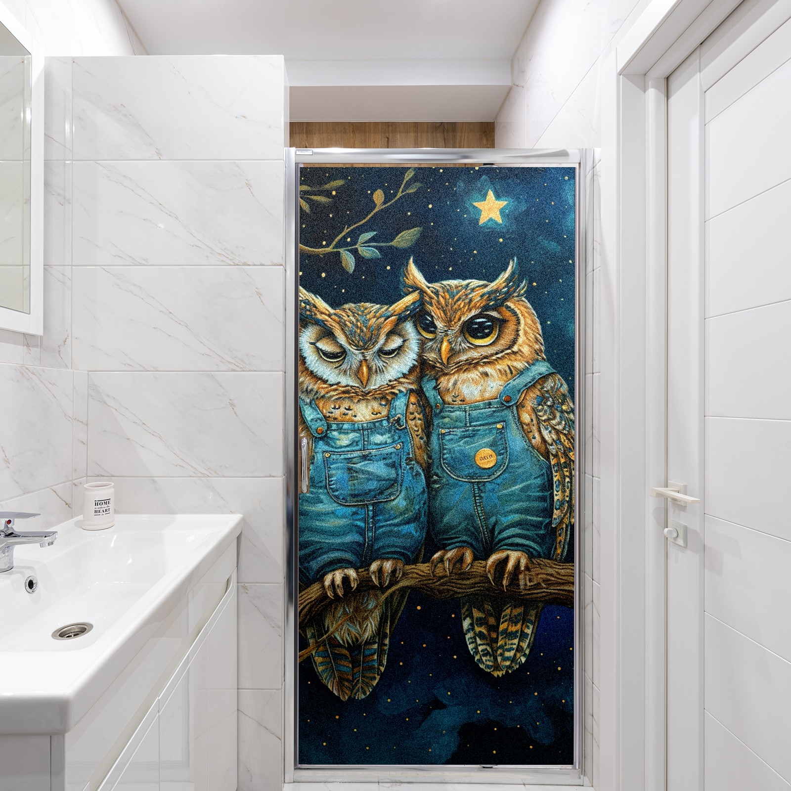 Static Cling Decorative Window Film Frosted Privacy Film Window Clings for Glass Windows No Glue Window Sticker for Bathroom Bedroom Office Owl