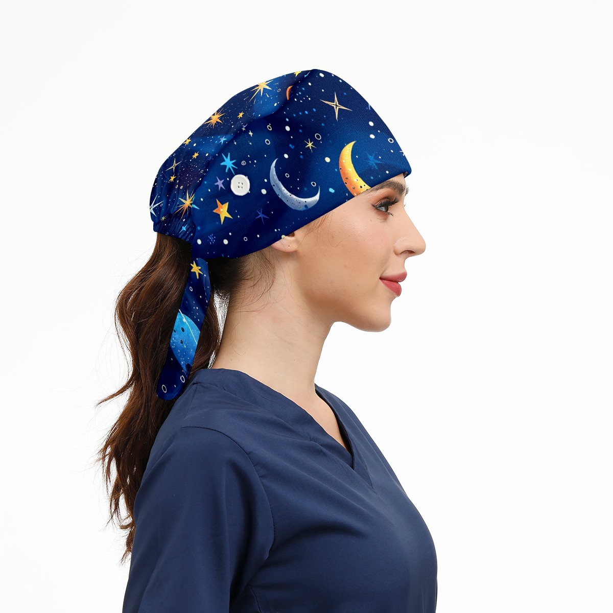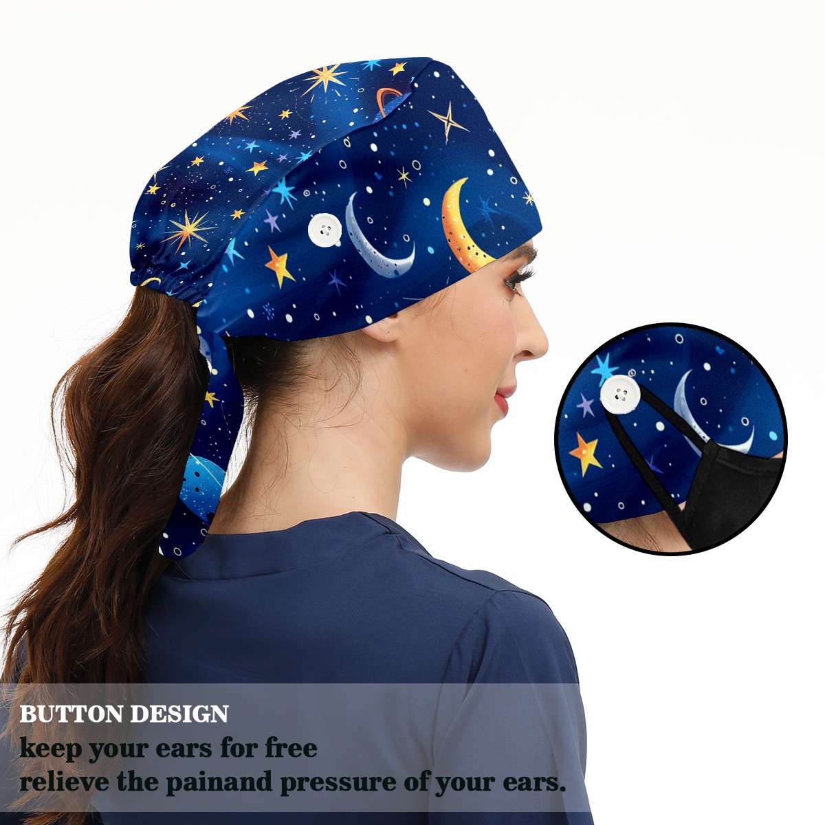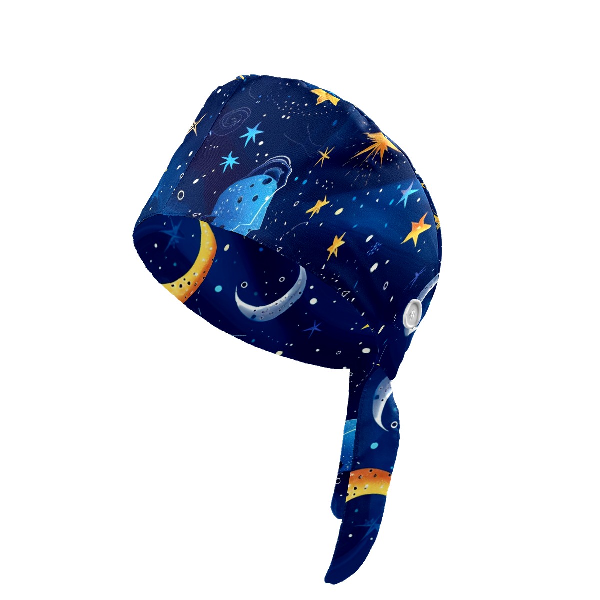 Working Caps with Button & Sweatband Satin Lined Cotton Adjustable Nurse Hats Elastic Band Scrub Cap Surgeon Hat Universe Starry Sky Rocket (50)