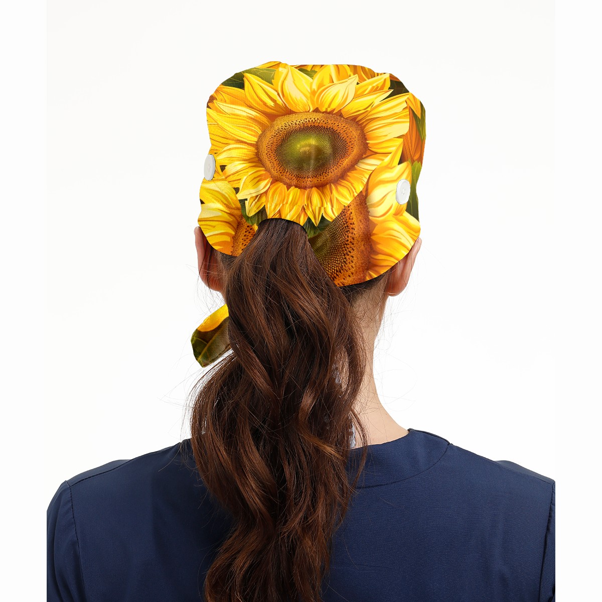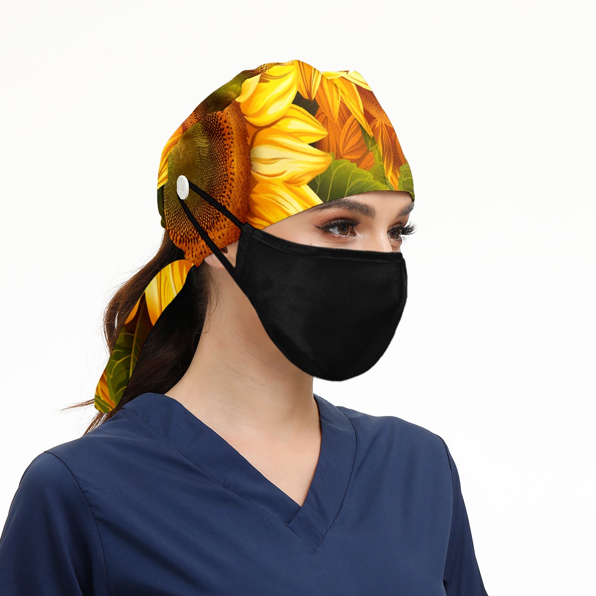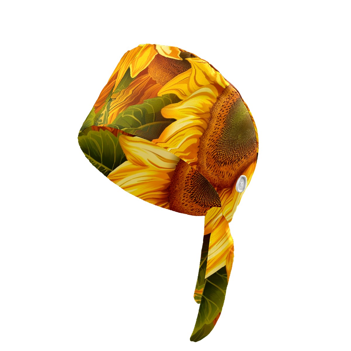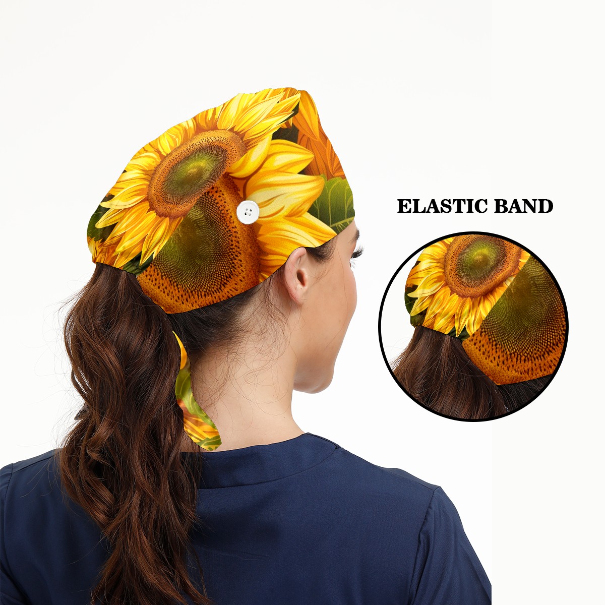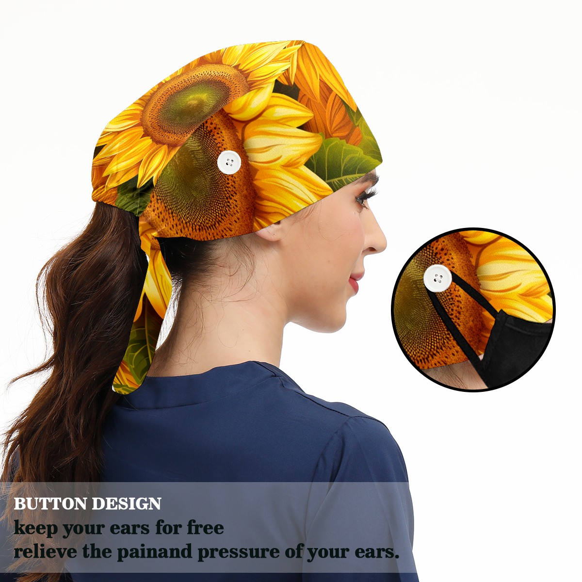 Working Caps with Button & Sweatband Satin Lined Cotton Adjustable Nurse Hats Elastic Band Scrub Cap Surgeon Hat Sunflower (28)