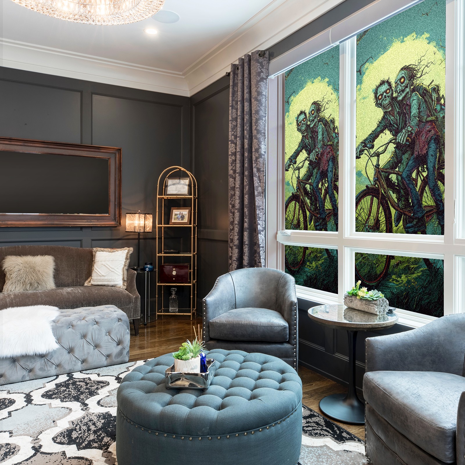 Static Cling Decorative Window Film Frosted Privacy Film Window Clings for Glass Windows No Glue Window Sticker for Bathroom Bedroom Office Zombie