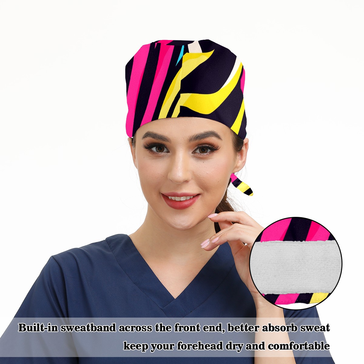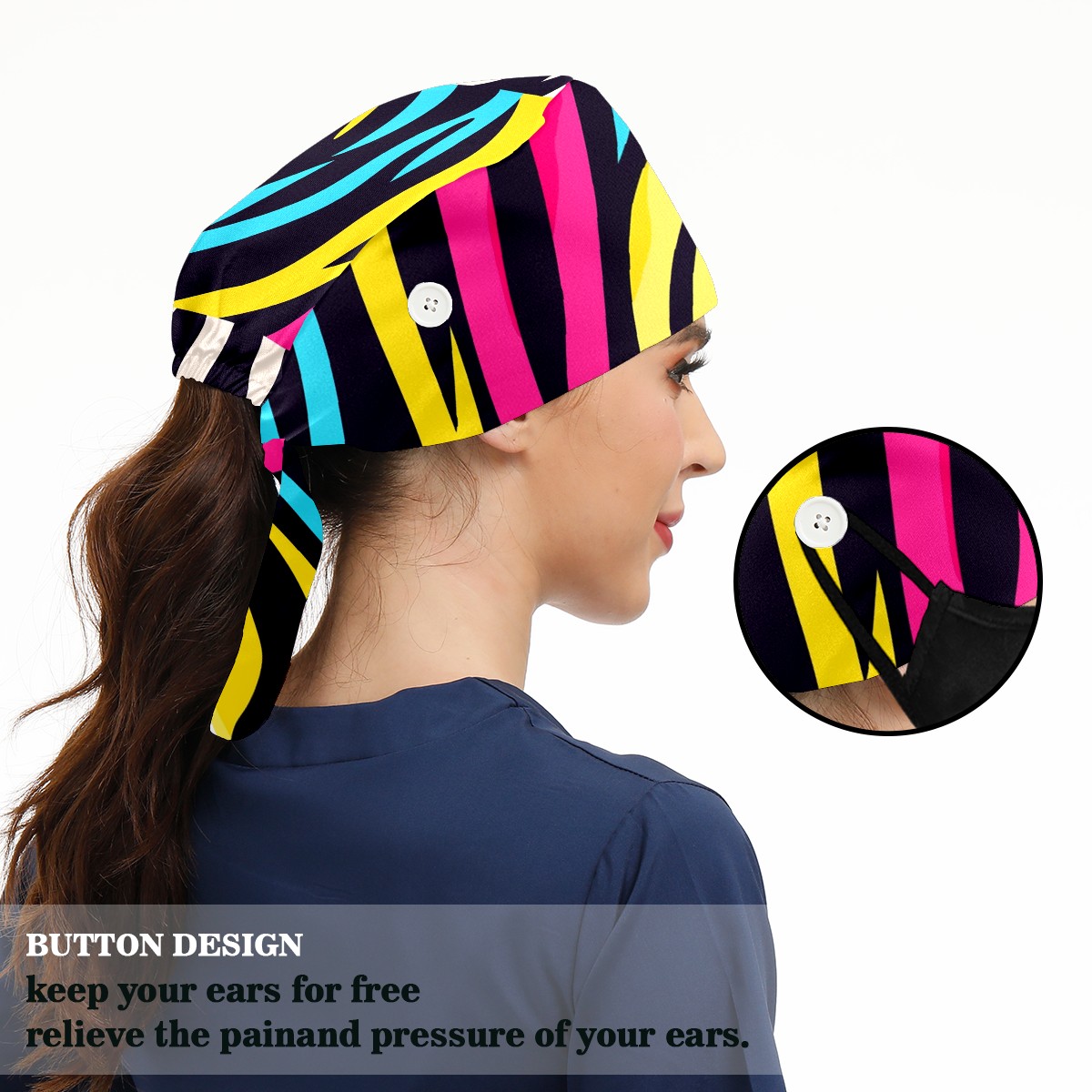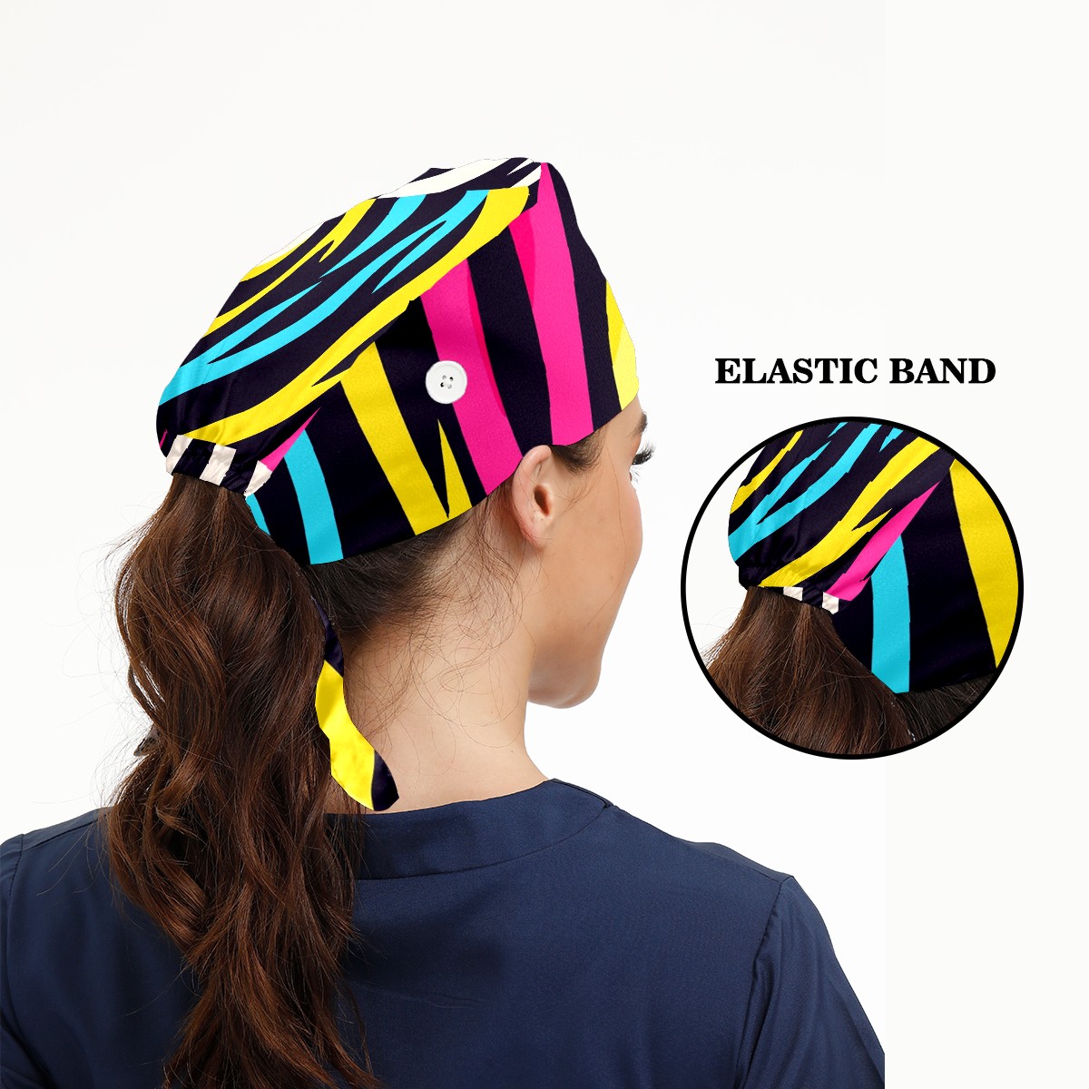 Working Caps with Button & Sweatband Satin Lined Cotton Adjustable Nurse Hats Elastic Band Scrub Cap Surgeon Hat Zebra (6)