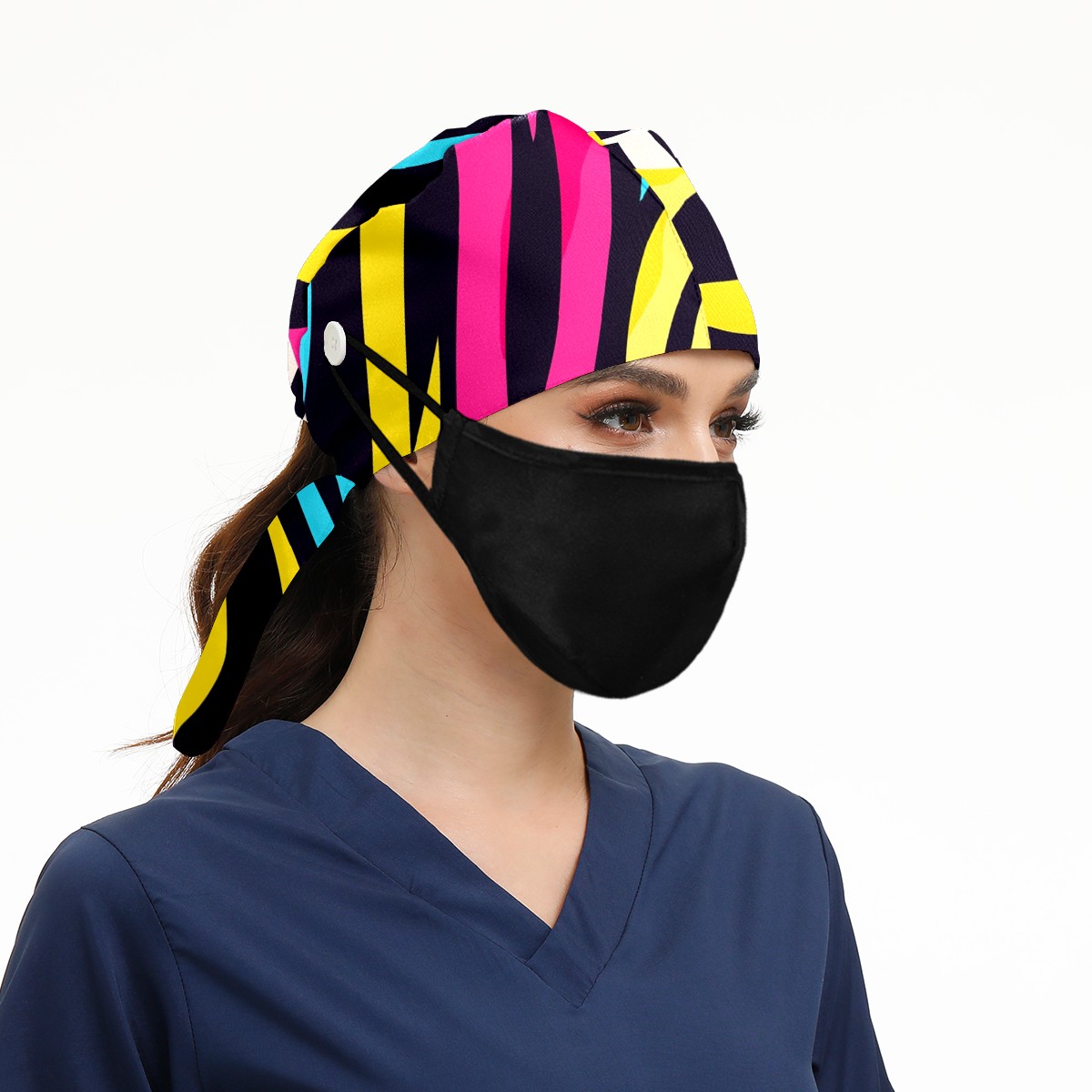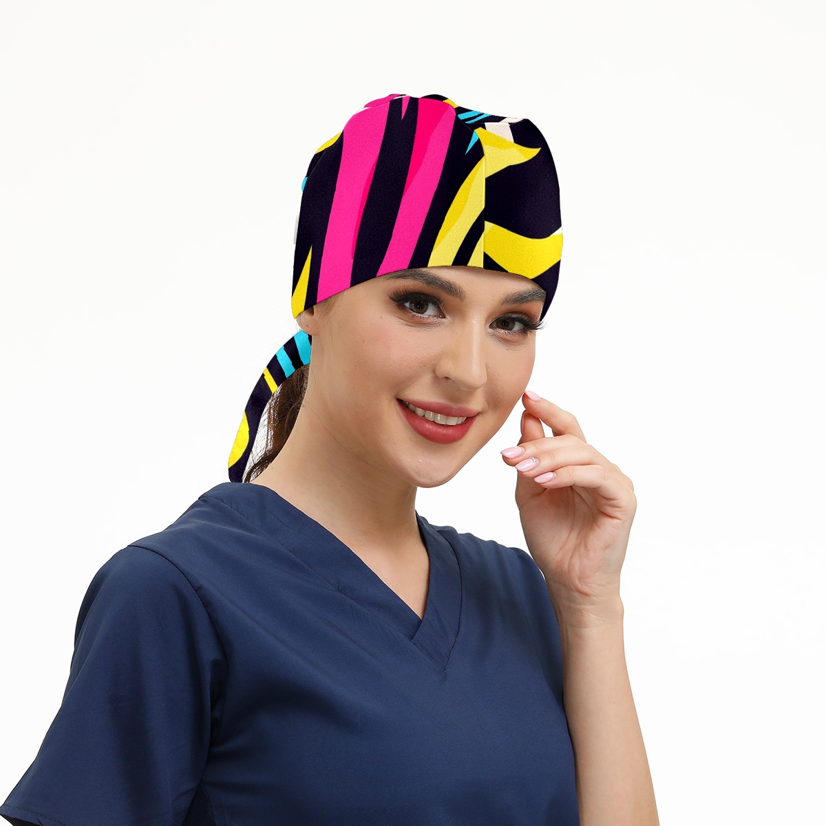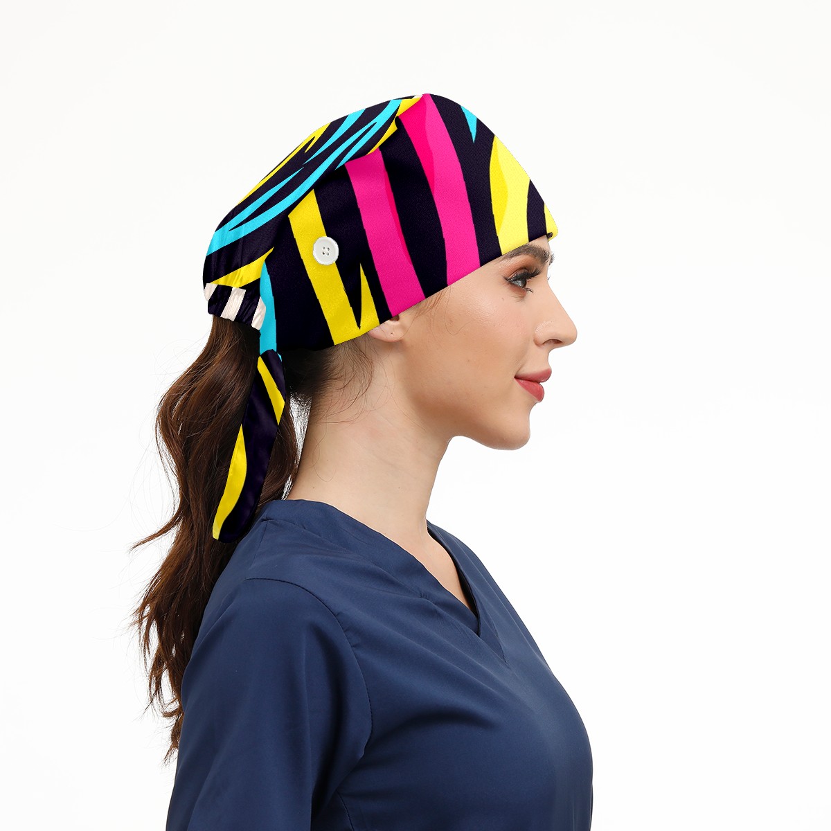 Working Caps with Button & Sweatband Satin Lined Cotton Adjustable Nurse Hats Elastic Band Scrub Cap Surgeon Hat Zebra (6)