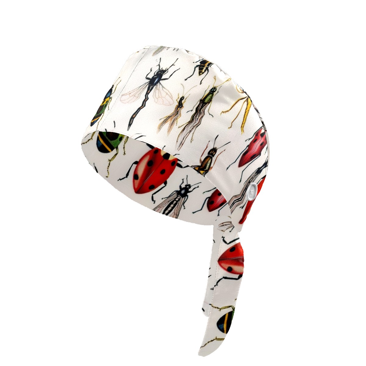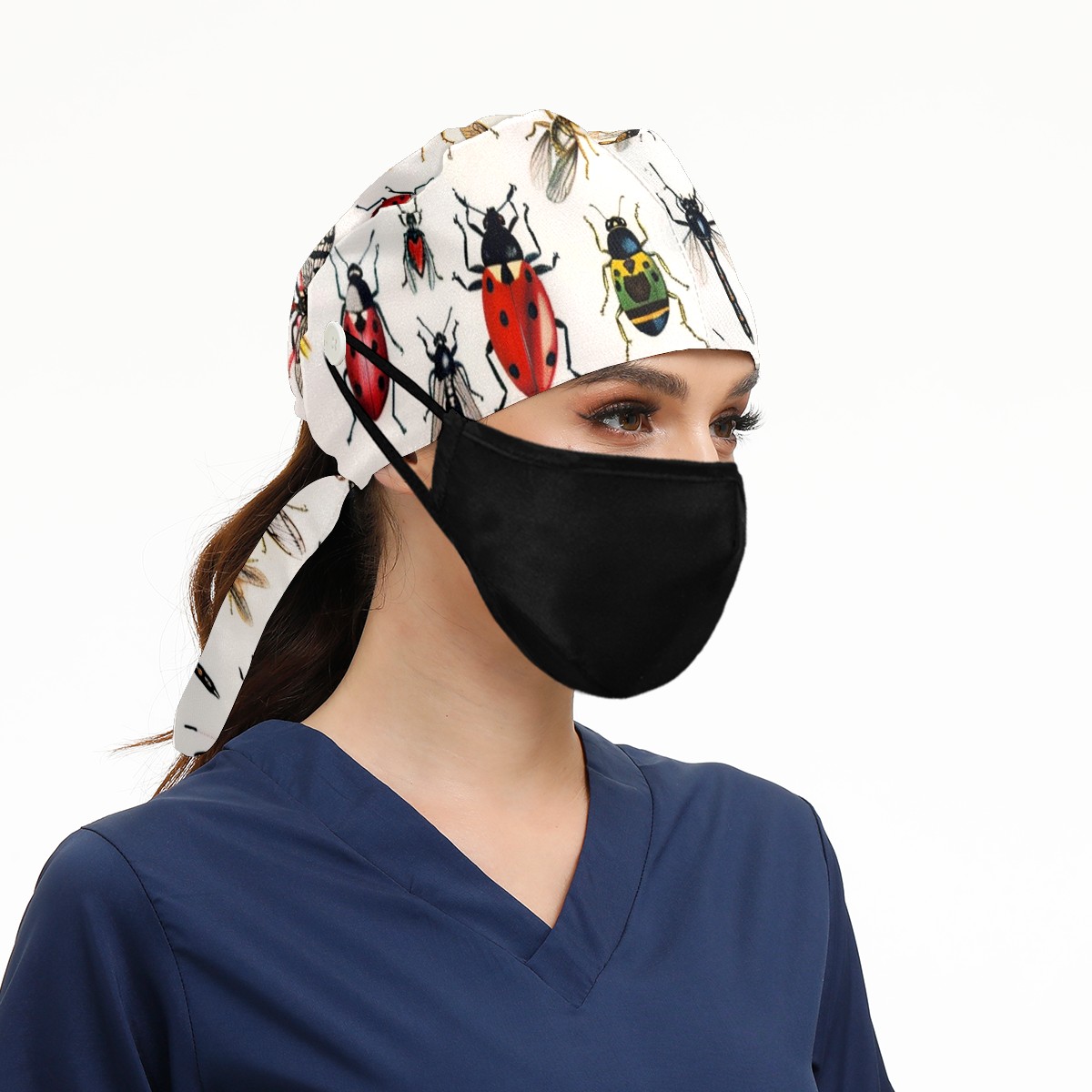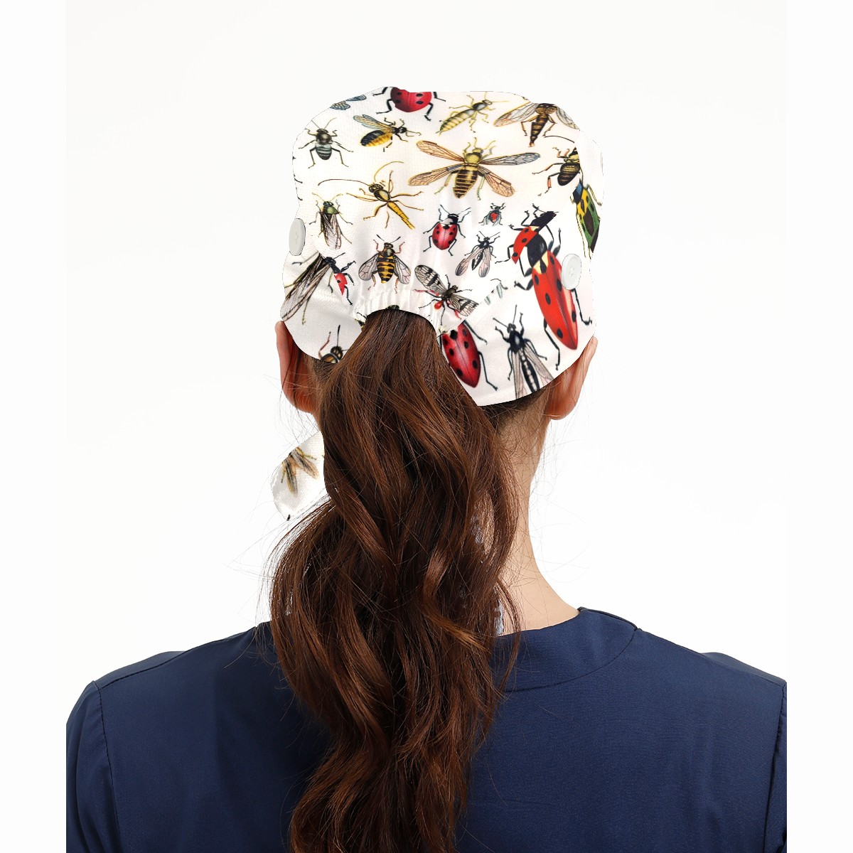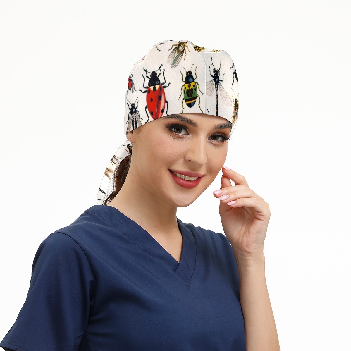 Working Caps with Button & Sweatband Satin Lined Cotton Adjustable Nurse Hats Elastic Band Scrub Cap Surgeon Hat Insects (2)