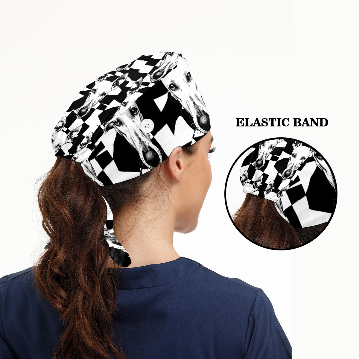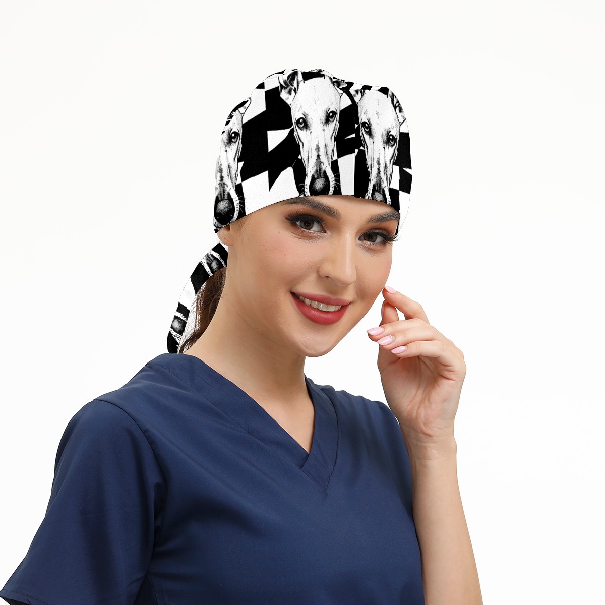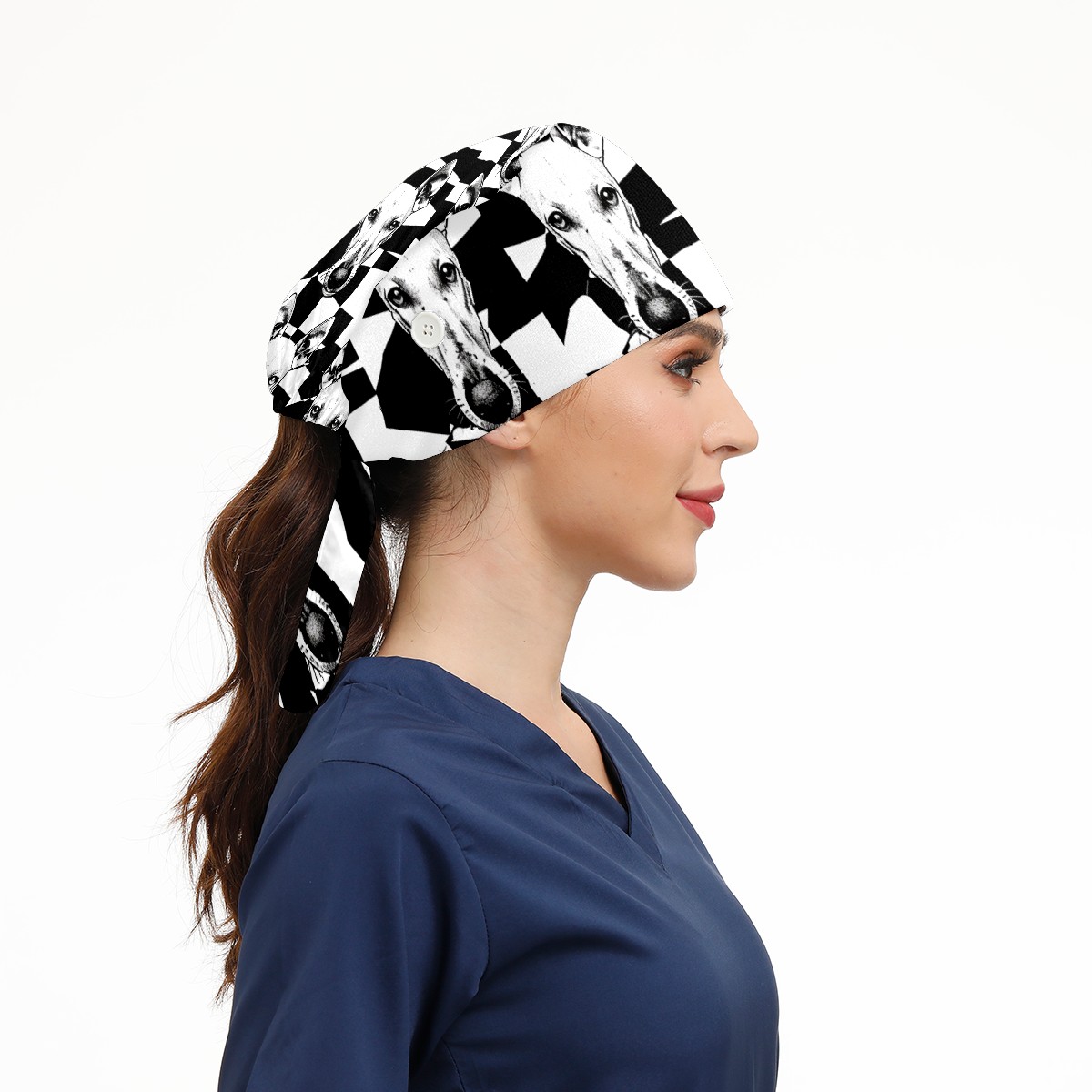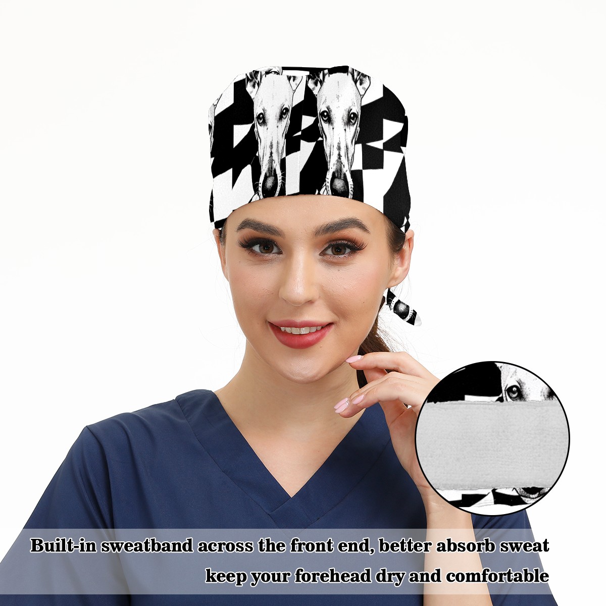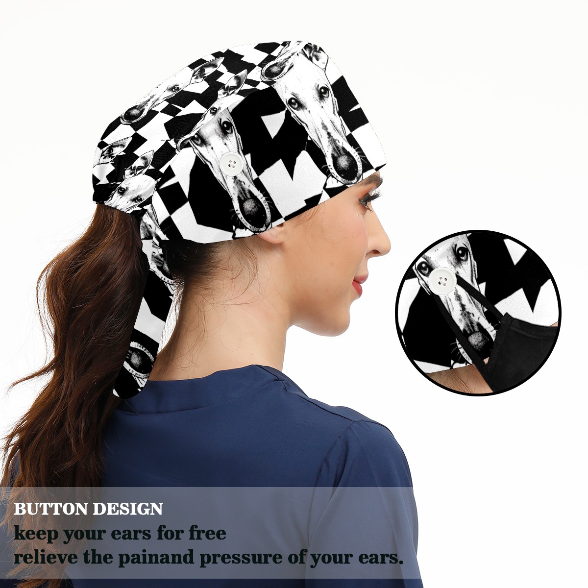 Working Caps with Button & Sweatband Satin Lined Cotton Adjustable Nurse Hats Elastic Band Scrub Cap Surgeon Hat Dog (13)