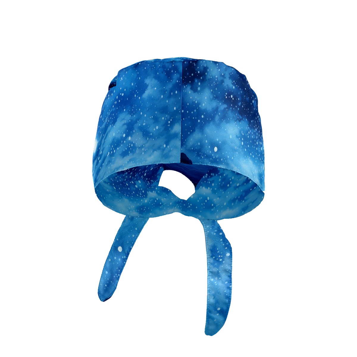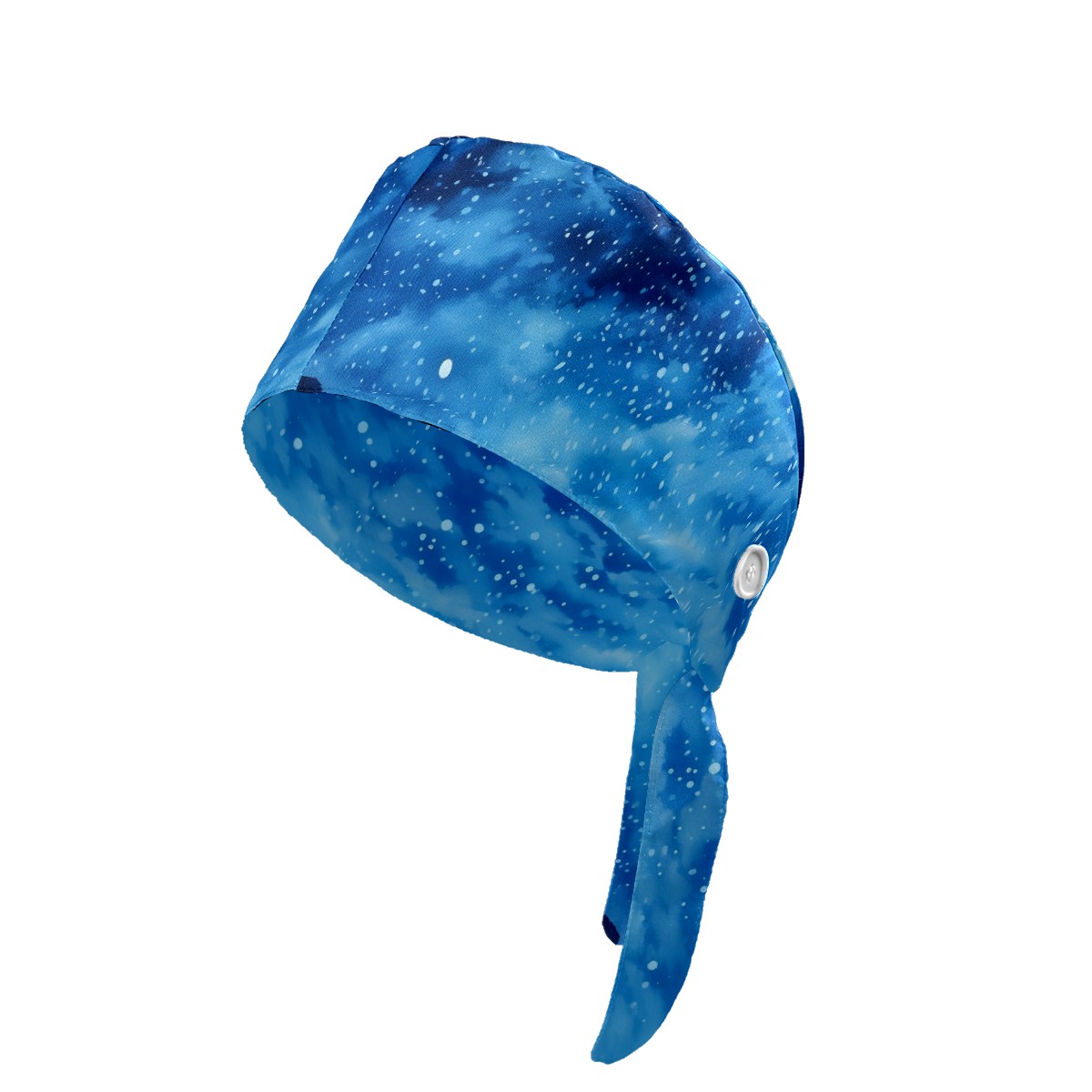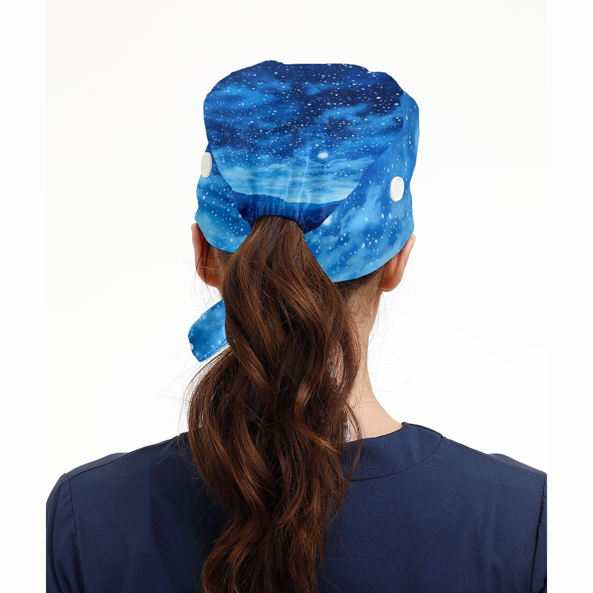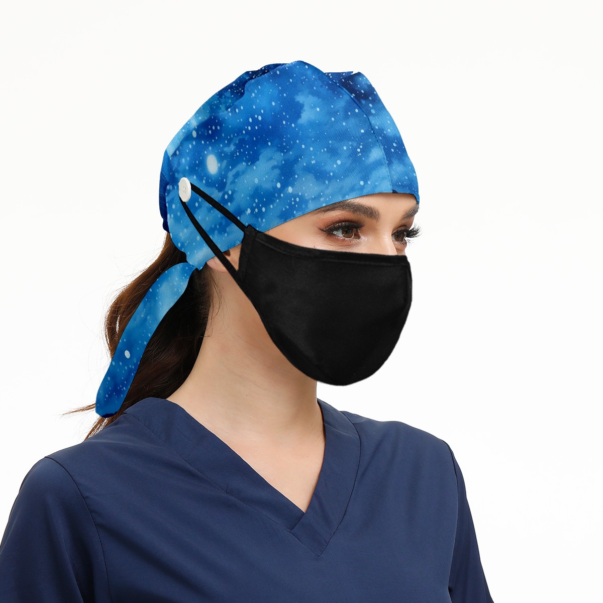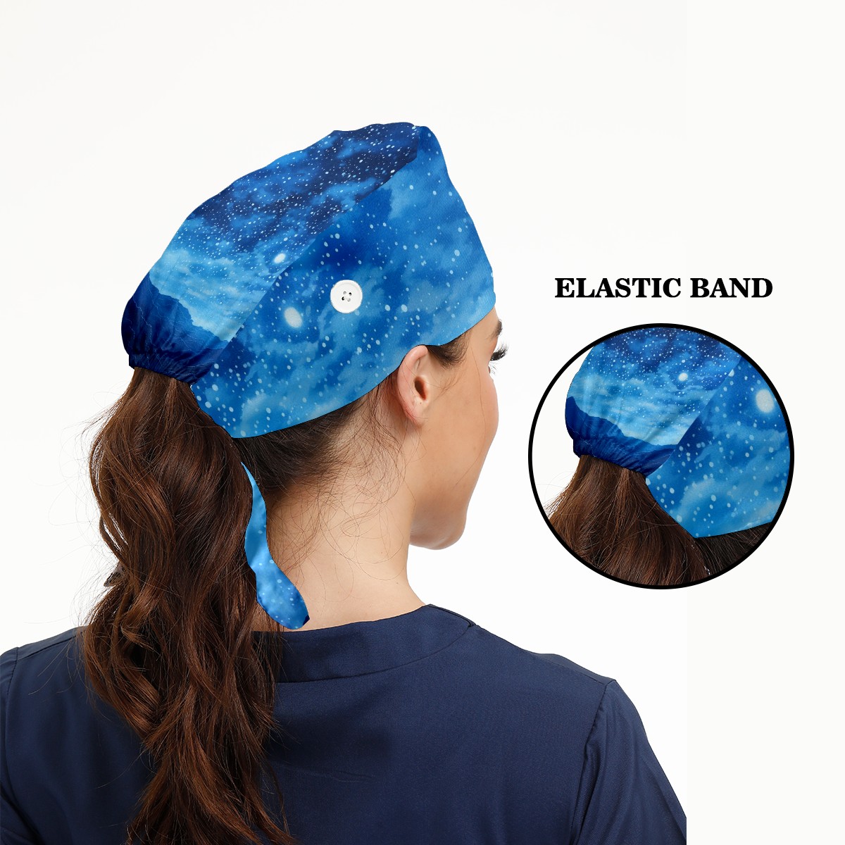 Working Caps with Button & Sweatband Satin Lined Cotton Adjustable Nurse Hats Elastic Band Scrub Cap Surgeon Hat Blue Starry Sky