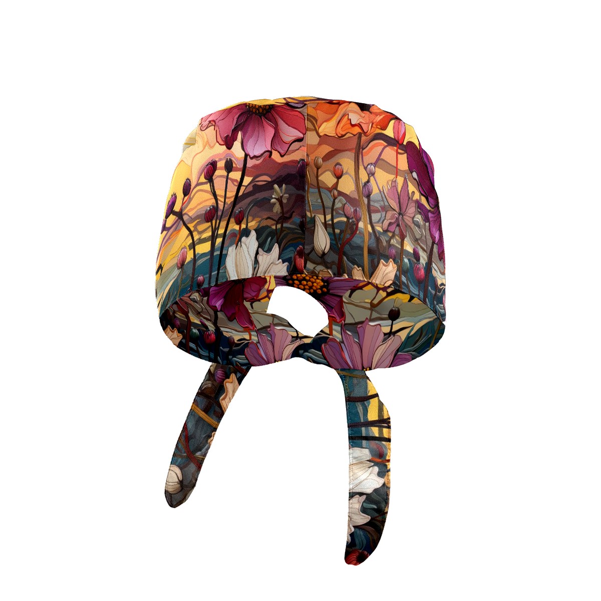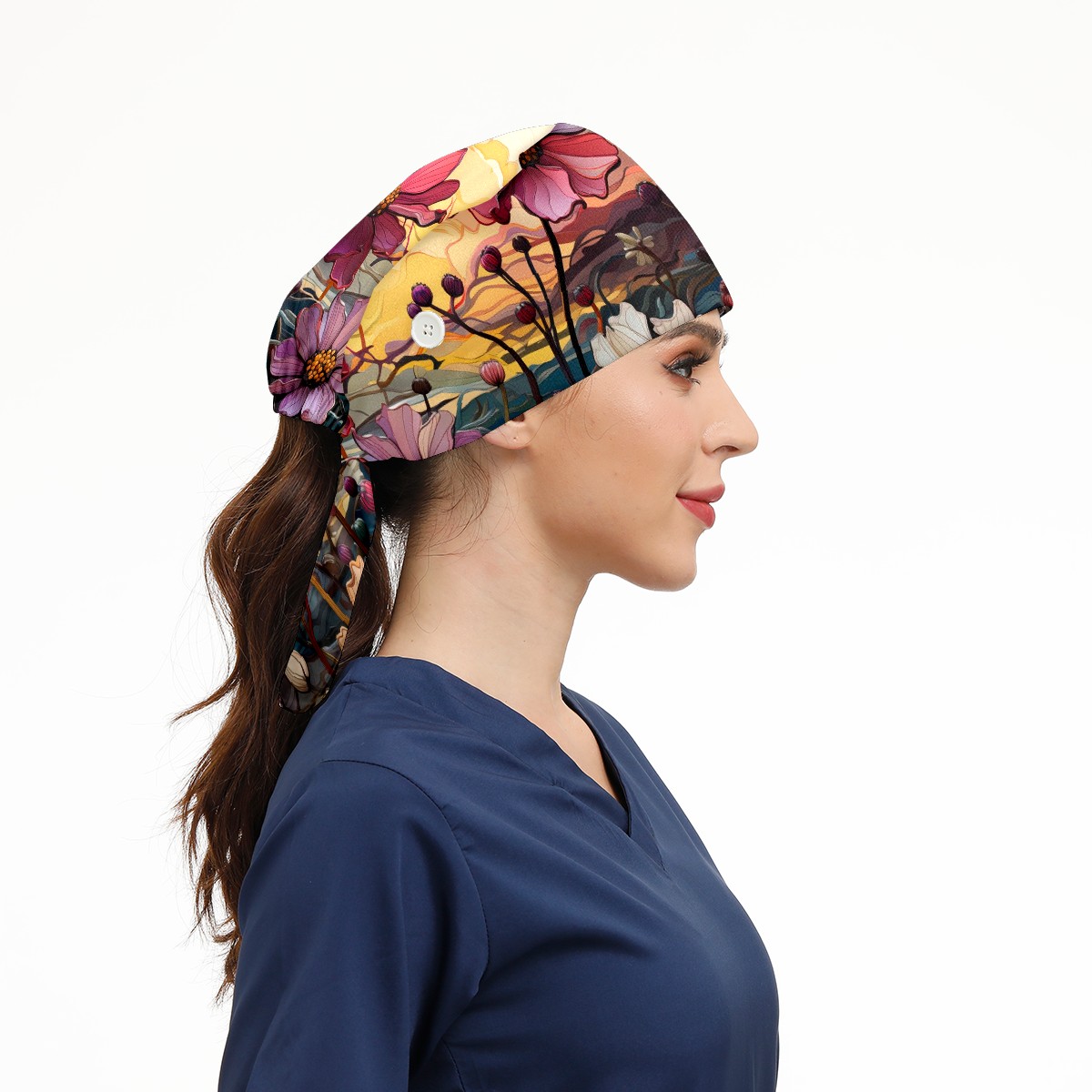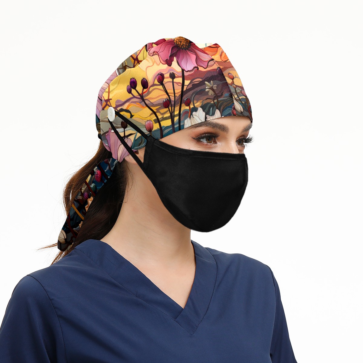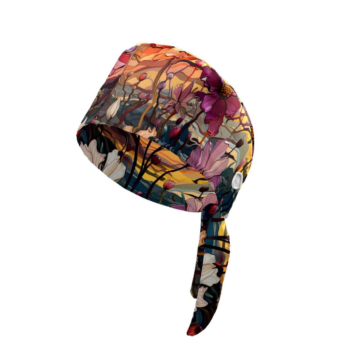 Working Caps with Button & Sweatband Satin Lined Cotton Adjustable Nurse Hats Elastic Band Scrub Cap Surgeon Hat Sea Of Colorful Flowers (2)
