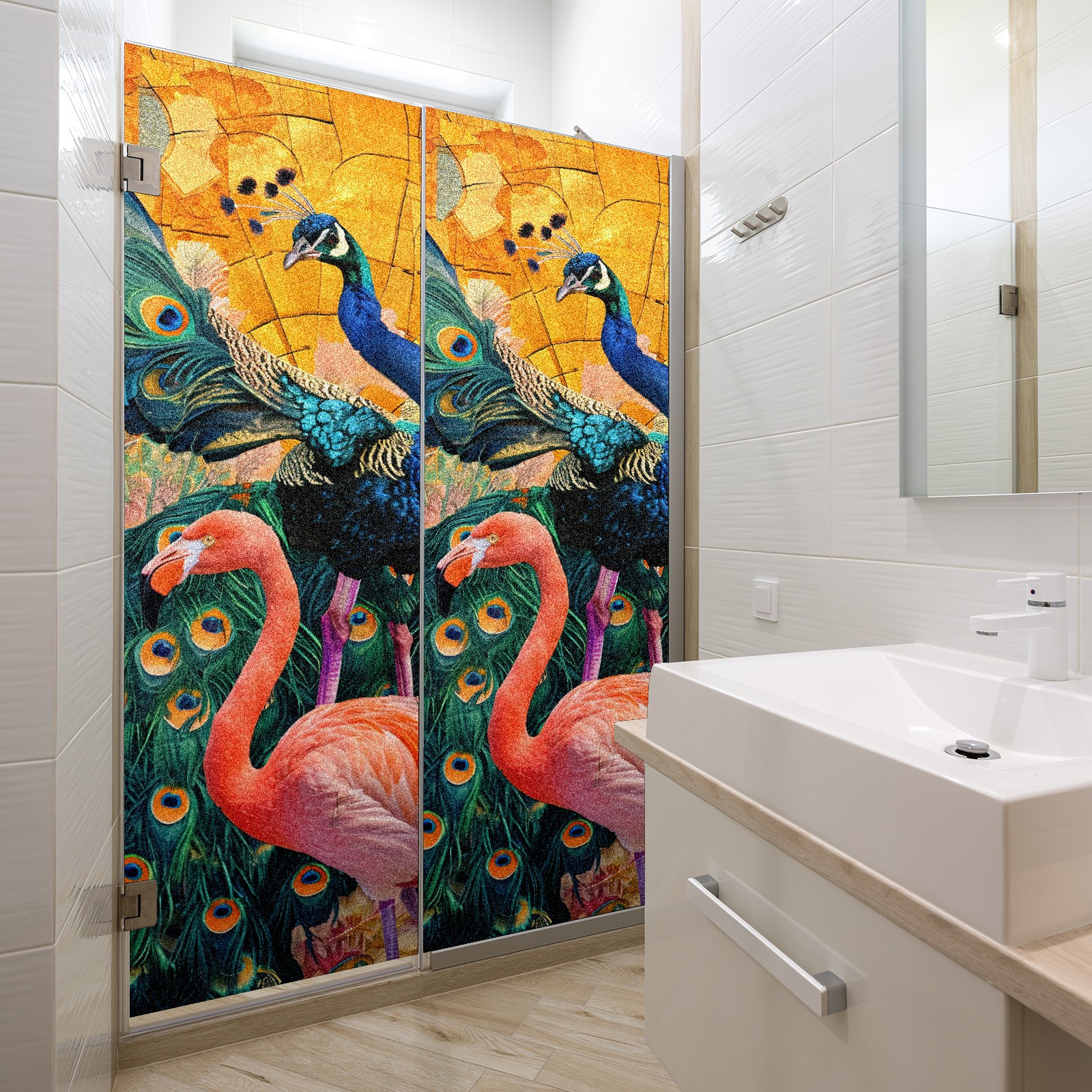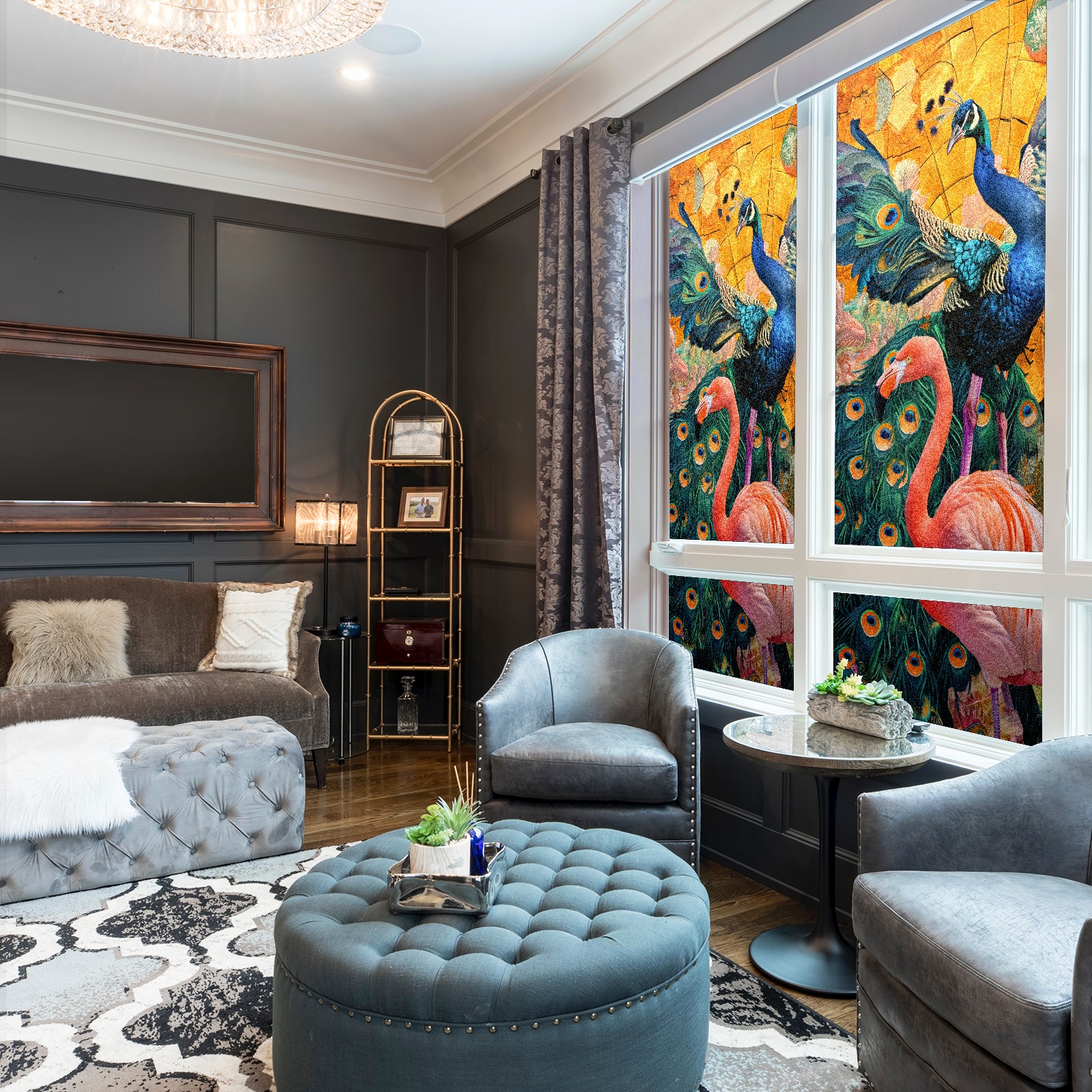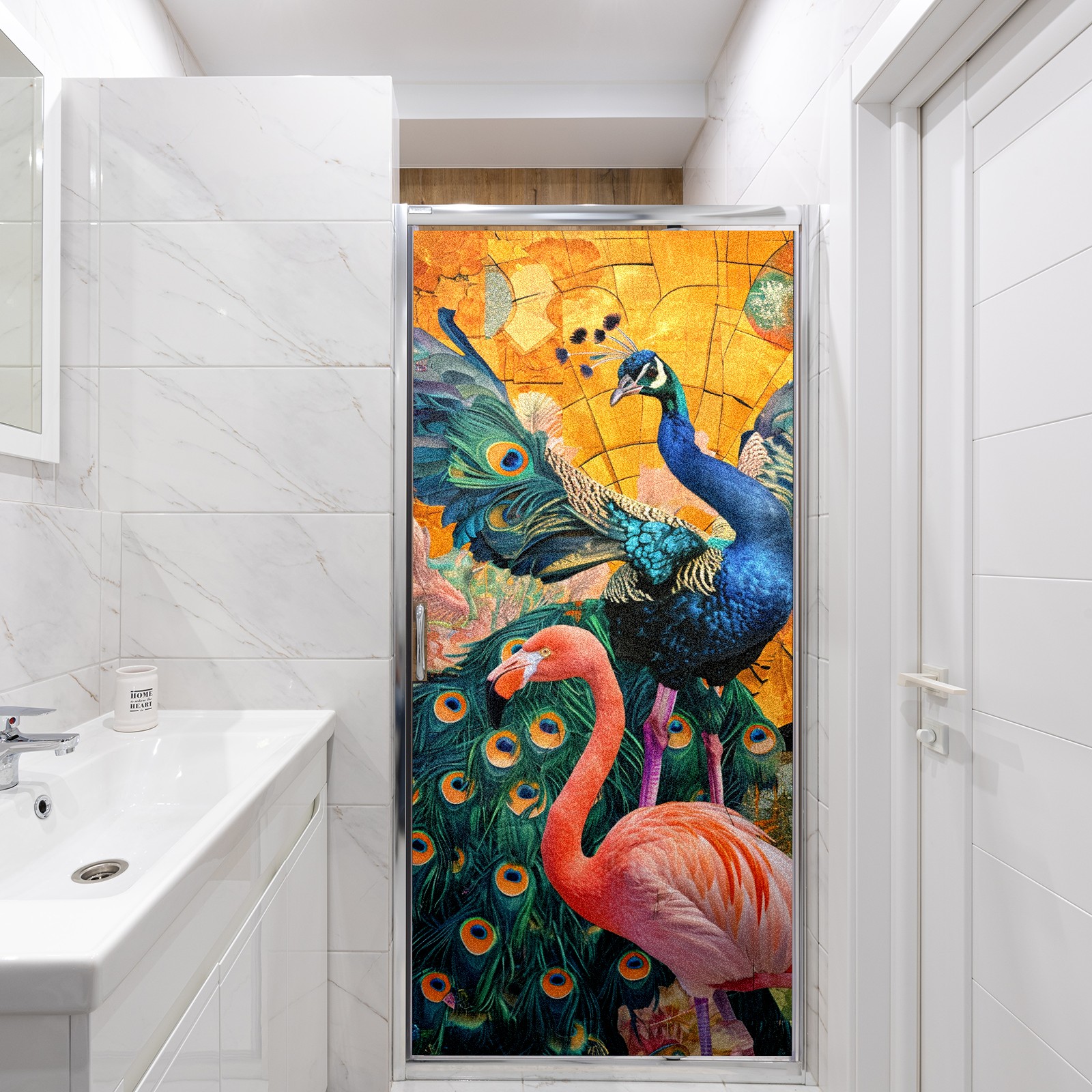 Static Cling Decorative Window Film Frosted Privacy Film Window Clings for Glass Windows No Glue Window Sticker for Bathroom Bedroom Office Peacock