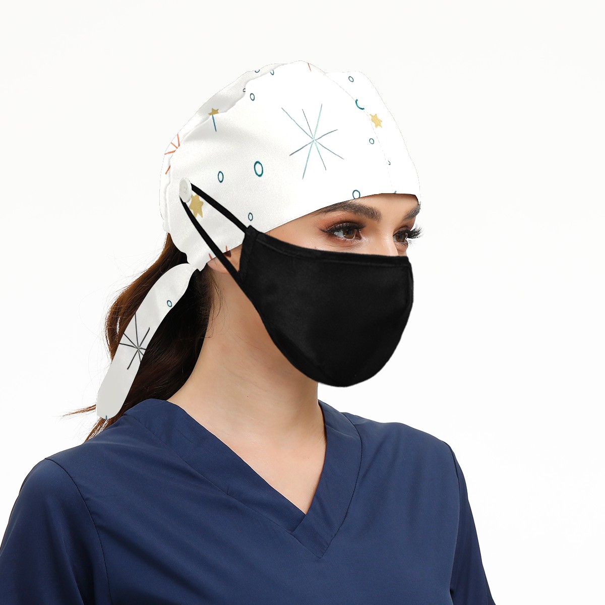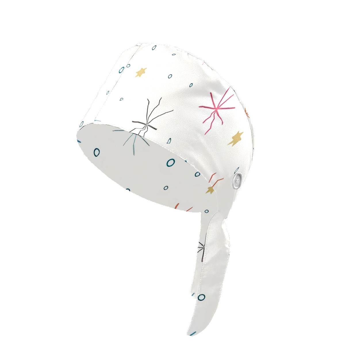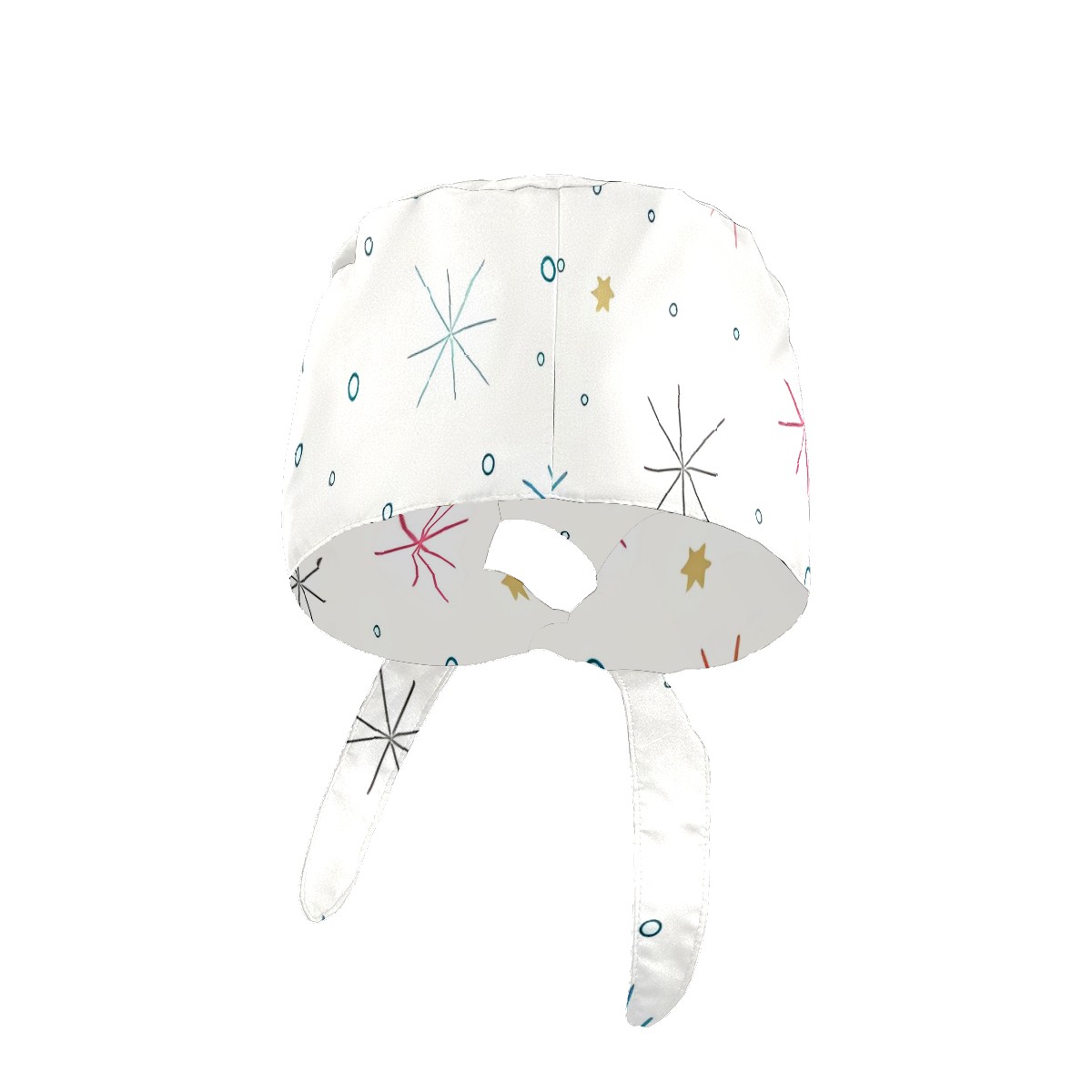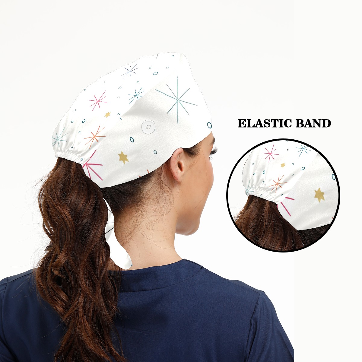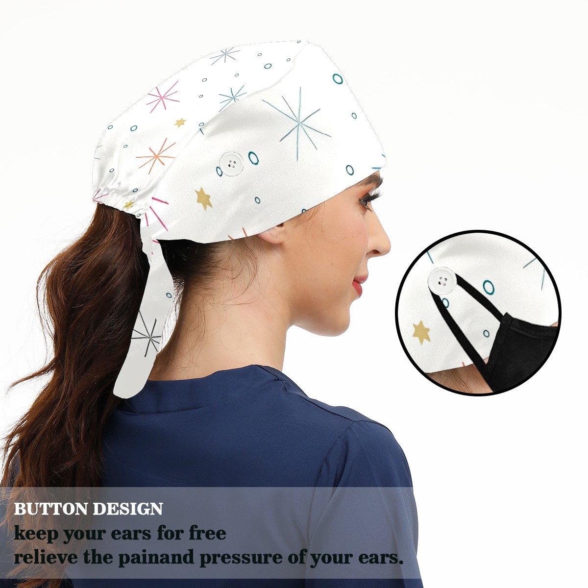 Working Caps with Button & Sweatband Satin Lined Cotton Adjustable Nurse Hats Elastic Band Scrub Cap Surgeon Hat Snowflake
