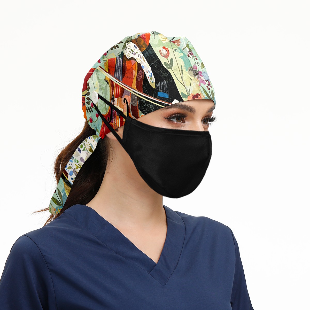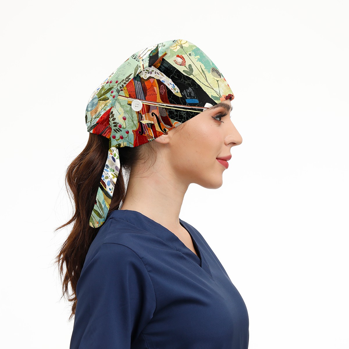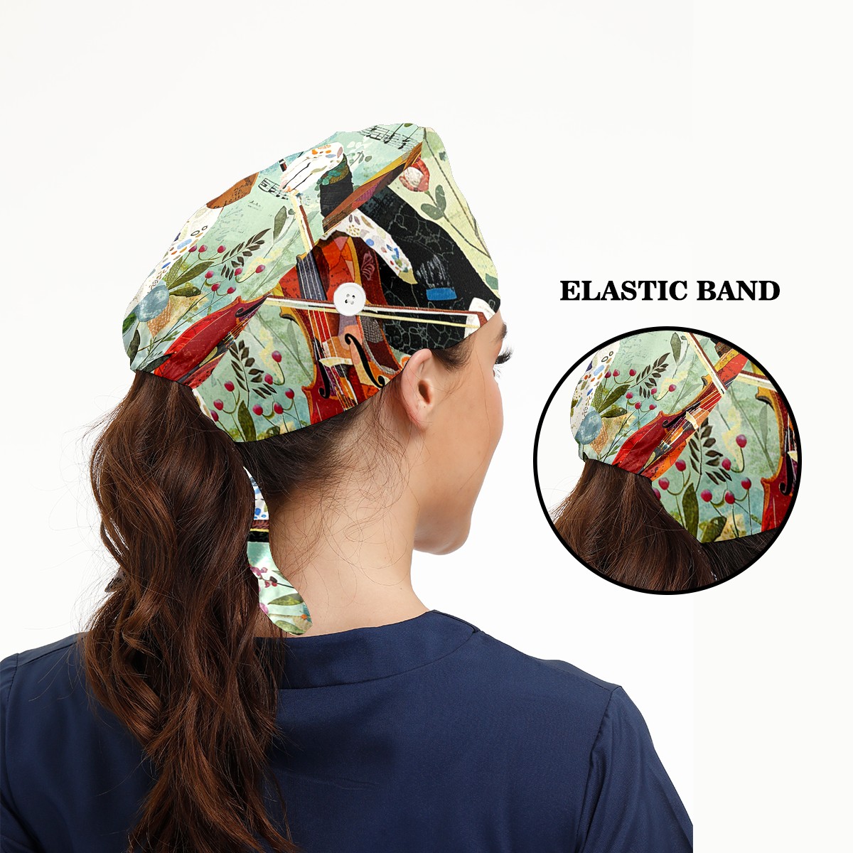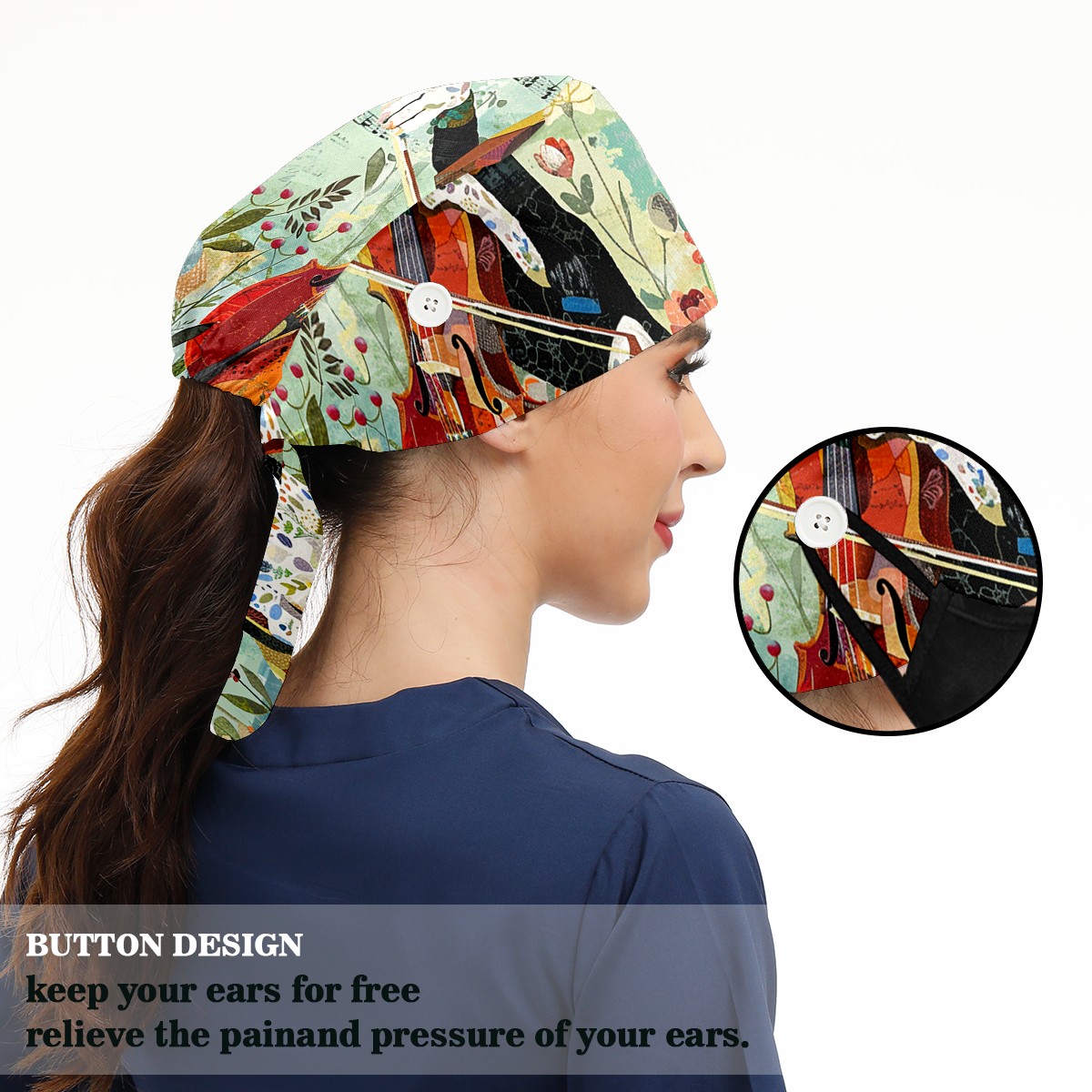 Working Caps with Button & Sweatband Satin Lined Cotton Adjustable Nurse Hats Elastic Band Scrub Cap Surgeon Hat Retriever
