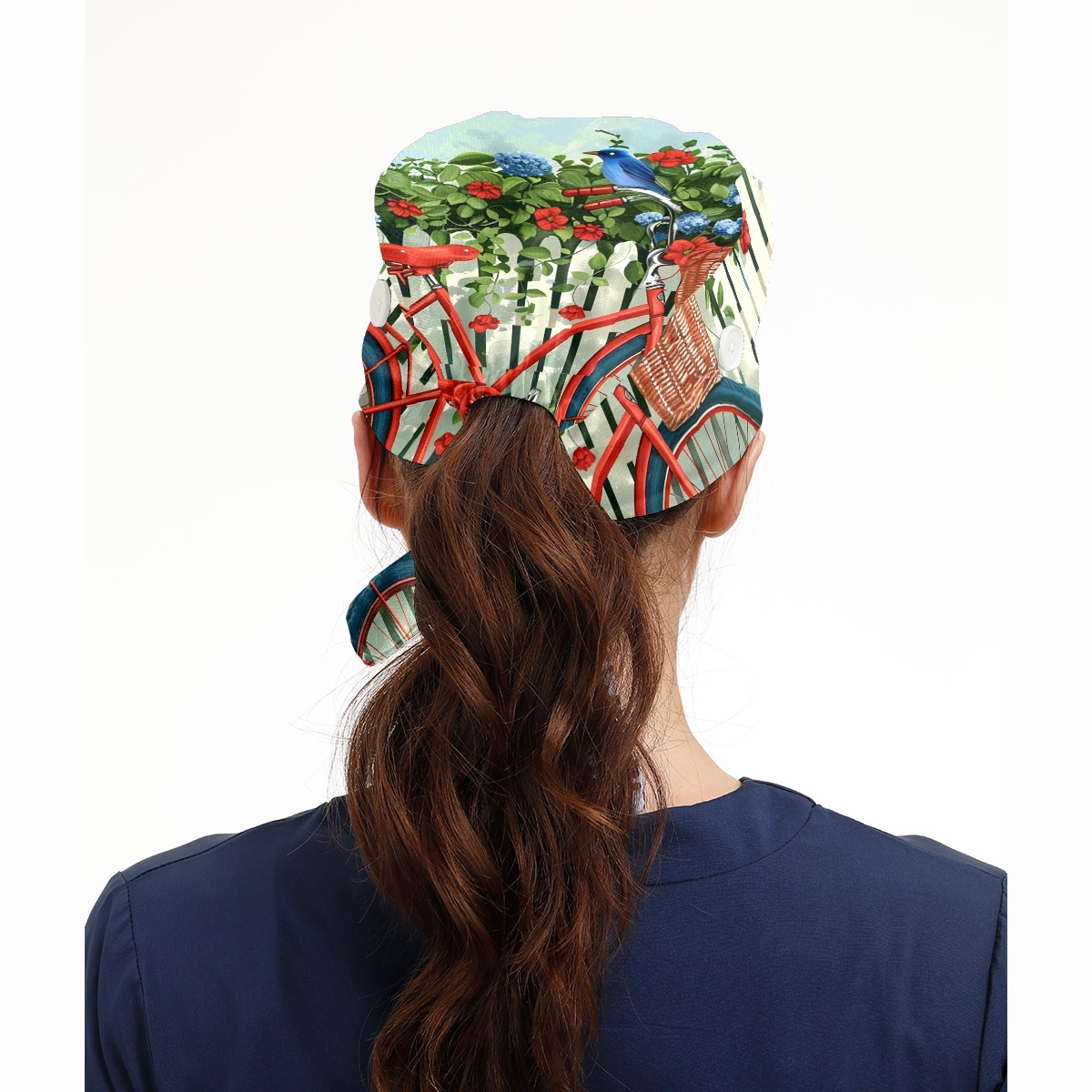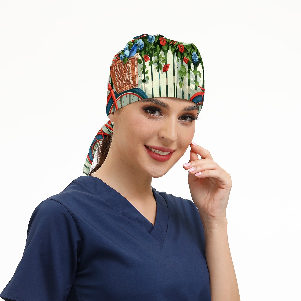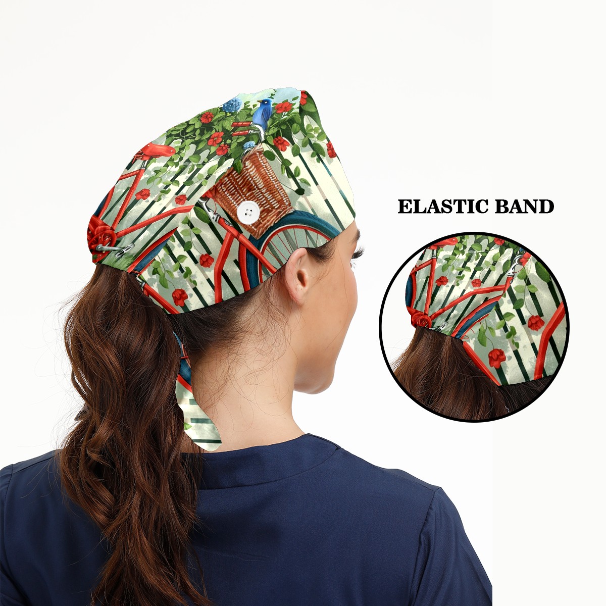 Working Caps with Button & Sweatband Satin Lined Cotton Adjustable Nurse Hats Elastic Band Scrub Cap Surgeon Hat Bicycle