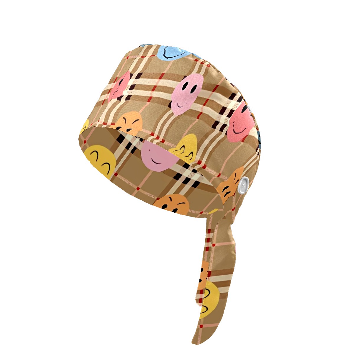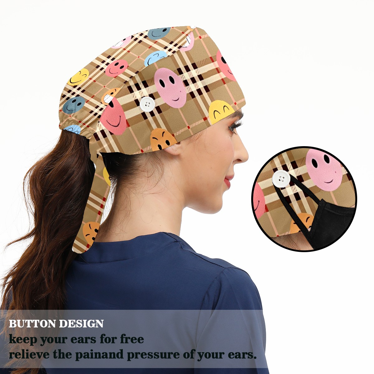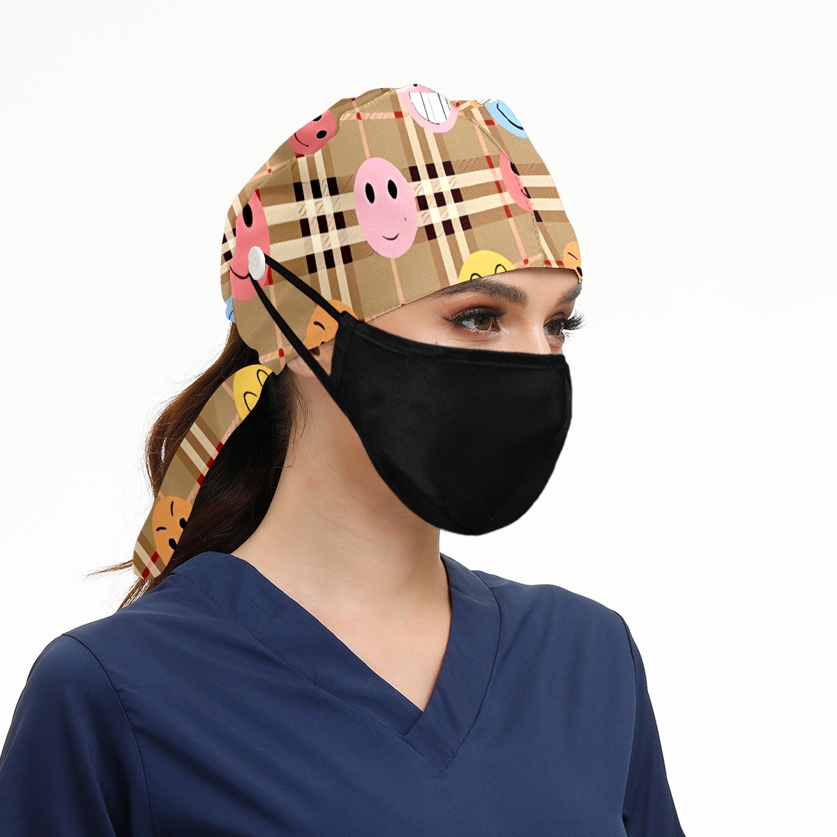 Working Caps with Button & Sweatband Satin Lined Cotton Adjustable Nurse Hats Elastic Band Scrub Cap Surgeon Hat Lattice Print