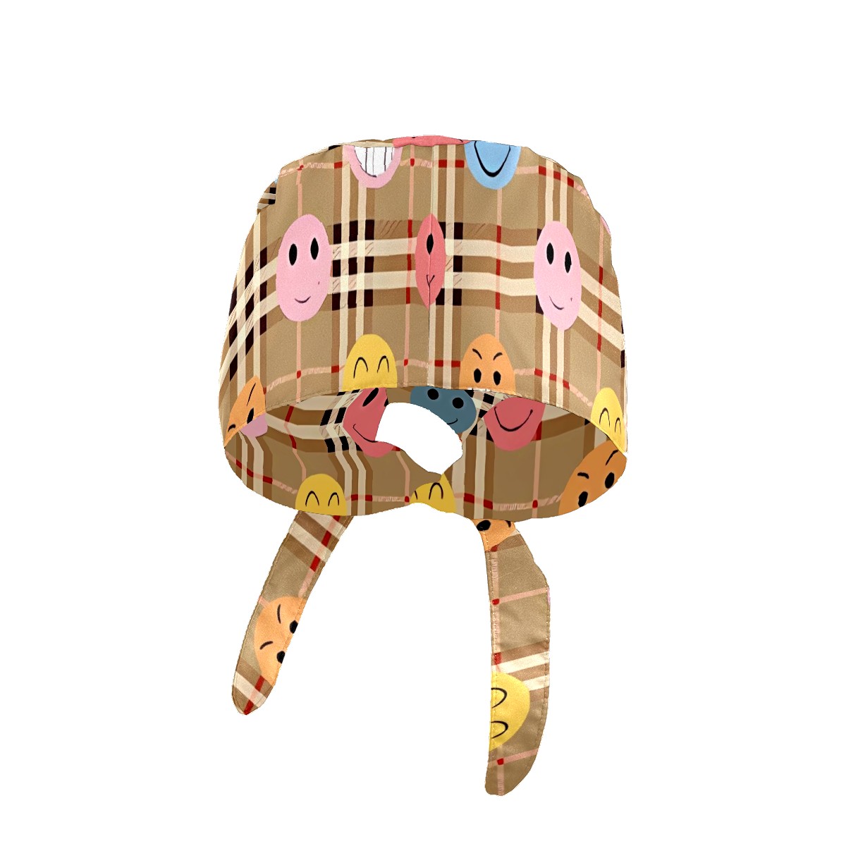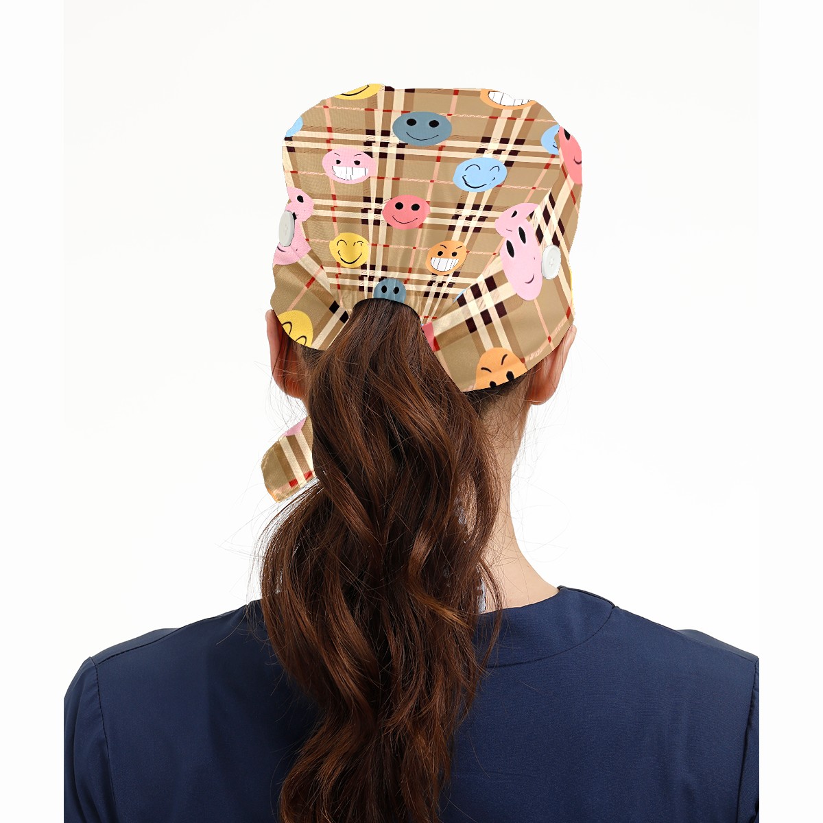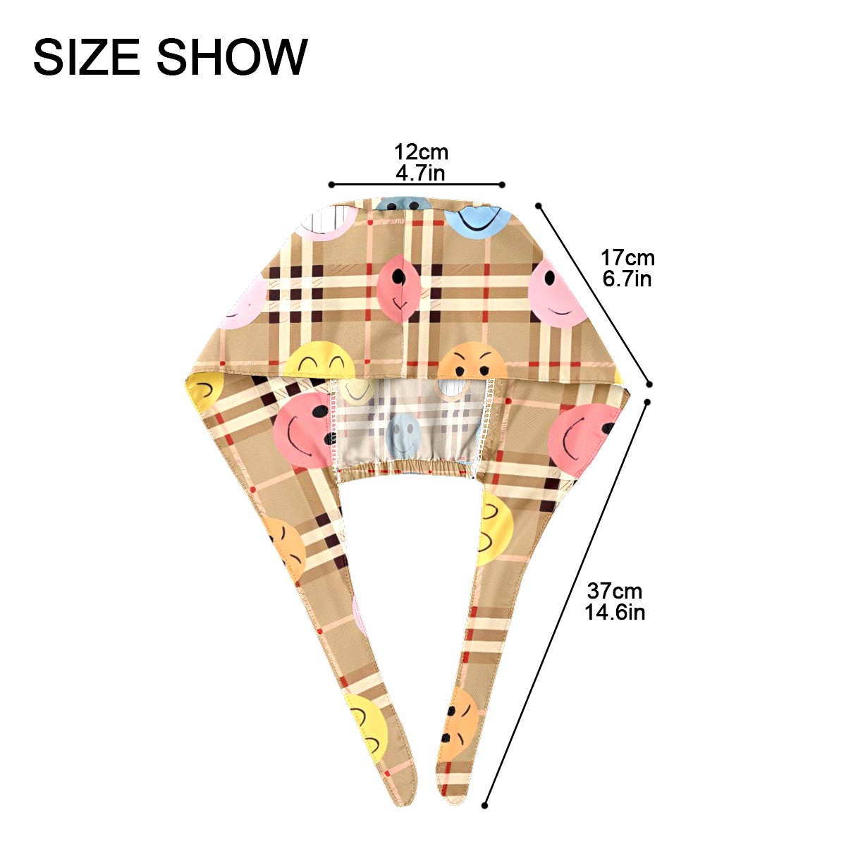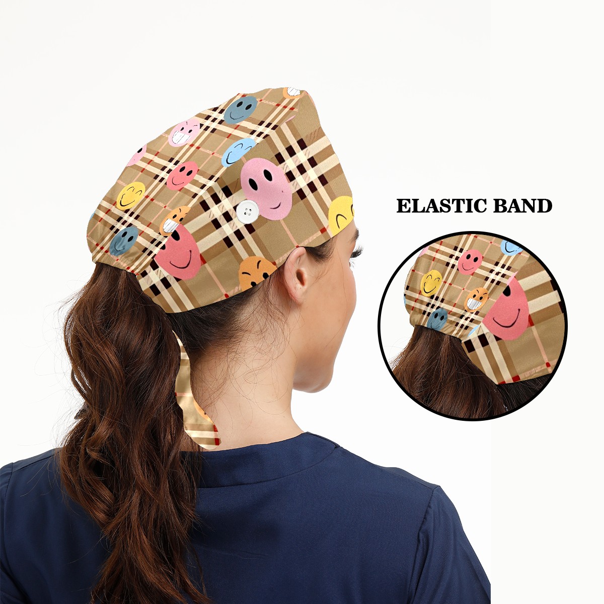 Working Caps with Button & Sweatband Satin Lined Cotton Adjustable Nurse Hats Elastic Band Scrub Cap Surgeon Hat Lattice Print