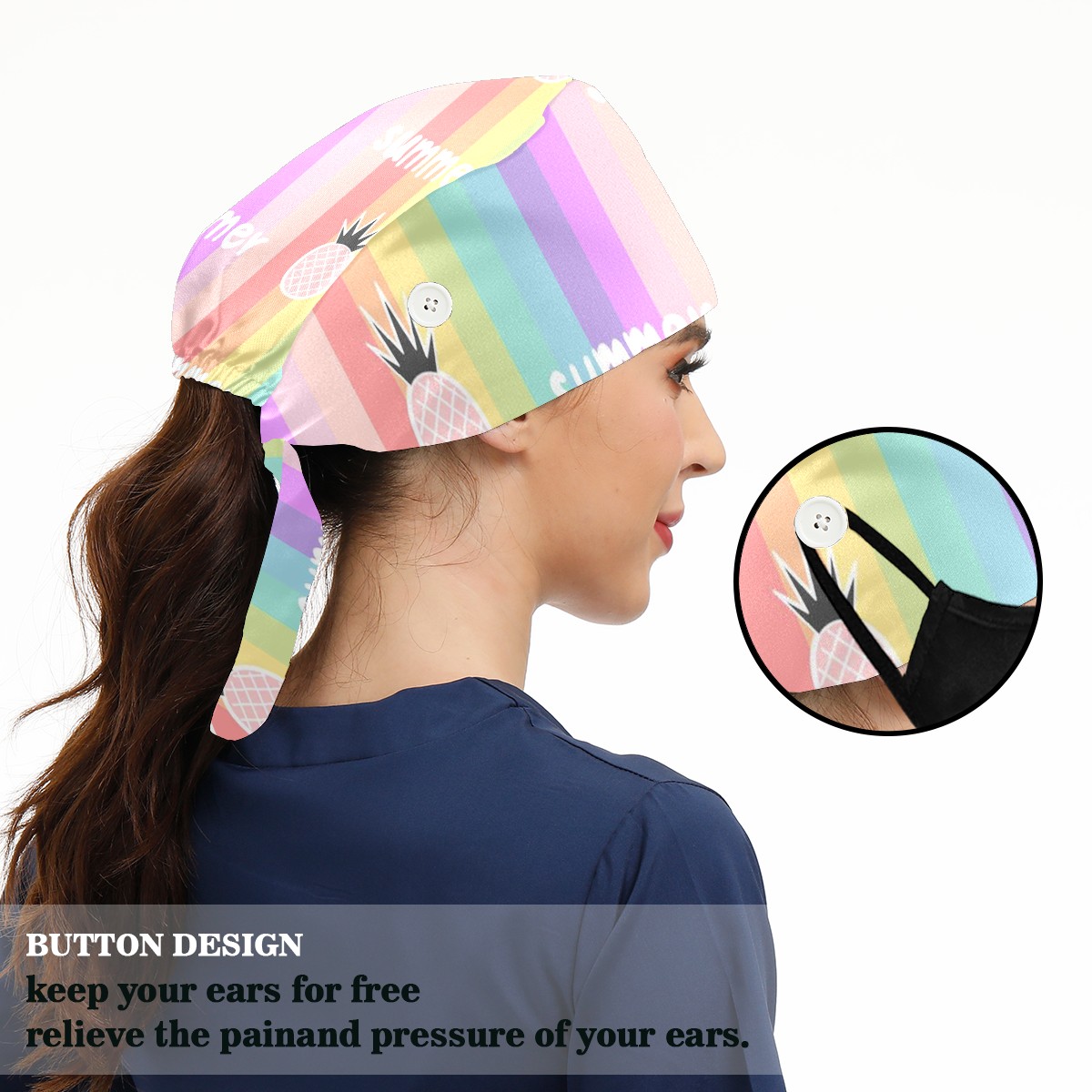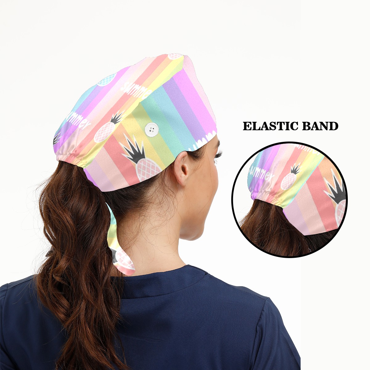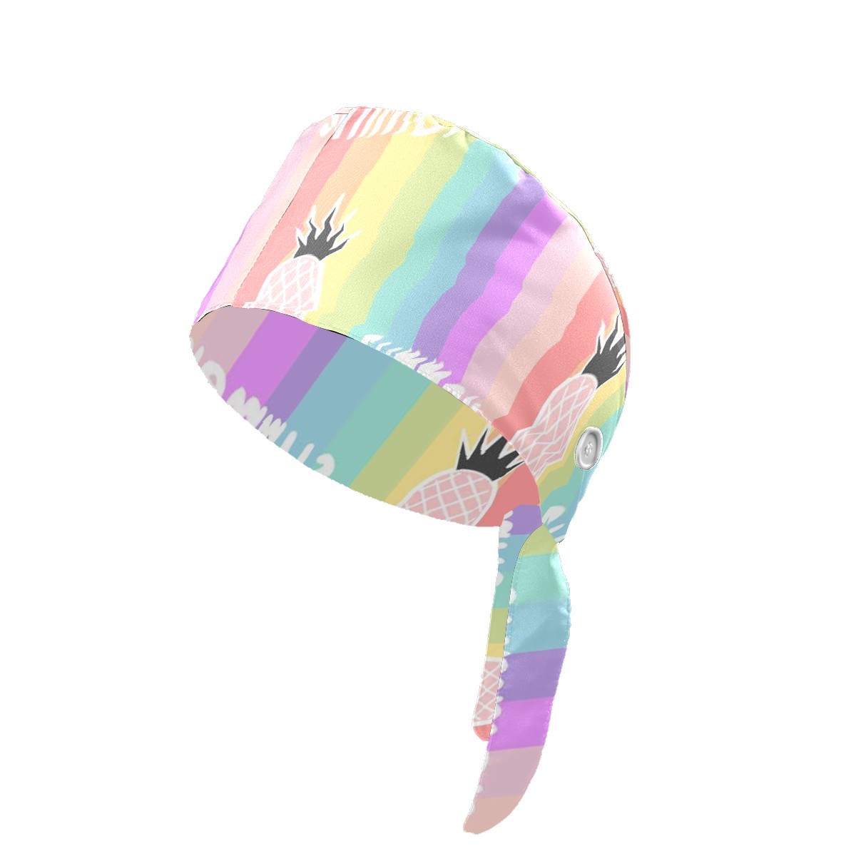 Working Caps with Button & Sweatband Satin Lined Cotton Adjustable Nurse Hats Elastic Band Scrub Cap Surgeon Hat Pineapple