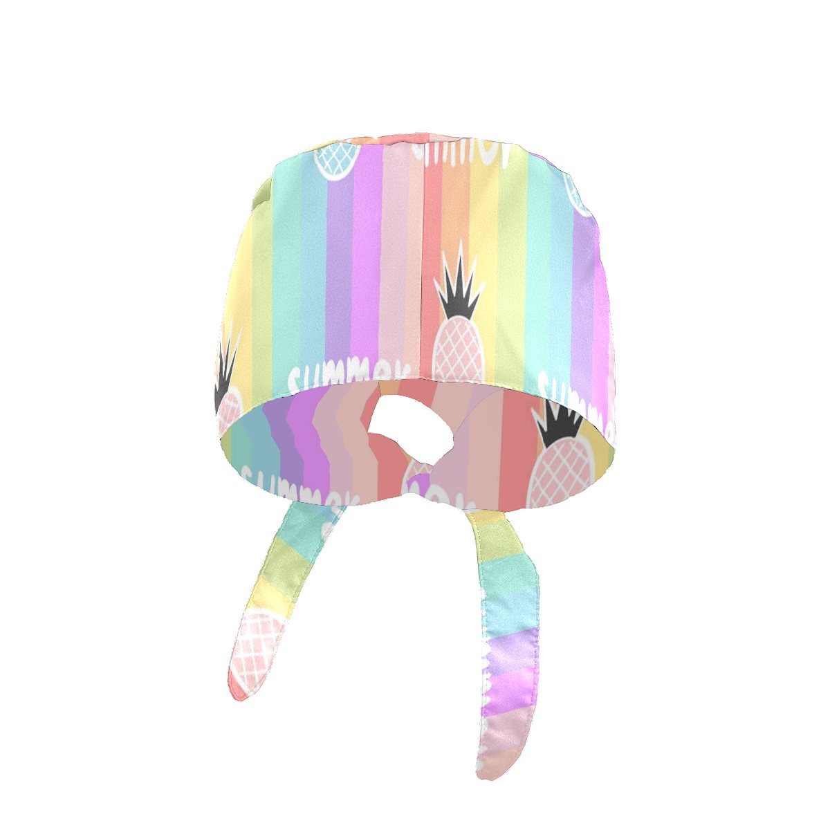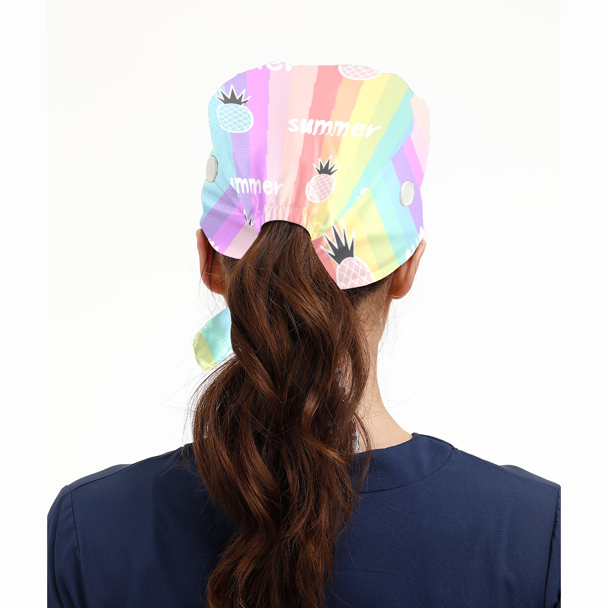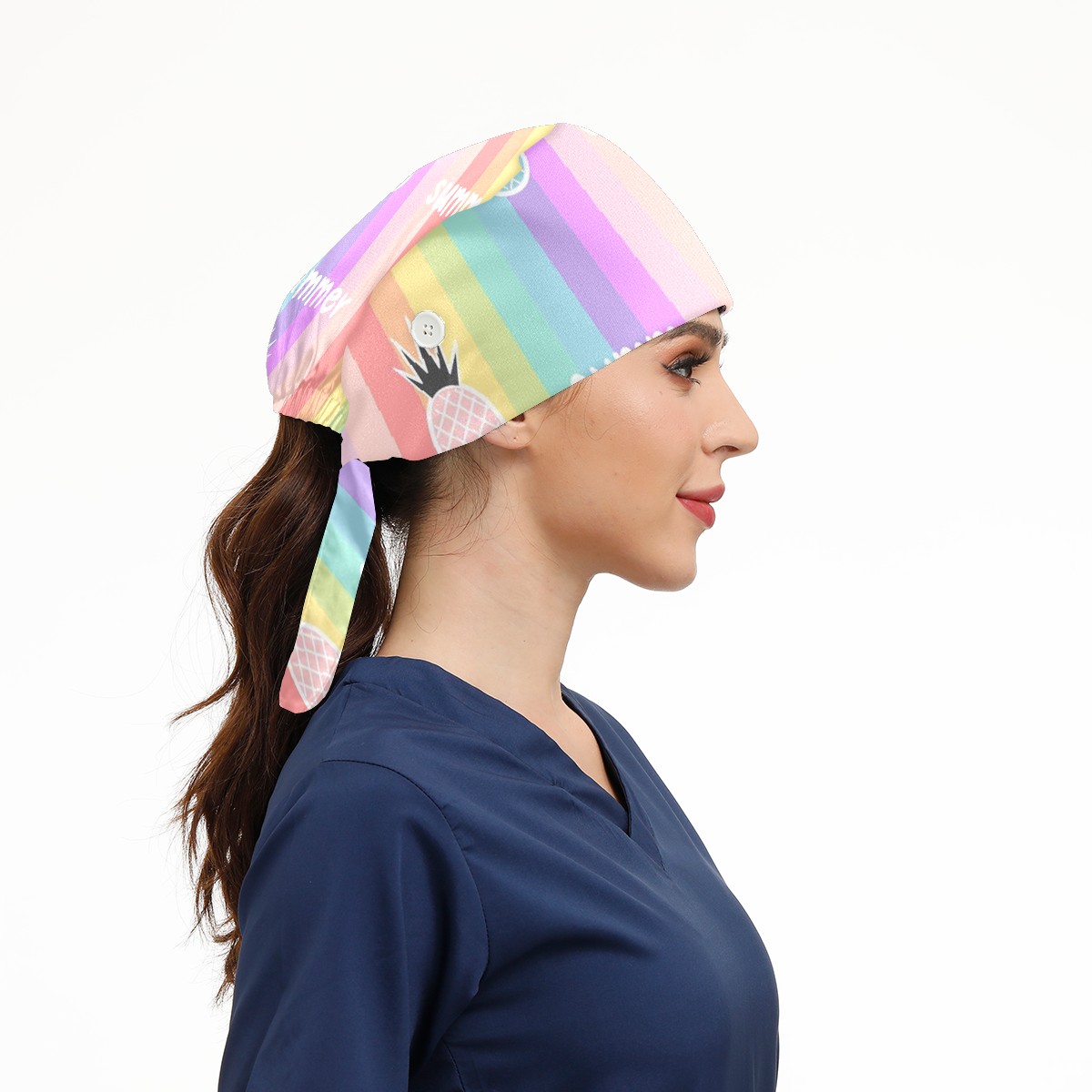 Working Caps with Button & Sweatband Satin Lined Cotton Adjustable Nurse Hats Elastic Band Scrub Cap Surgeon Hat Pineapple