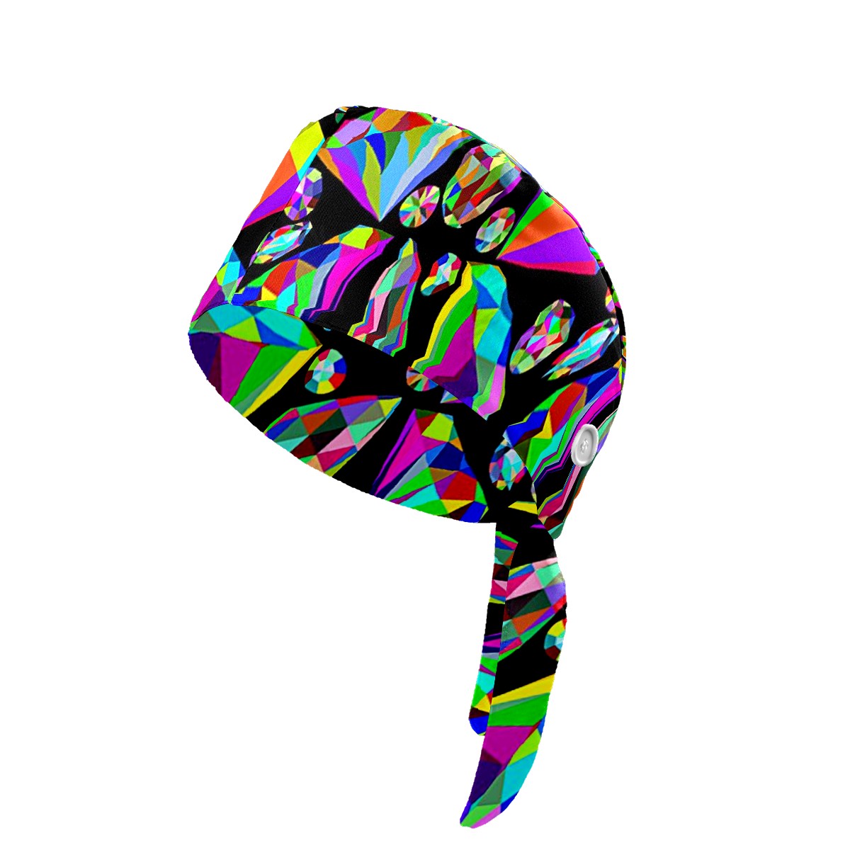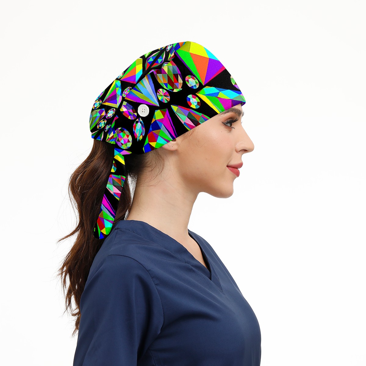 Working Caps with Button & Sweatband Satin Lined Cotton Adjustable Nurse Hats Elastic Band Scrub Cap Surgeon Hat Diamond Print