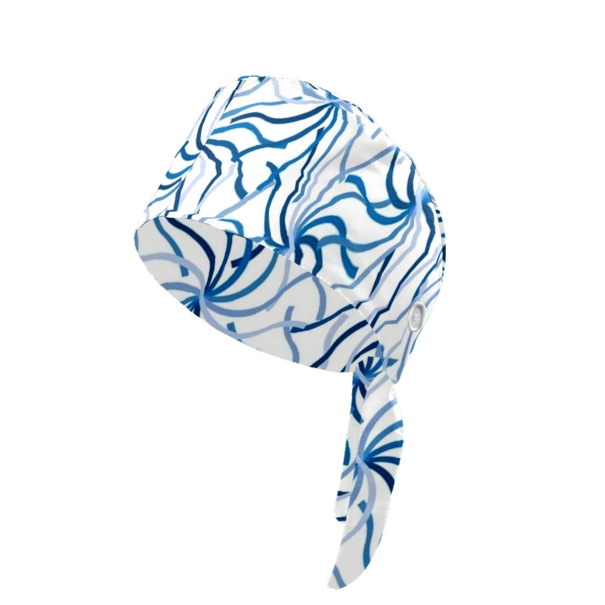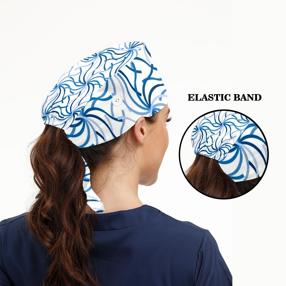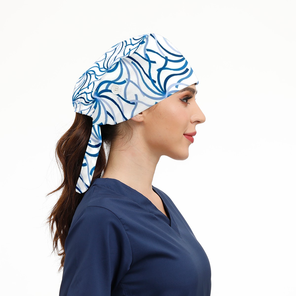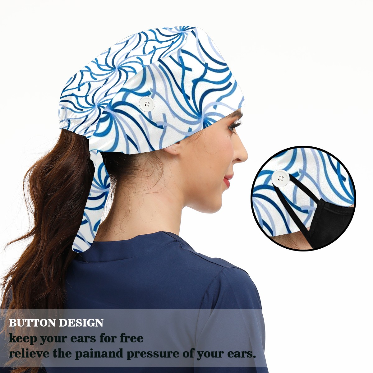 Working Caps with Button & Sweatband Satin Lined Cotton Adjustable Nurse Hats Elastic Band Scrub Cap Surgeon Hat Stripe