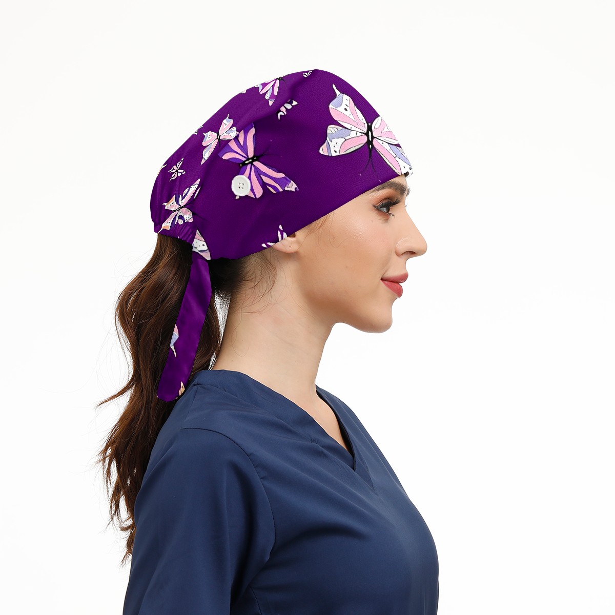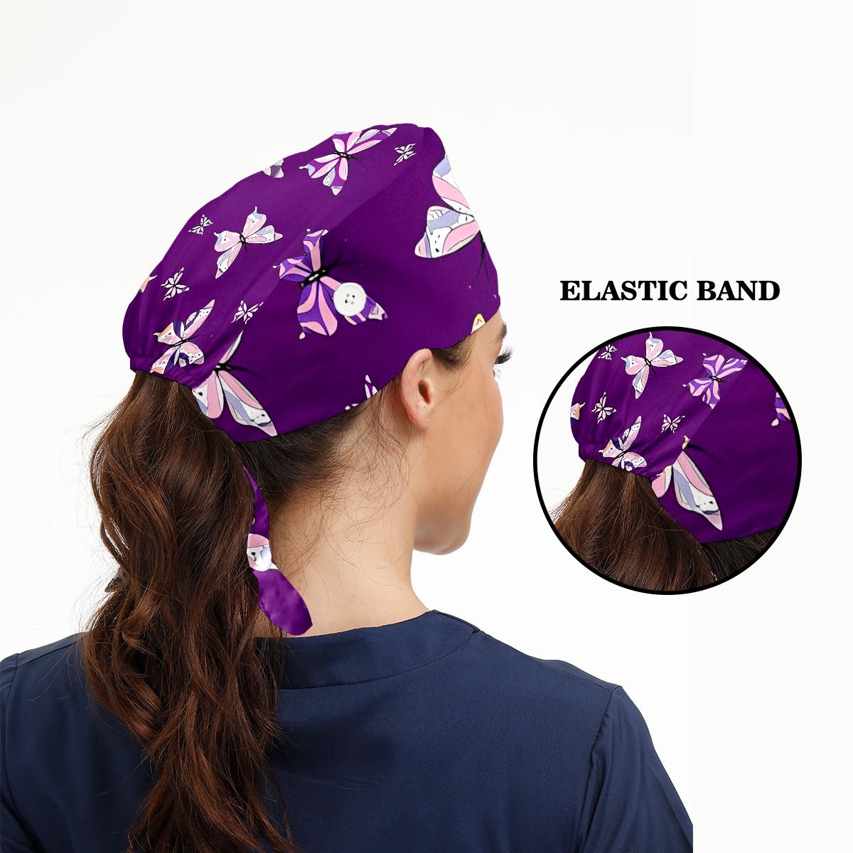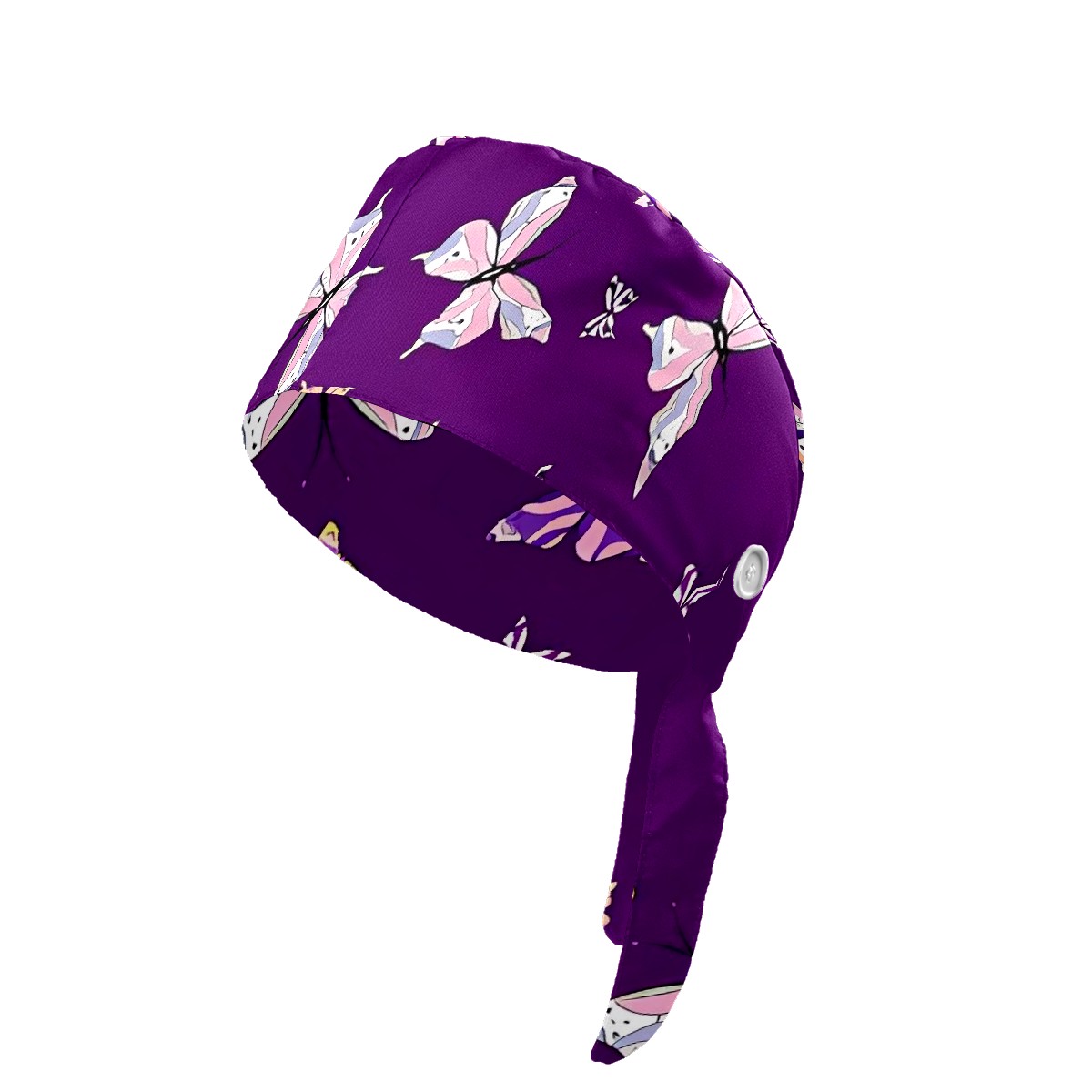 Working Caps with Button & Sweatband Satin Lined Cotton Adjustable Nurse Hats Elastic Band Scrub Cap Surgeon Hat Butterfly