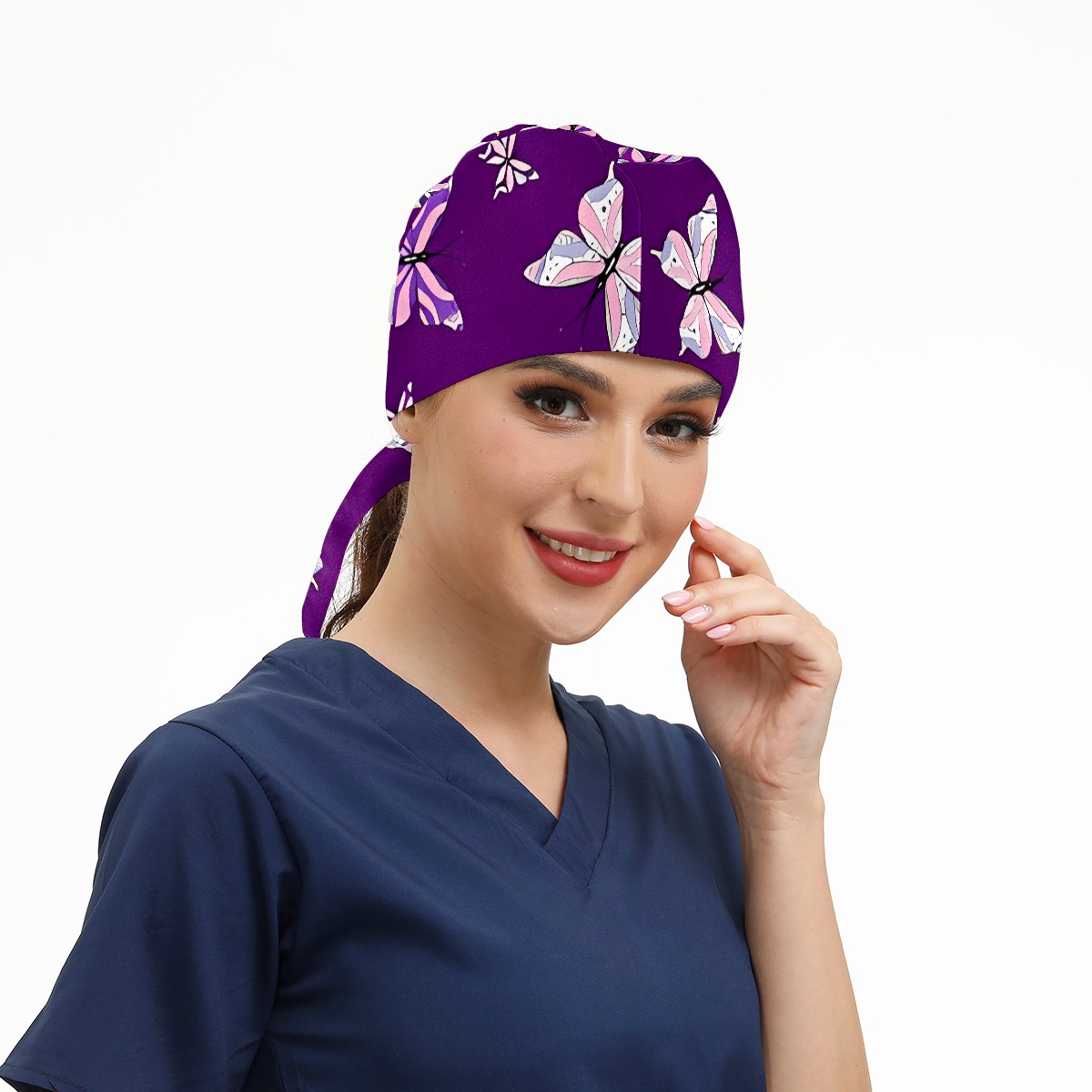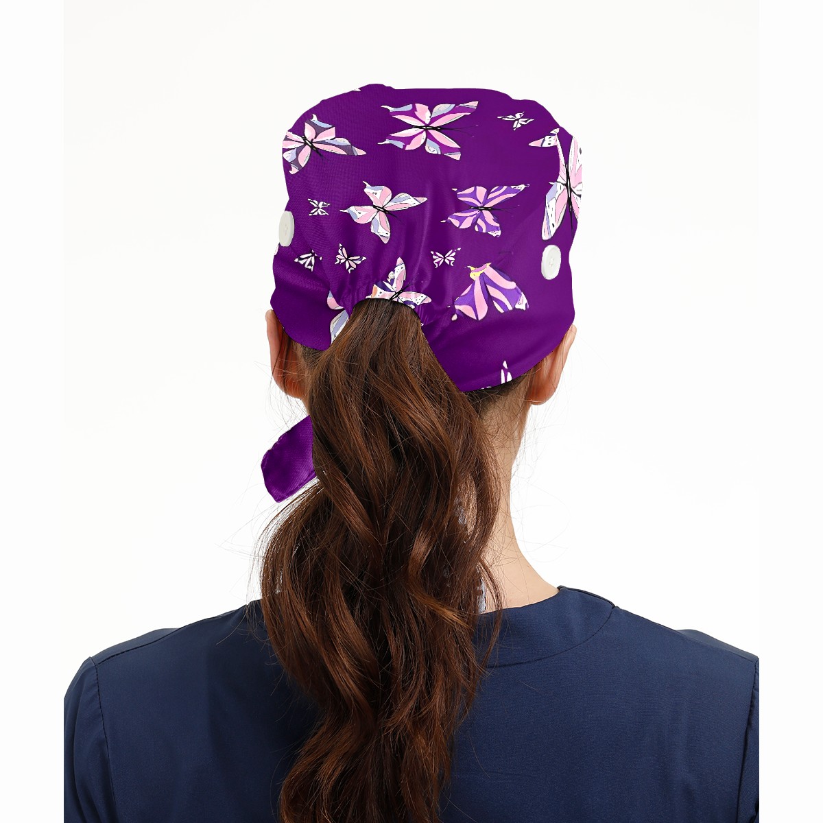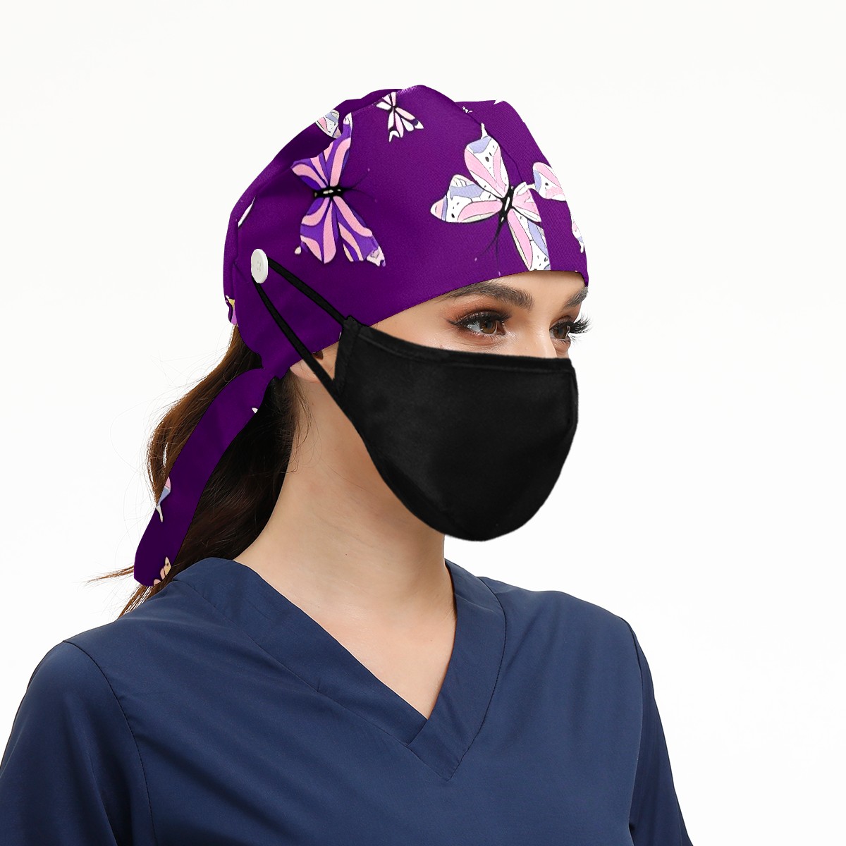 Working Caps with Button & Sweatband Satin Lined Cotton Adjustable Nurse Hats Elastic Band Scrub Cap Surgeon Hat Butterfly