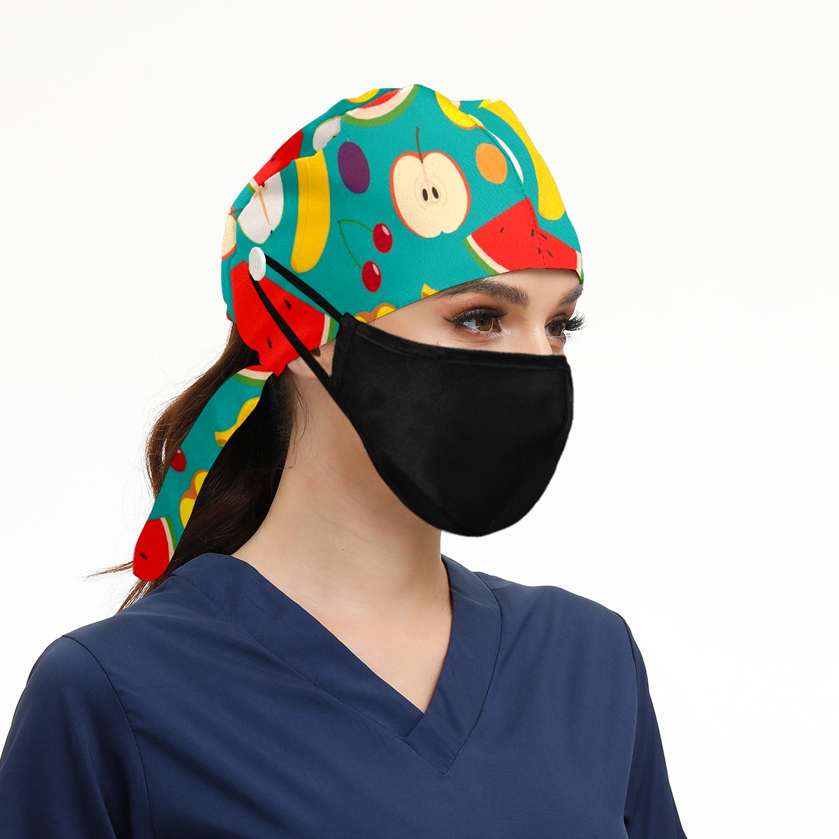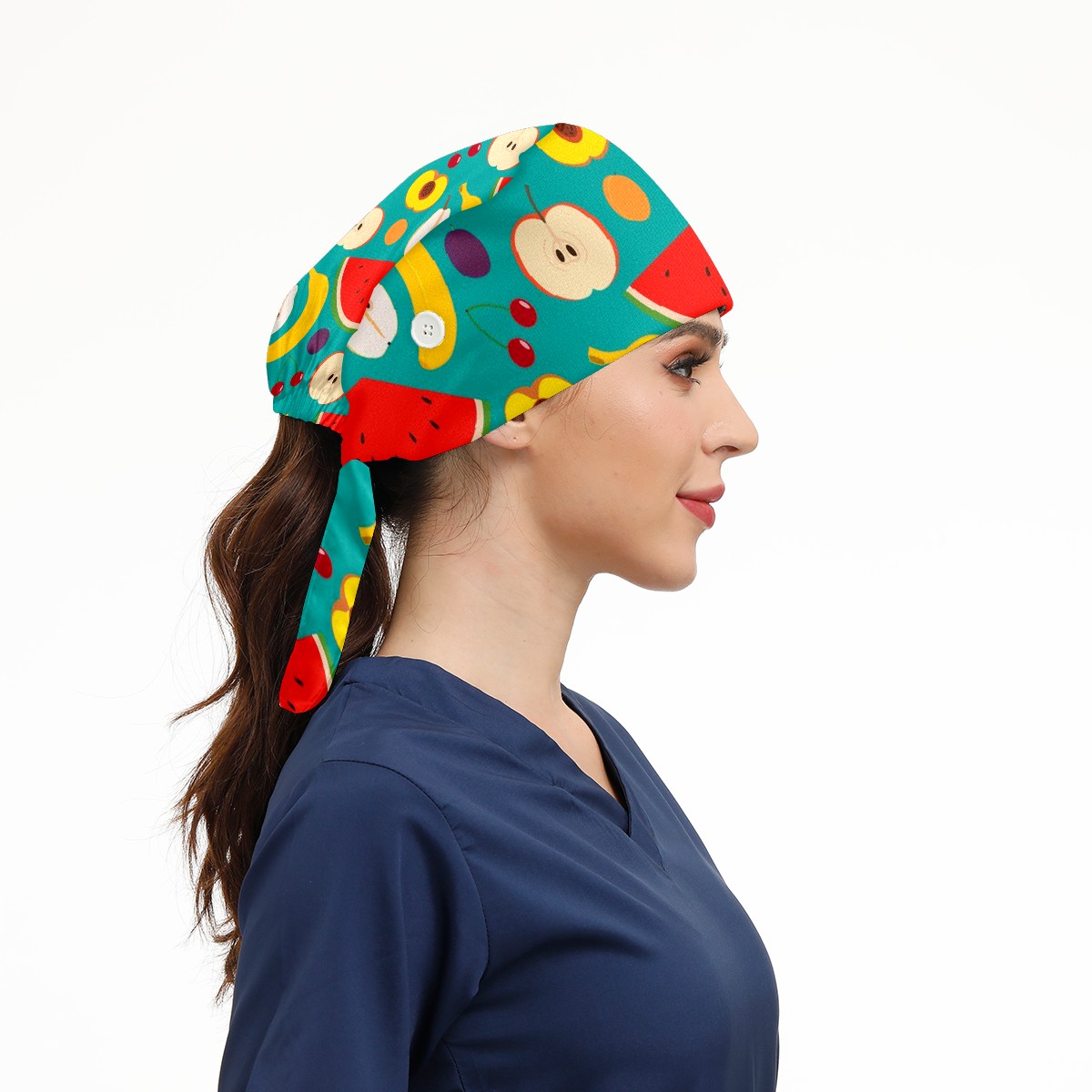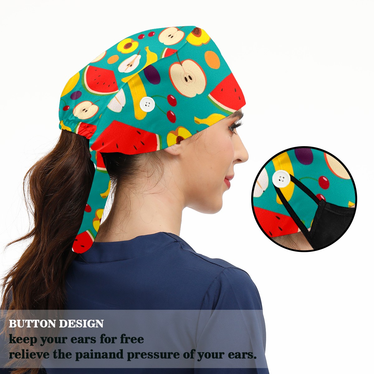 Working Caps with Button & Sweatband Satin Lined Cotton Adjustable Nurse Hats Elastic Band Scrub Cap Surgeon Hat Fruit