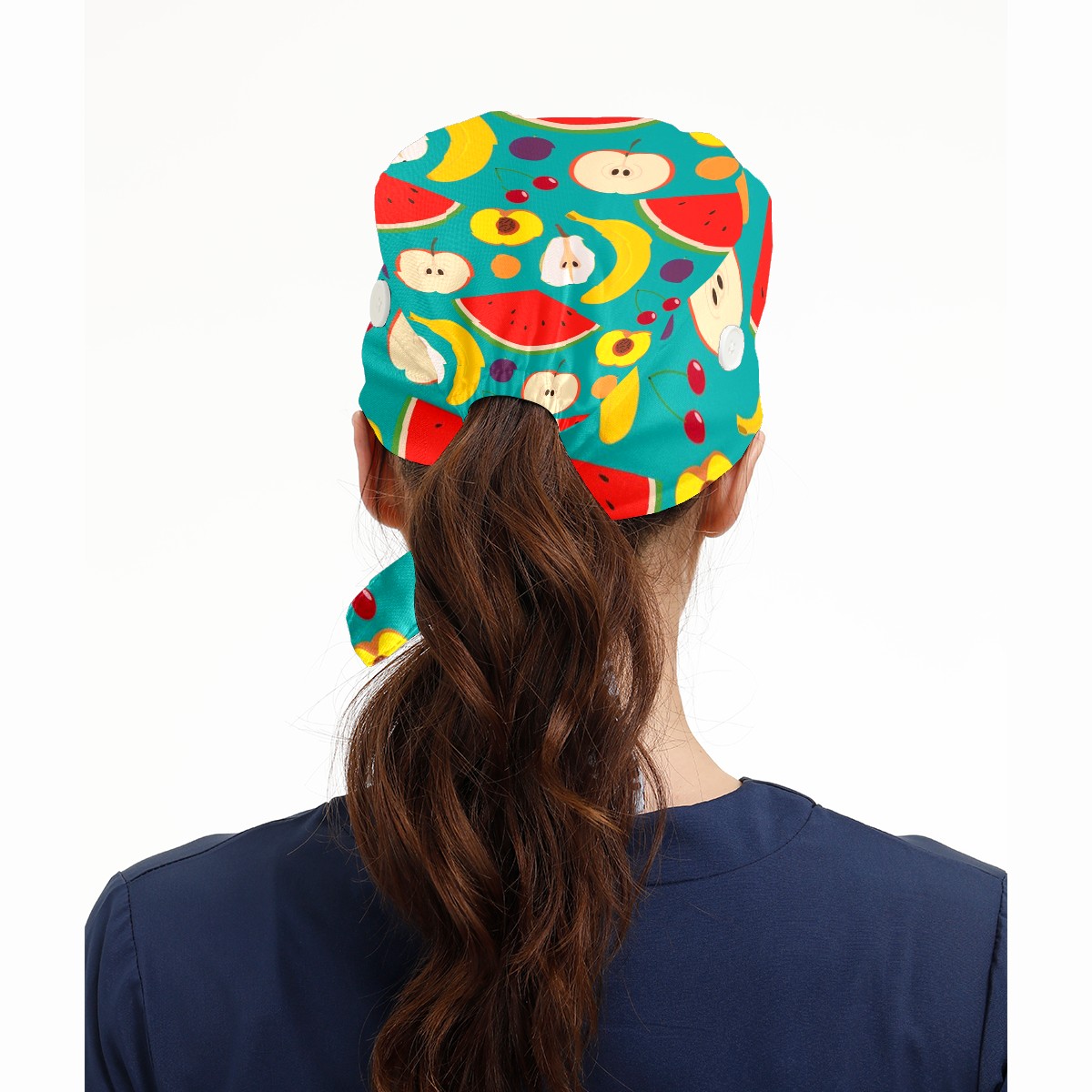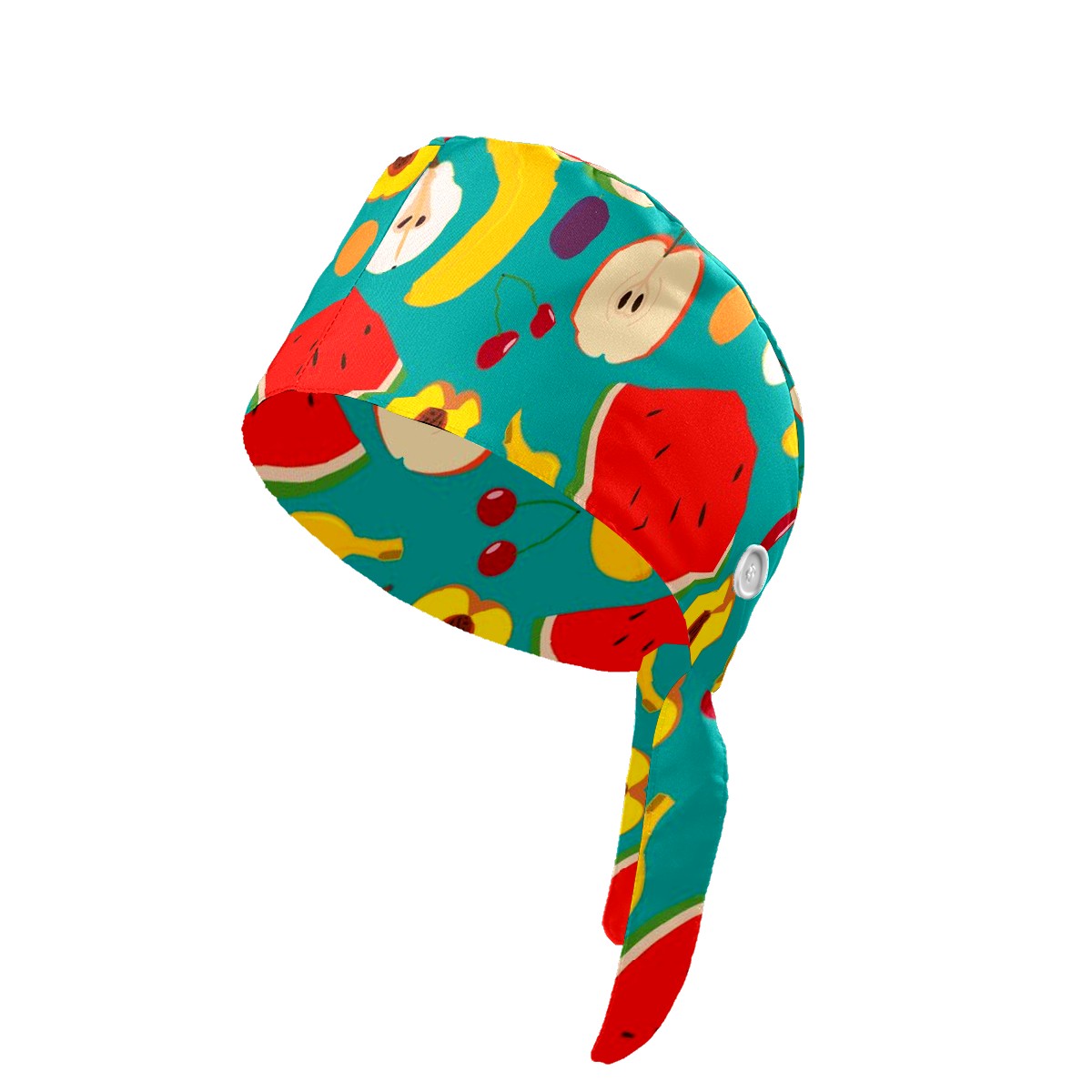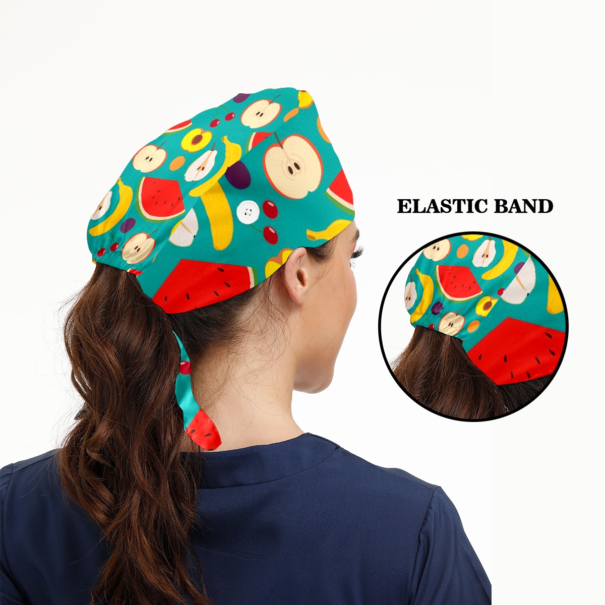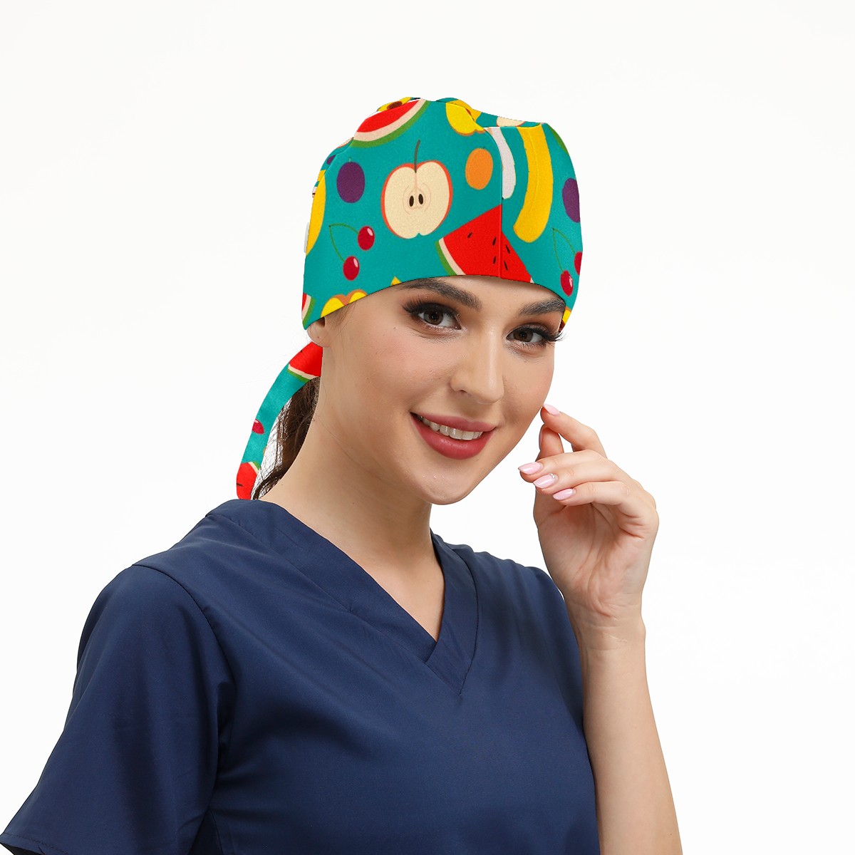 Working Caps with Button & Sweatband Satin Lined Cotton Adjustable Nurse Hats Elastic Band Scrub Cap Surgeon Hat Fruit