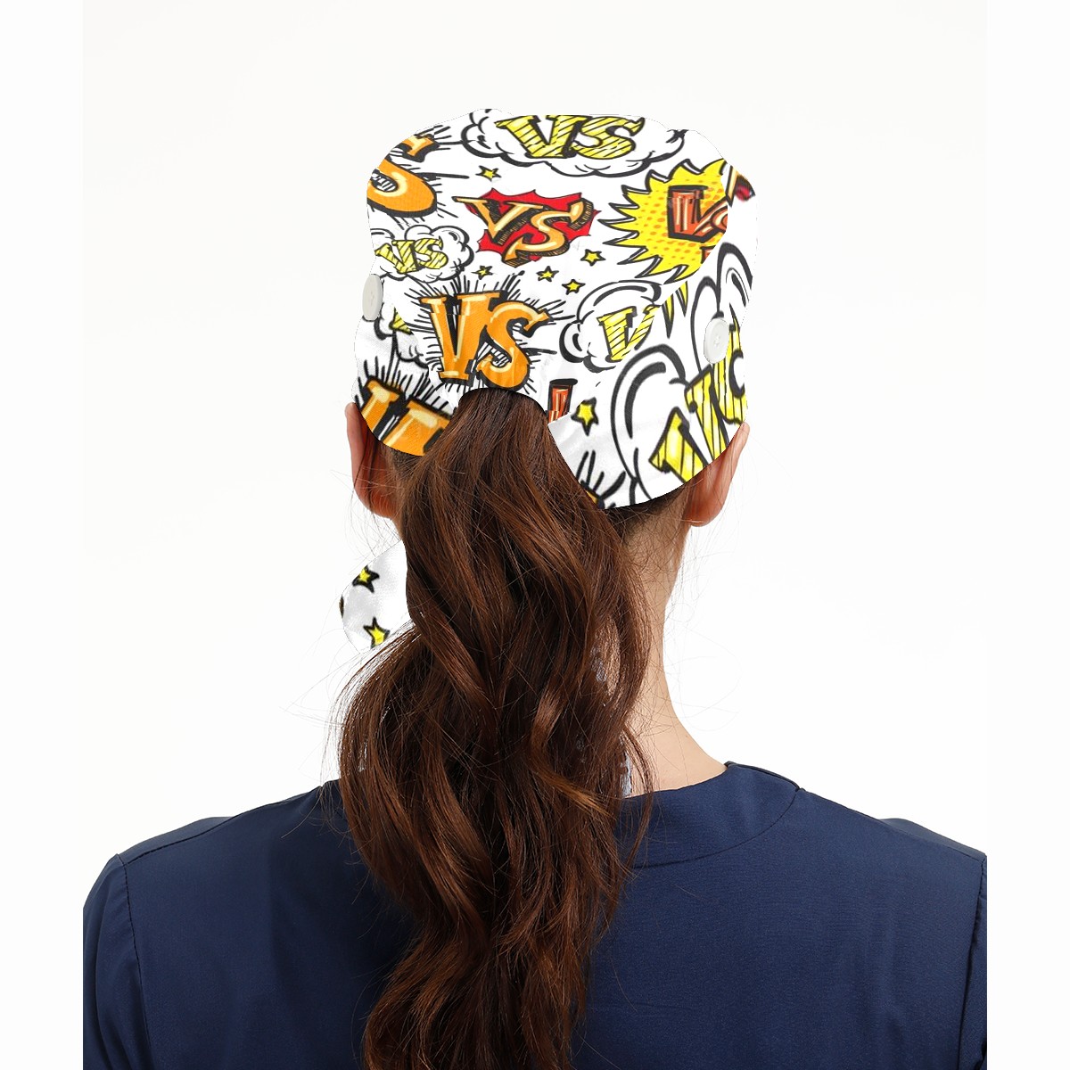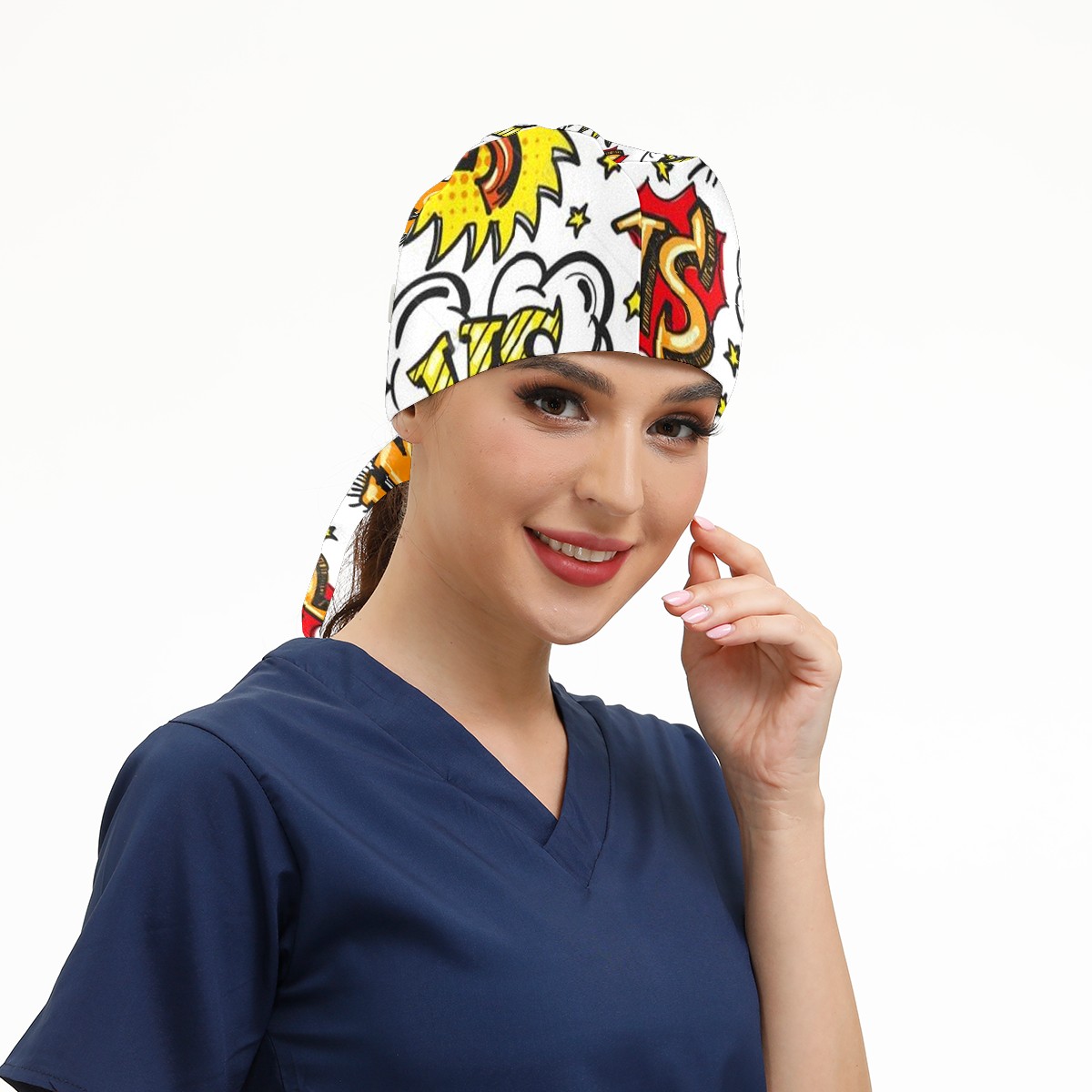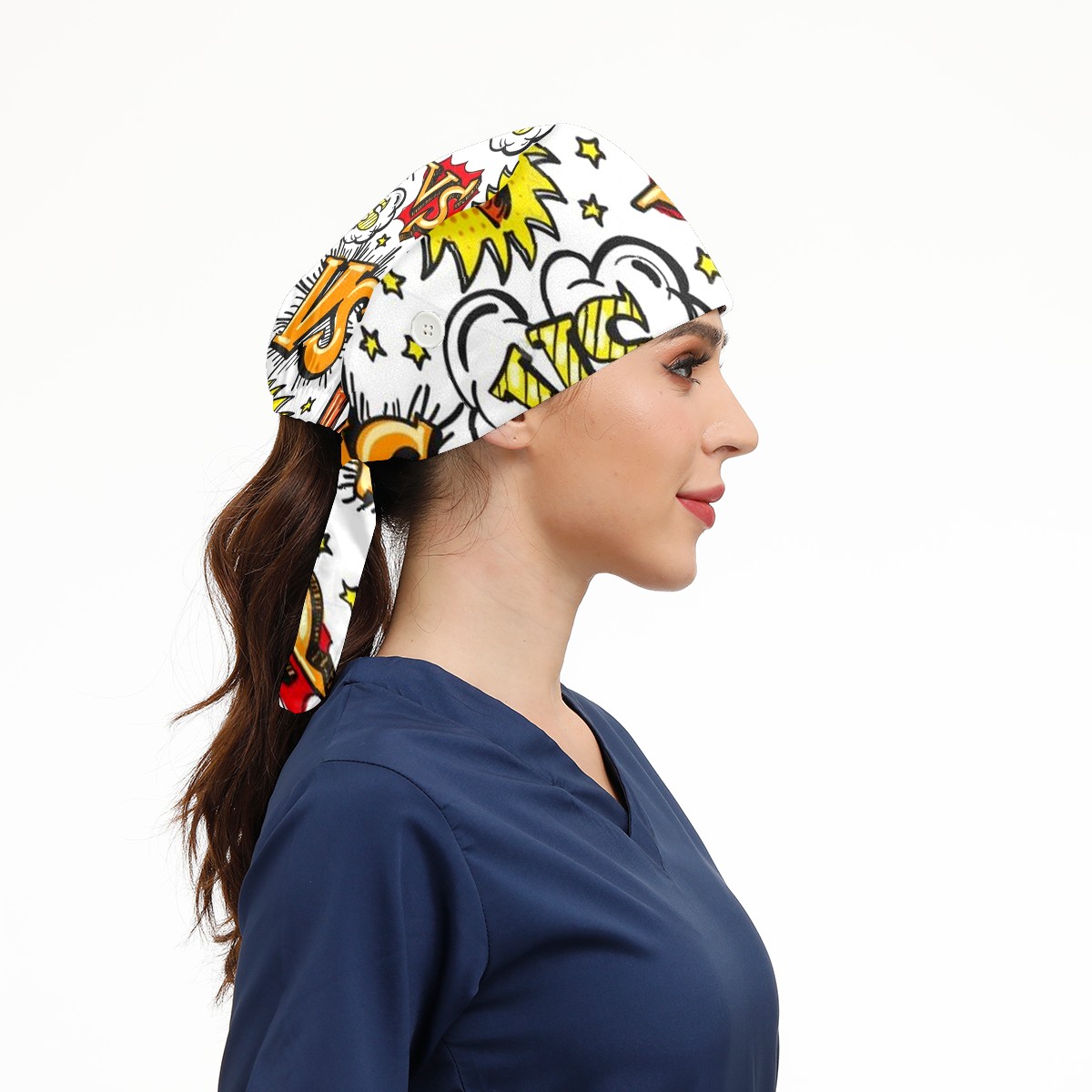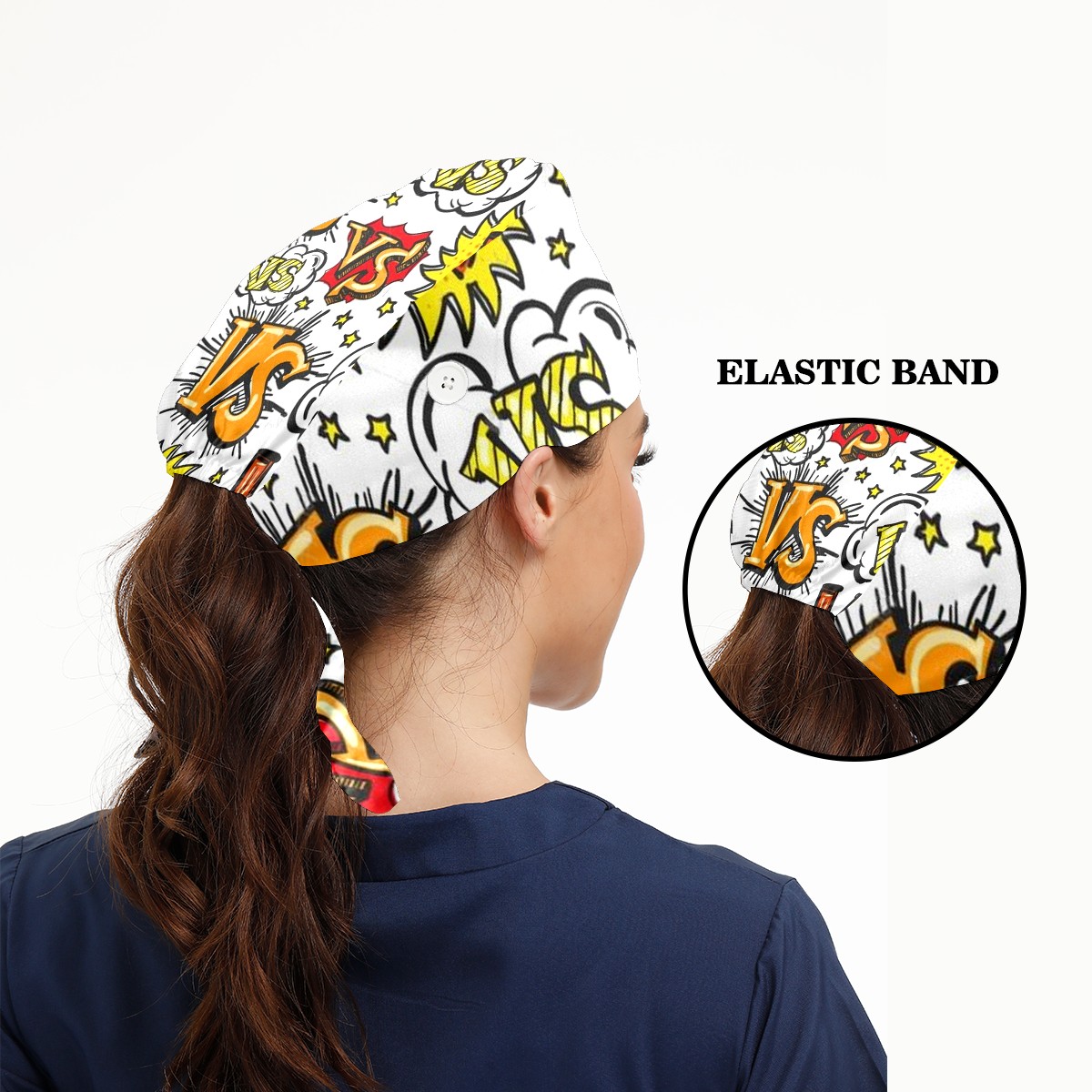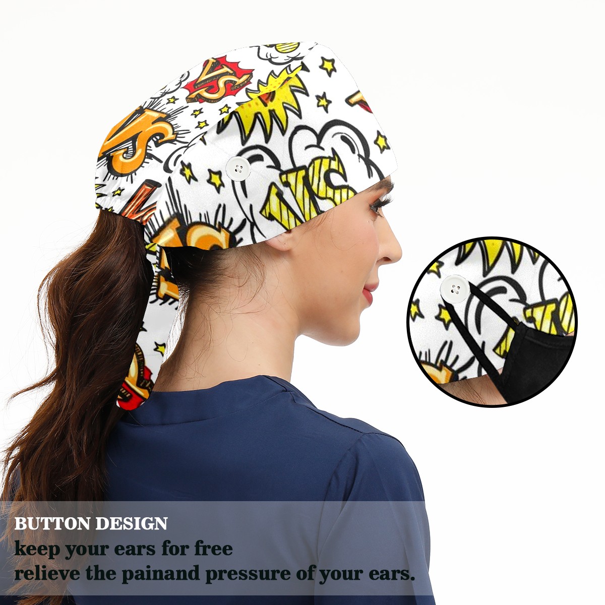 Working Caps with Button & Sweatband Satin Lined Cotton Adjustable Nurse Hats Elastic Band Scrub Cap Surgeon Hat Letter