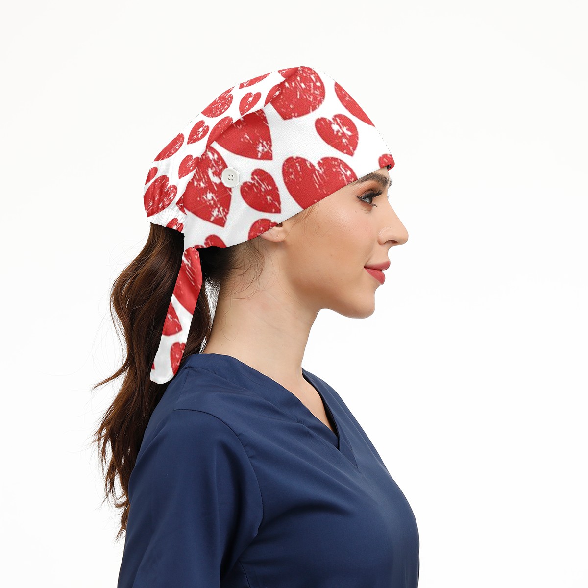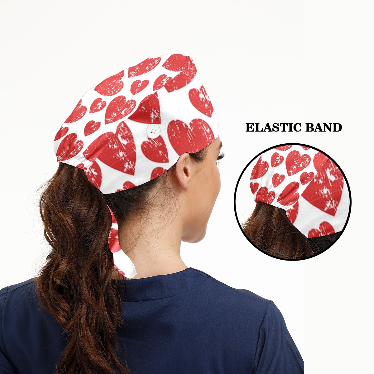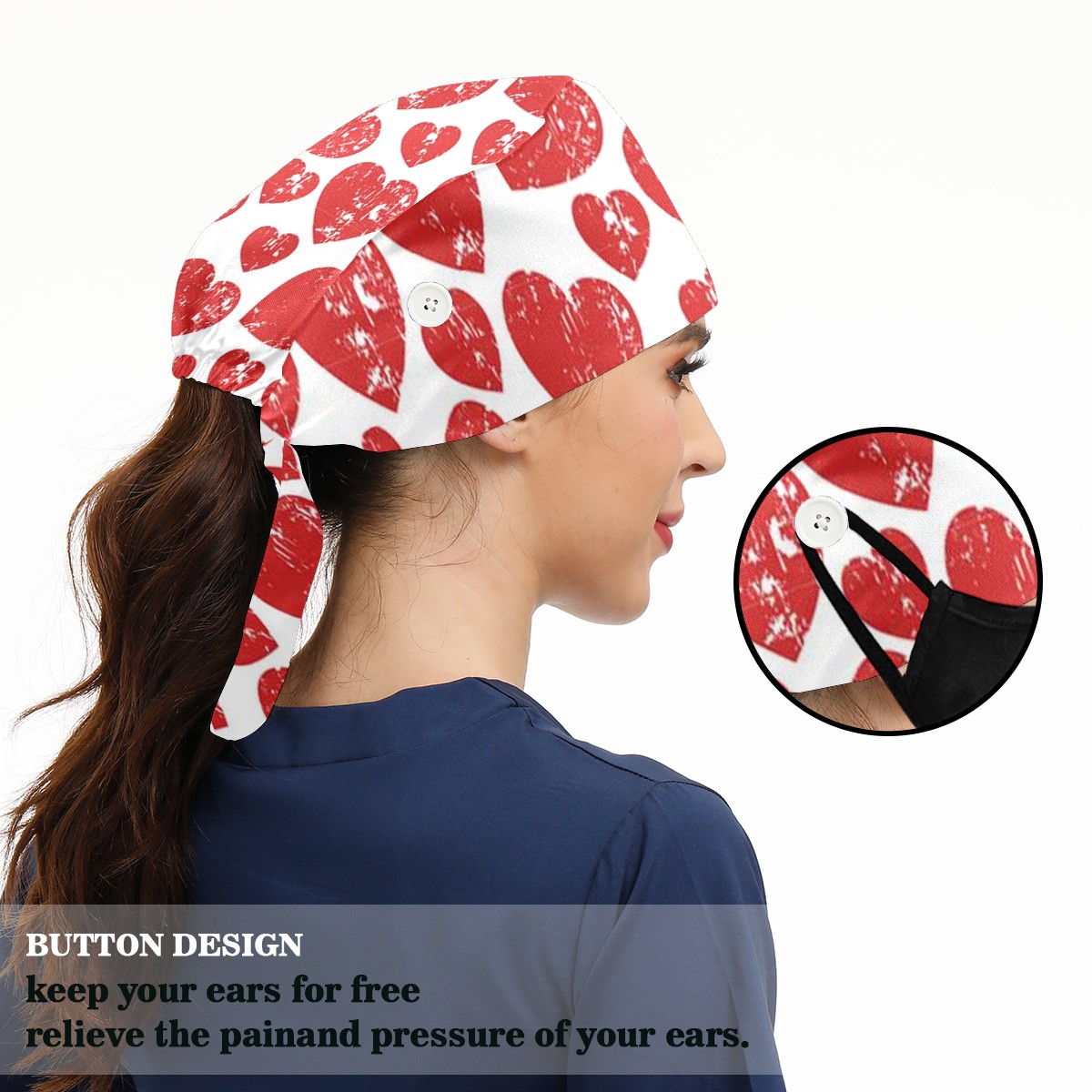 Working Caps with Button & Sweatband Satin Lined Cotton Adjustable Nurse Hats Elastic Band Scrub Cap Surgeon Hat Love